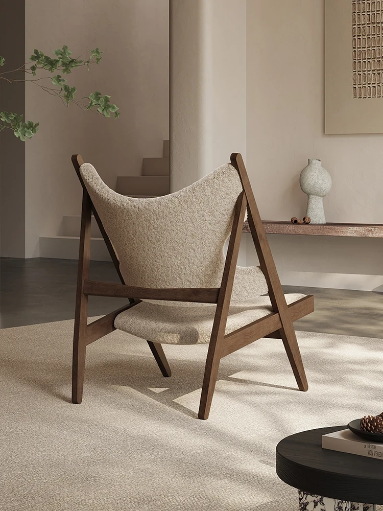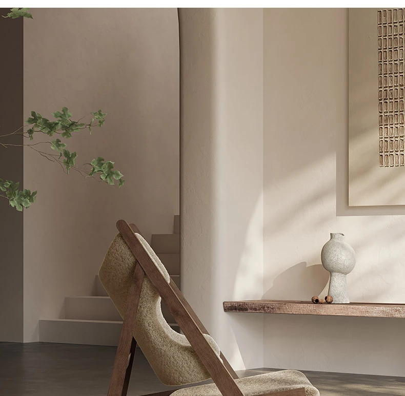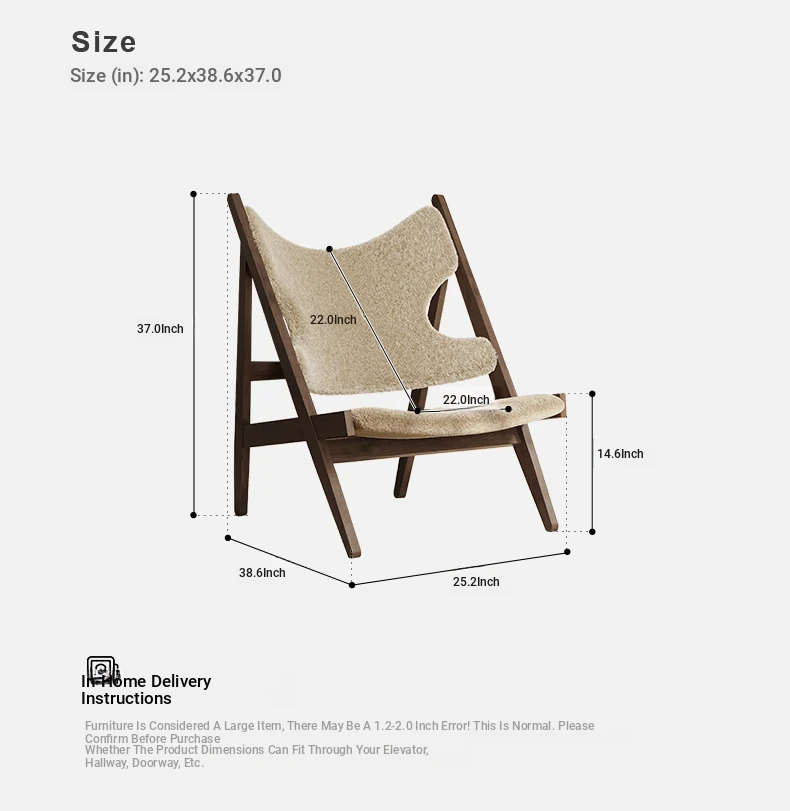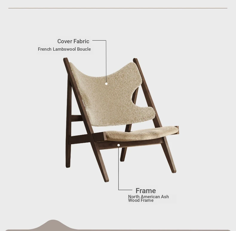 Melolat French Vintage Solid Wood Sofa Chair - Creamy Lamb Wool Mid-Century Nordic Light Luxury Single Leisure Chair