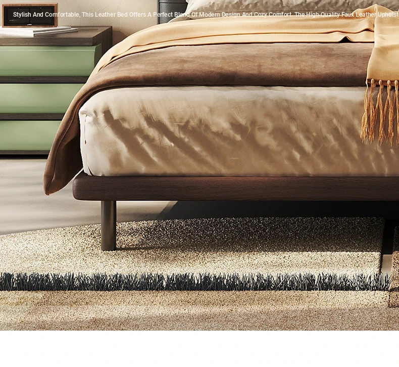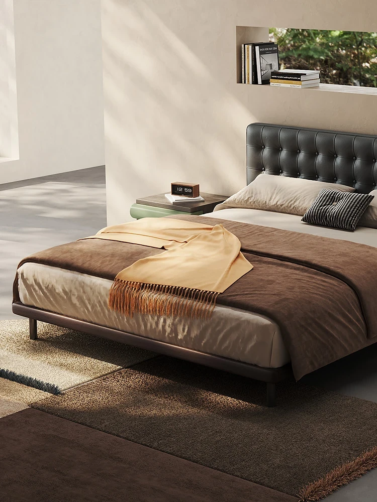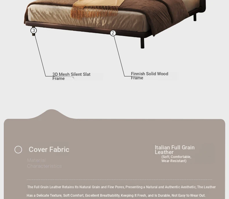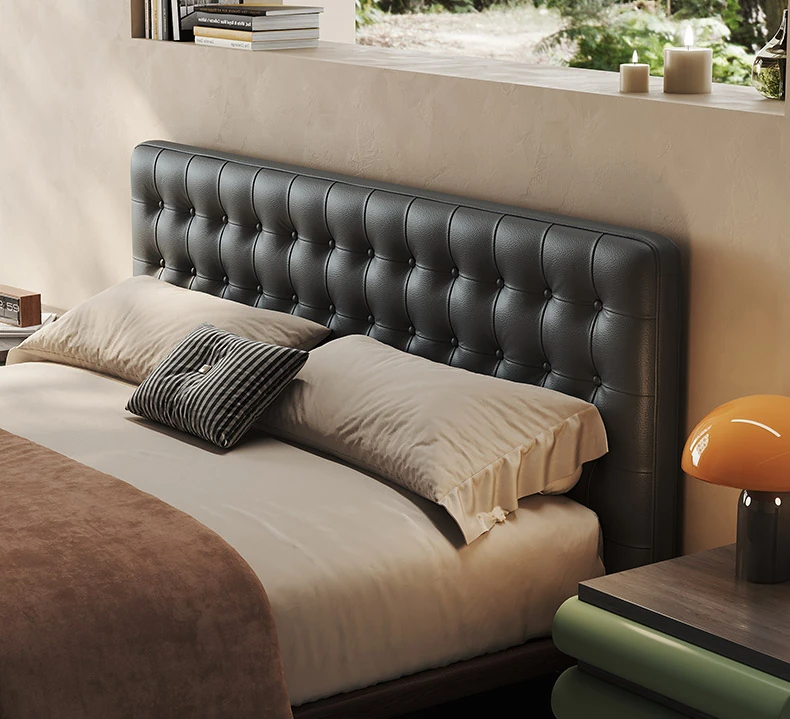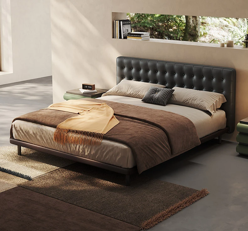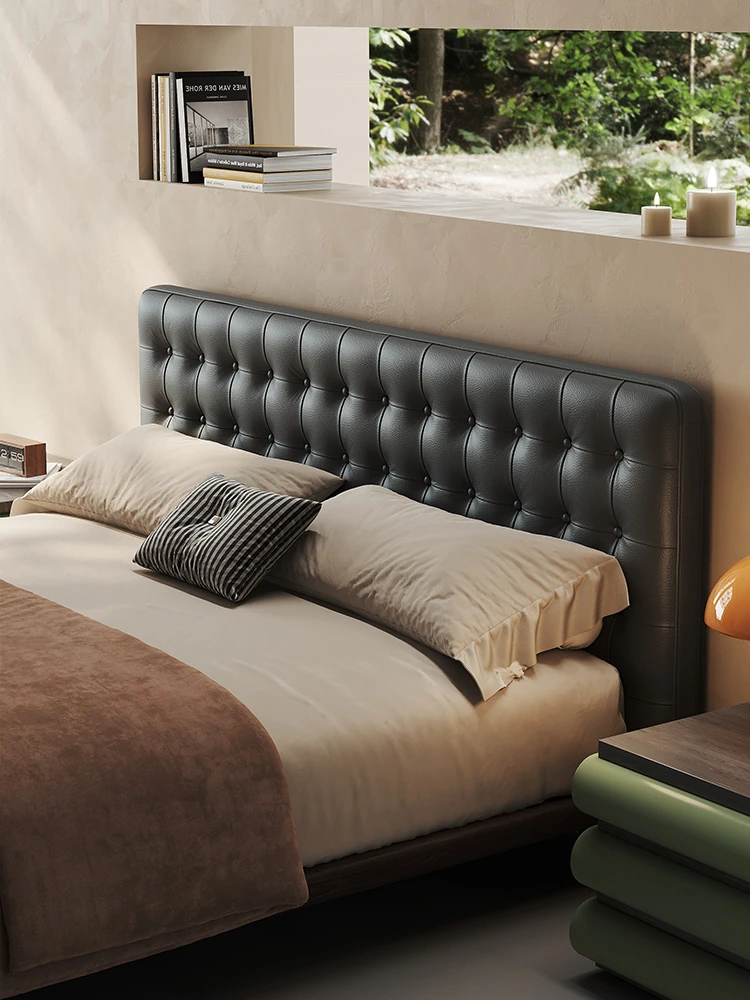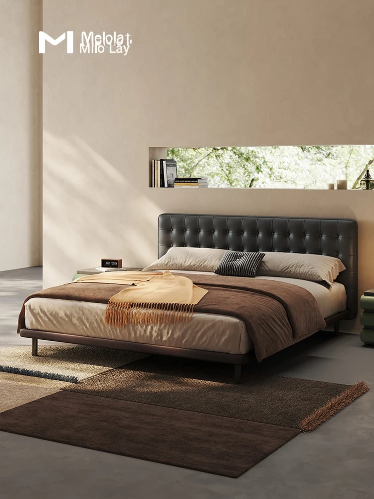 Melolat Genuine Leather Bed - Luxurious Italian Minimalist Design for Master Bedroom, Elegant and Spacious Double Bed for Couples