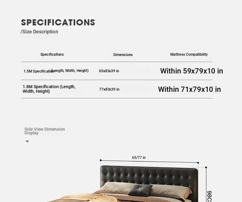 Serenity Black 70.87in Single Bed [Italy Import Native Grain Leather] [Upgraded Solid Wood Bedside]