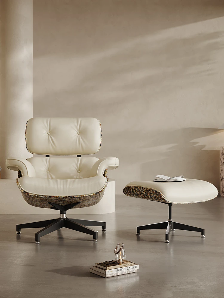 Neon [Italy Nappa Leather - Beige] [Armchair + Footstool] Semi-Leather