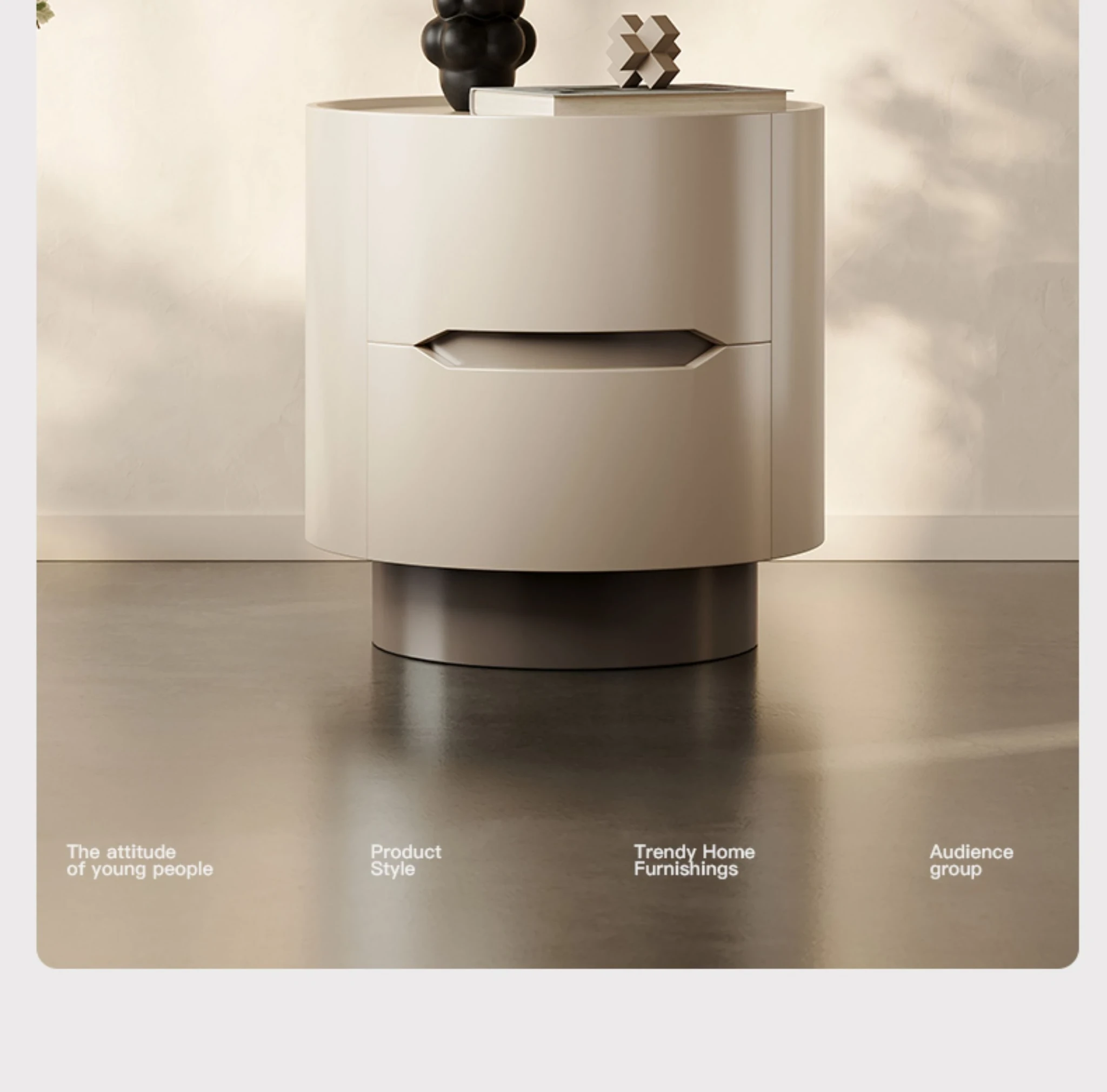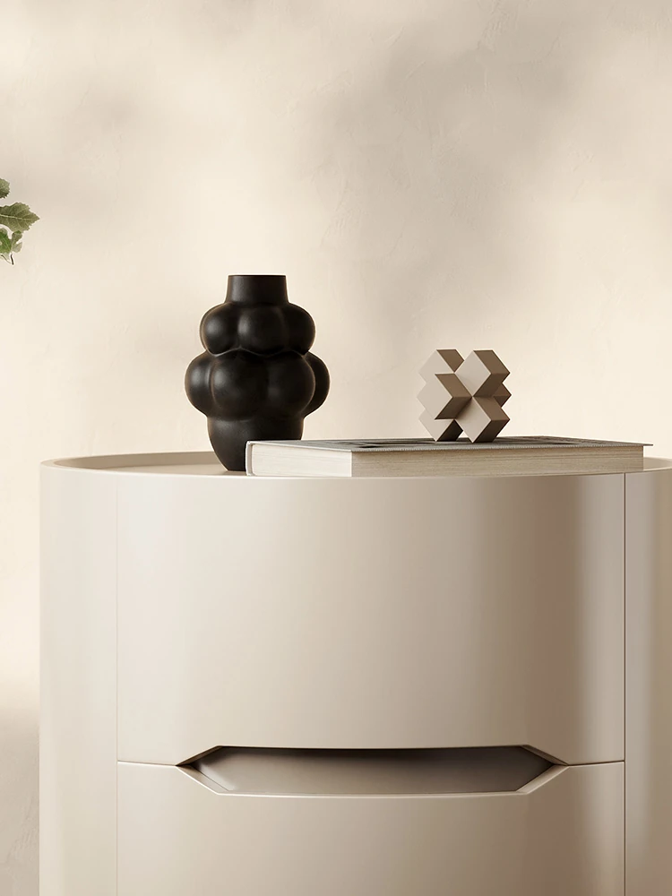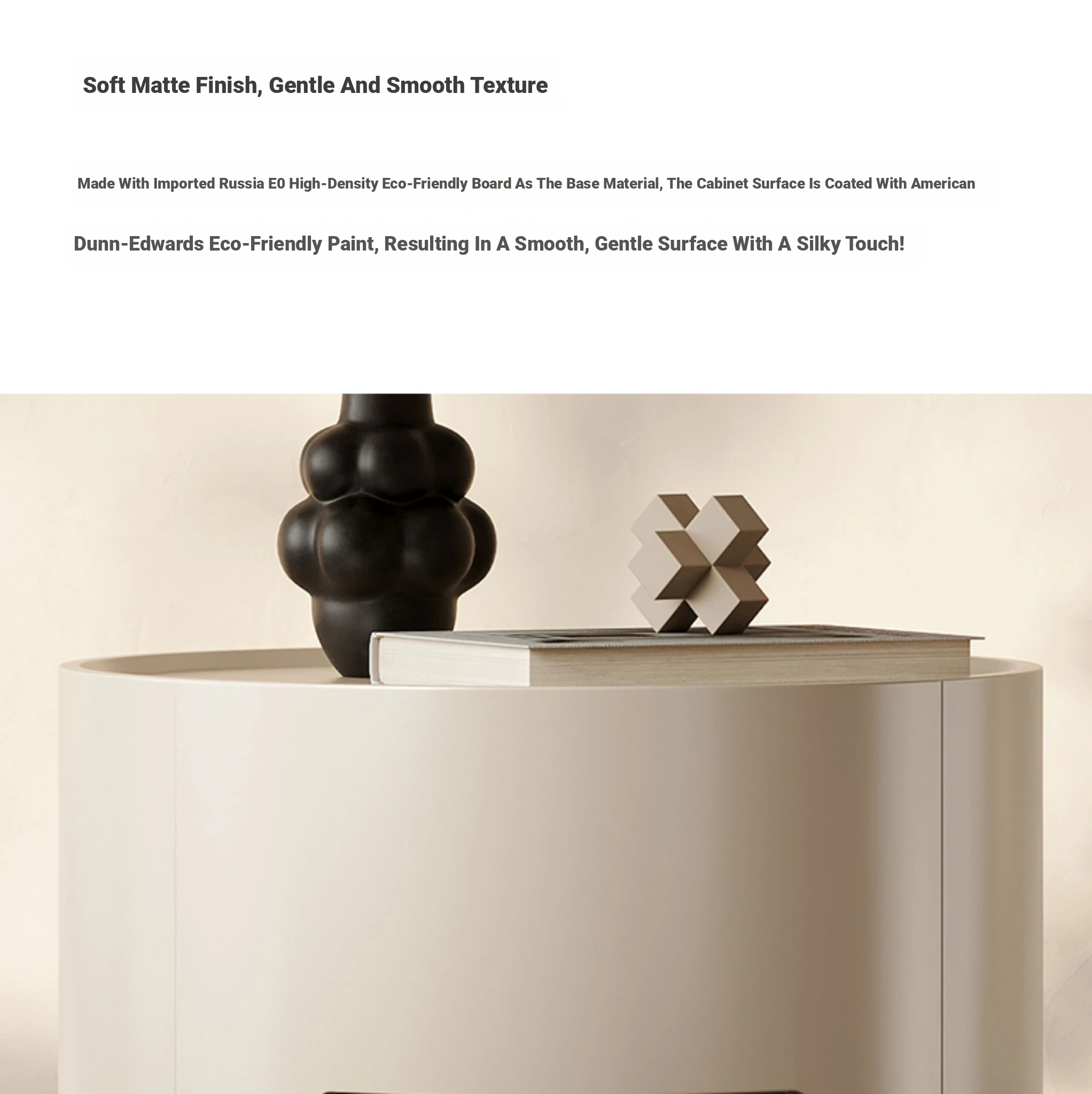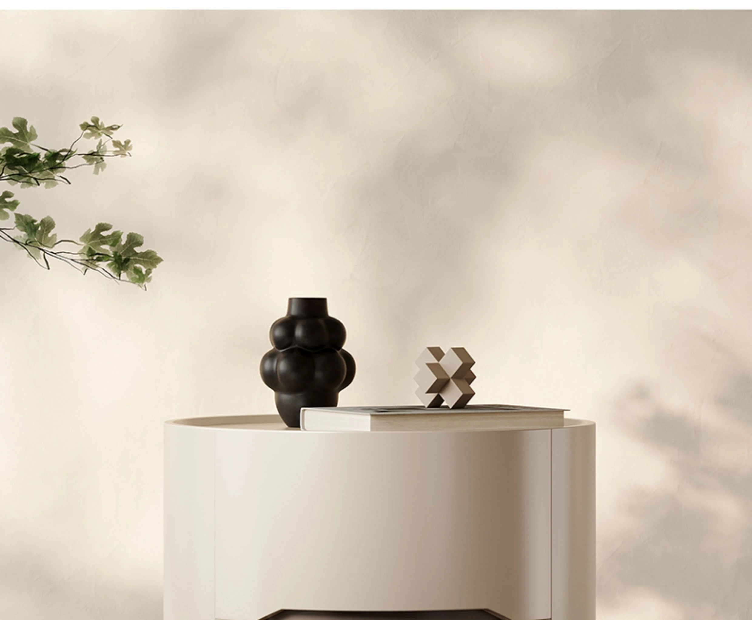 Melolat Italian Designer Nightstand - High-End Italian Minimalist Modern Luxury with Creamy Aesthetic and Round Shape