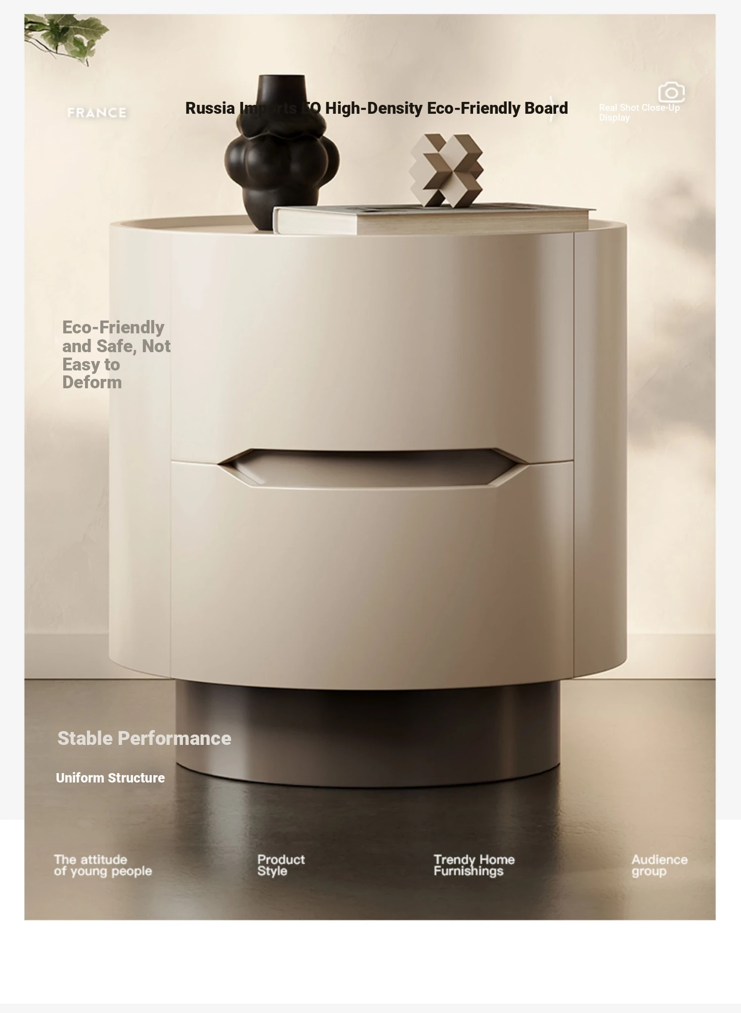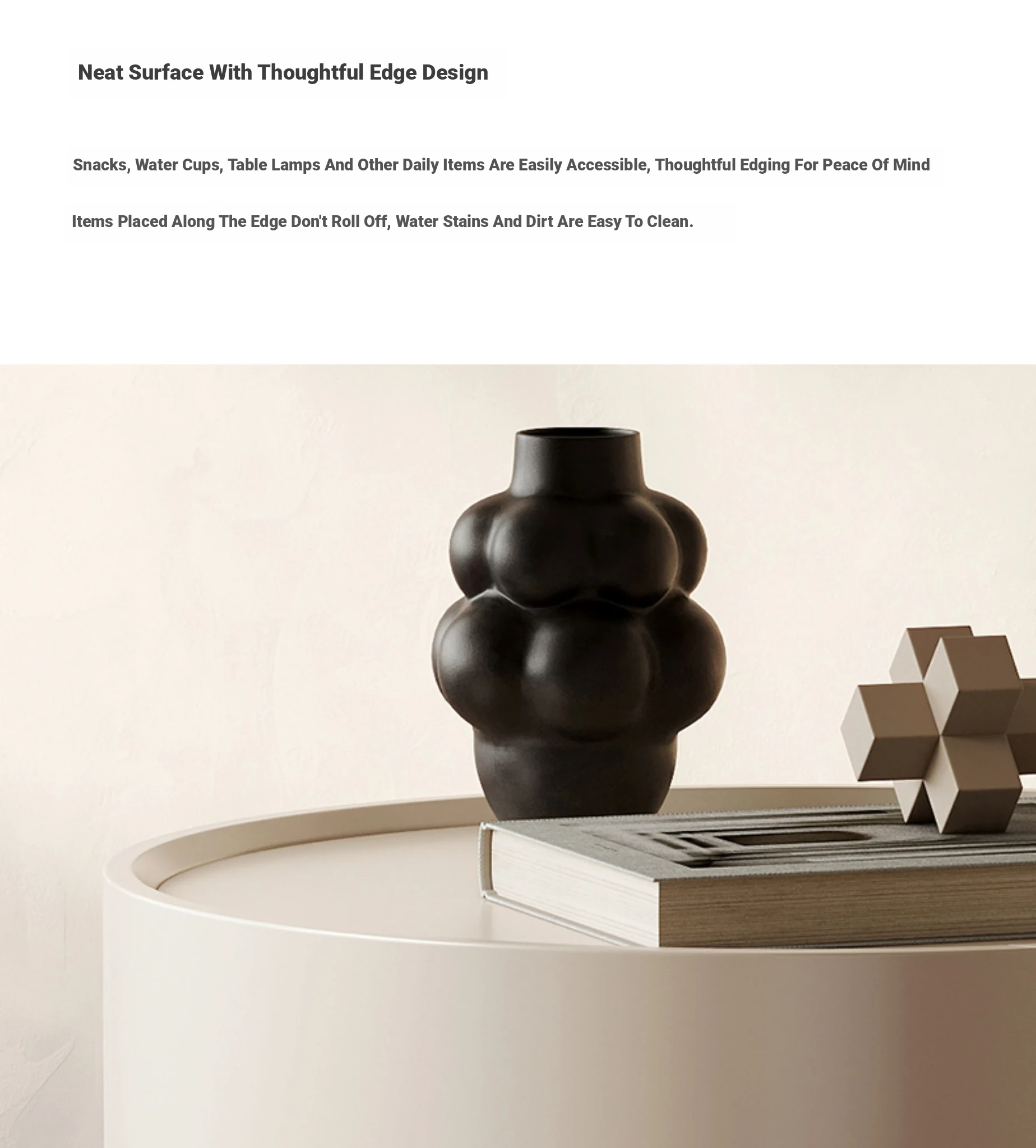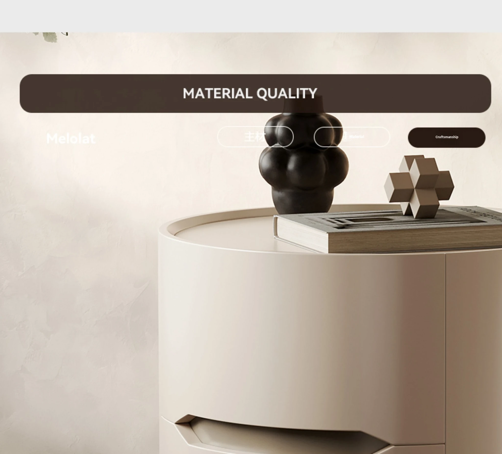 Melolat Italian Designer Nightstand - High-End Italian Minimalist Modern Luxury with Creamy Aesthetic and Round Shape