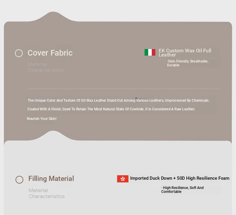 70.87in [EK high oil wax full skin] straight row two-section Separates sofa