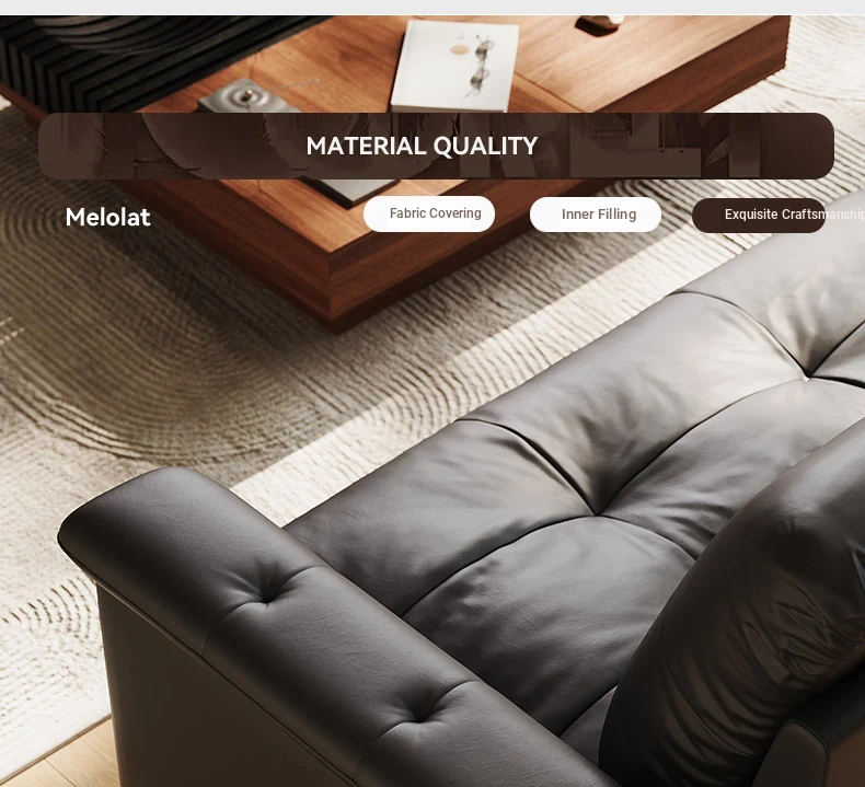 Melolat Italian Luxury Leather Sofa - Premium Top-Grain Oil Wax Leather, Vintage Style, Black Straight Sofa for Small Spaces