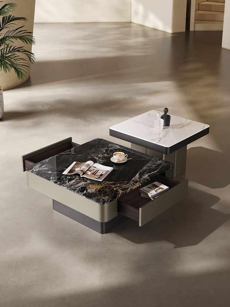 Melolat Italian Luxury Minimalist Coffee Table - Ultra-Crystal Stone, Modern Design for High-End Living Rooms, Versatile Size Combinations & Functional Storage by Designer