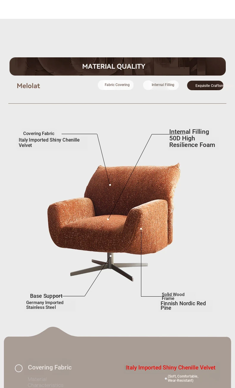 Melolat Italian Luxury Petal Lounge Chair - Designer Swivel Recliner for Living Room and Meeting Spaces, Perfect for Comfort and Style