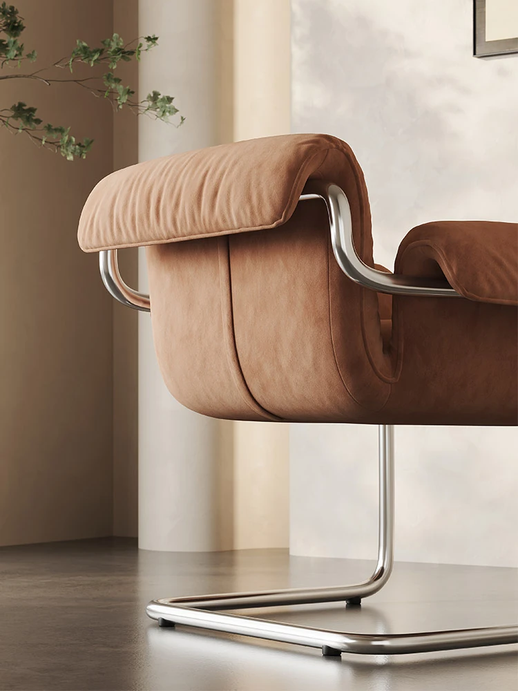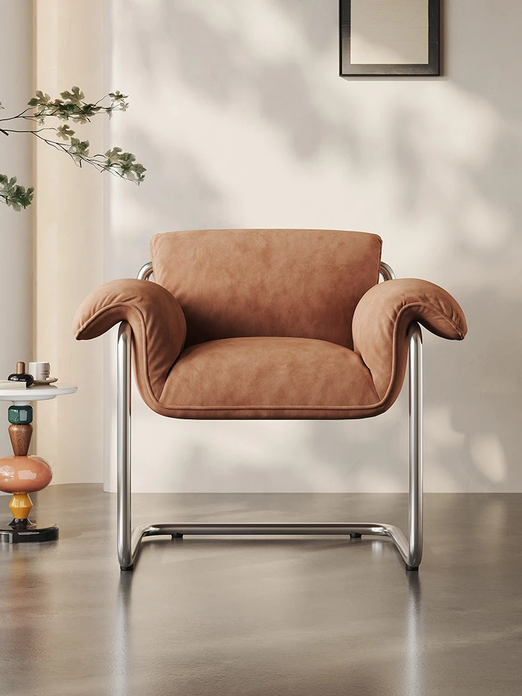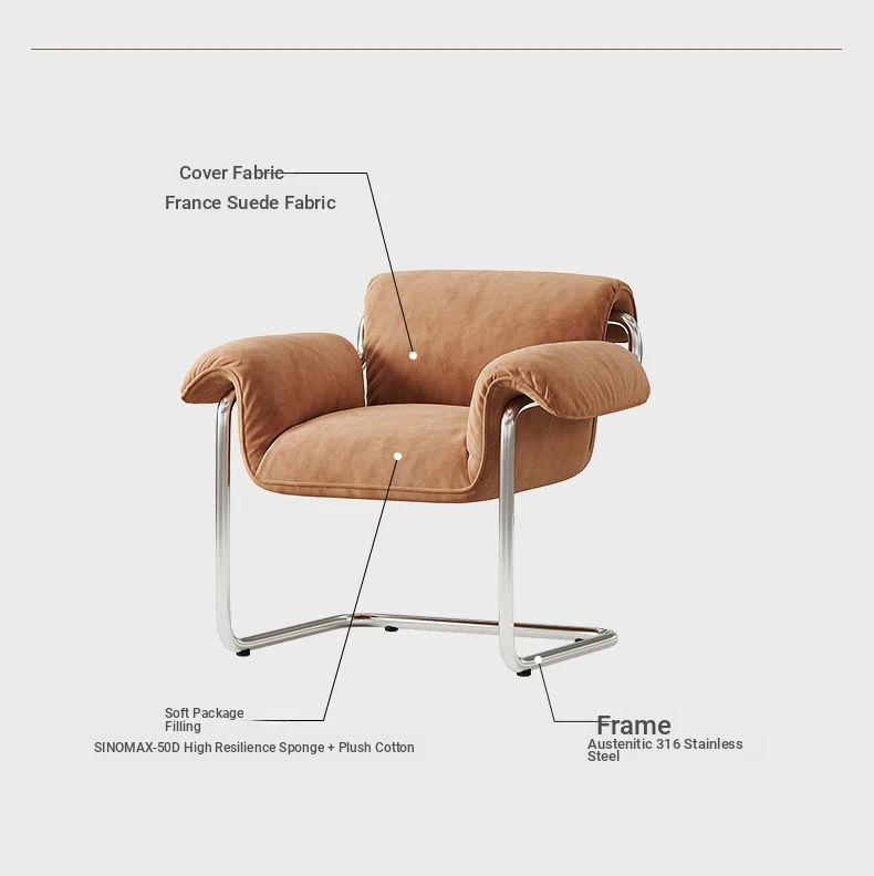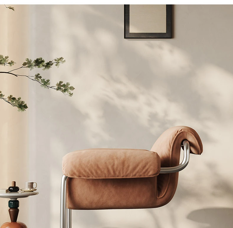 【Limited Stock】Mocha Mousse Brown 【France Frosted Fabric】Designer Armchair