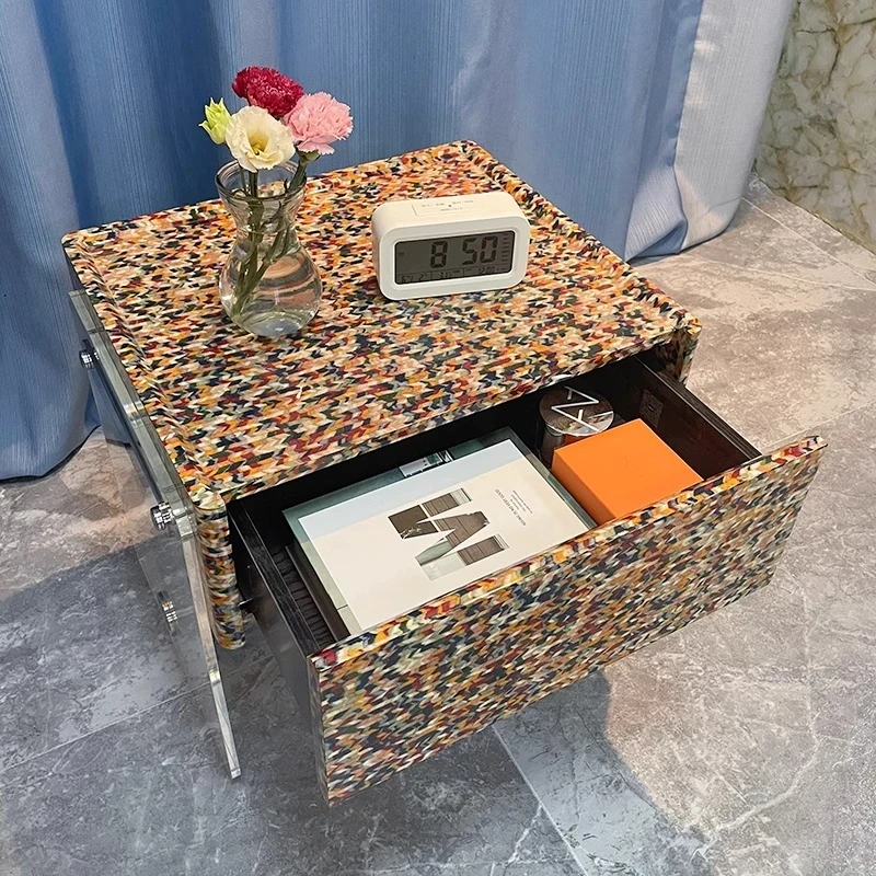 Melolat Italian Minimalist Bedside Table - Luxurious Acrylic Storage Cabinet for Chic Bedroom Organization