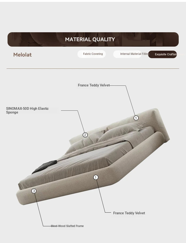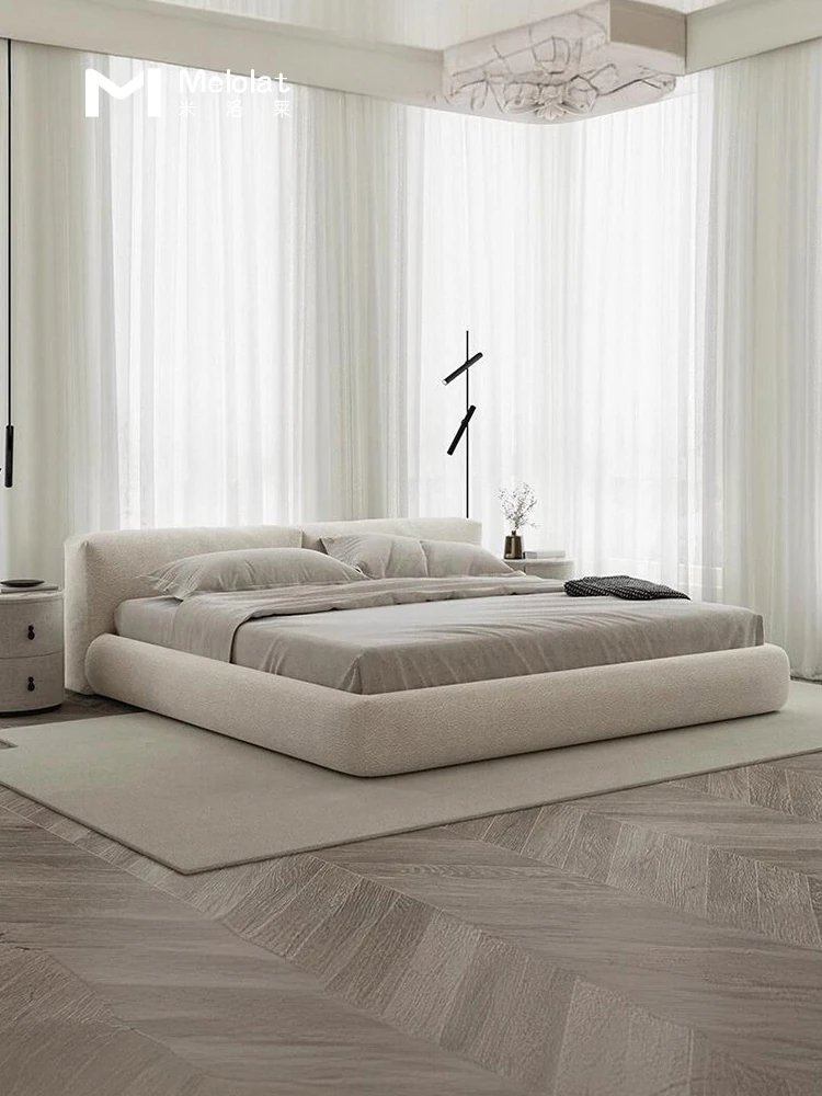 Melolat Italian Minimalist Double Bed - Creative Design Luxury Upholstered Bed for Master Bedroom, Featuring Puff Tatami Style - A Chic Addition to Your Home!