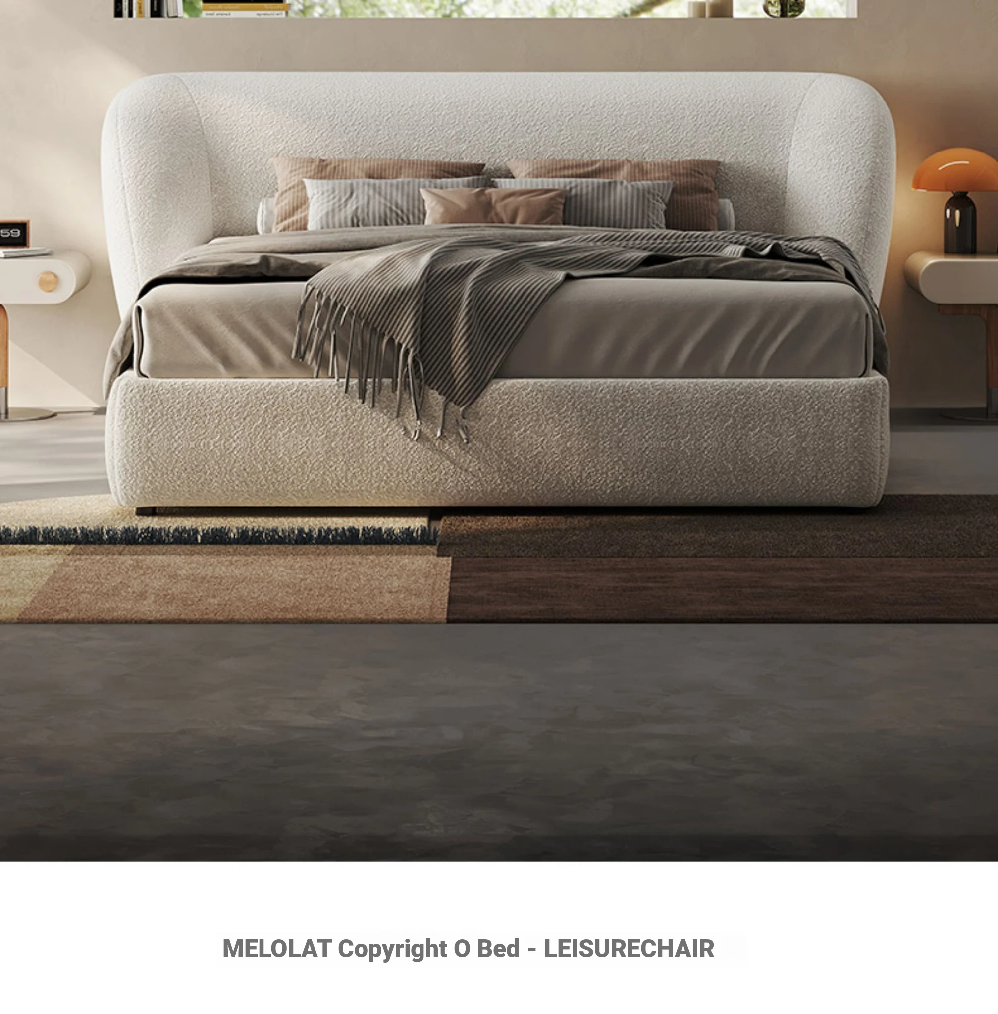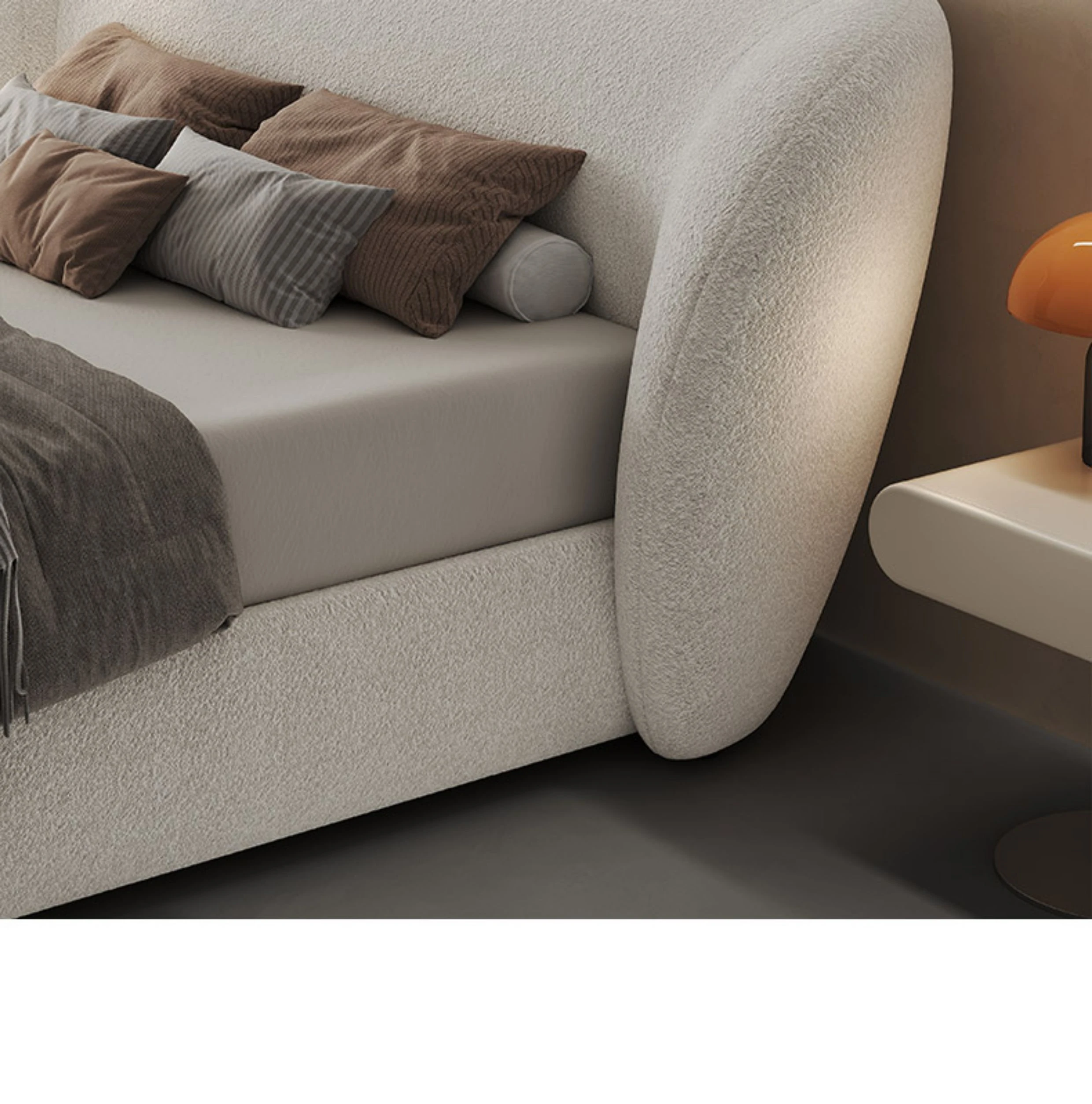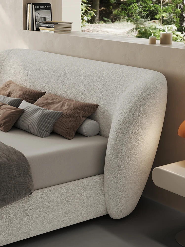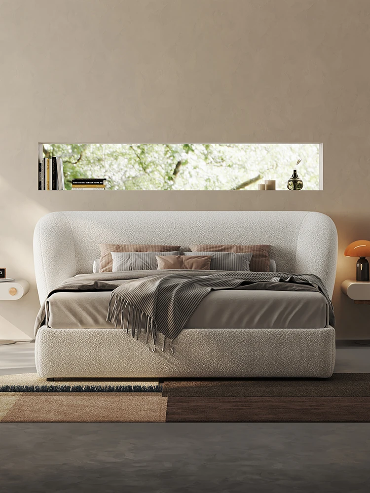 Melolat Italian Minimalist Fabric Bed - Double Size, Goat Velvet Upholstered Bed with Houndstooth Pattern for a Chic Master Bedroom Experience