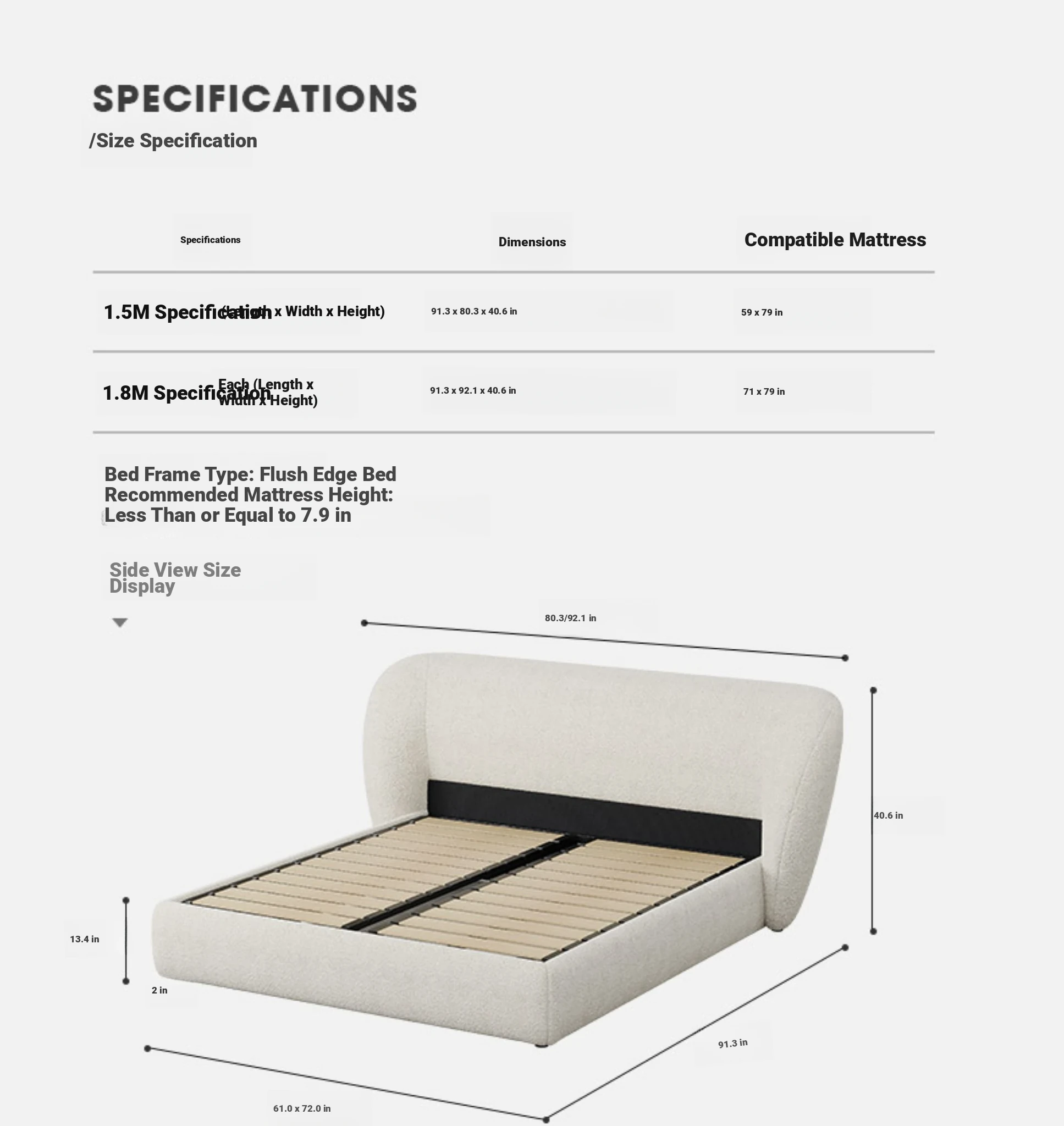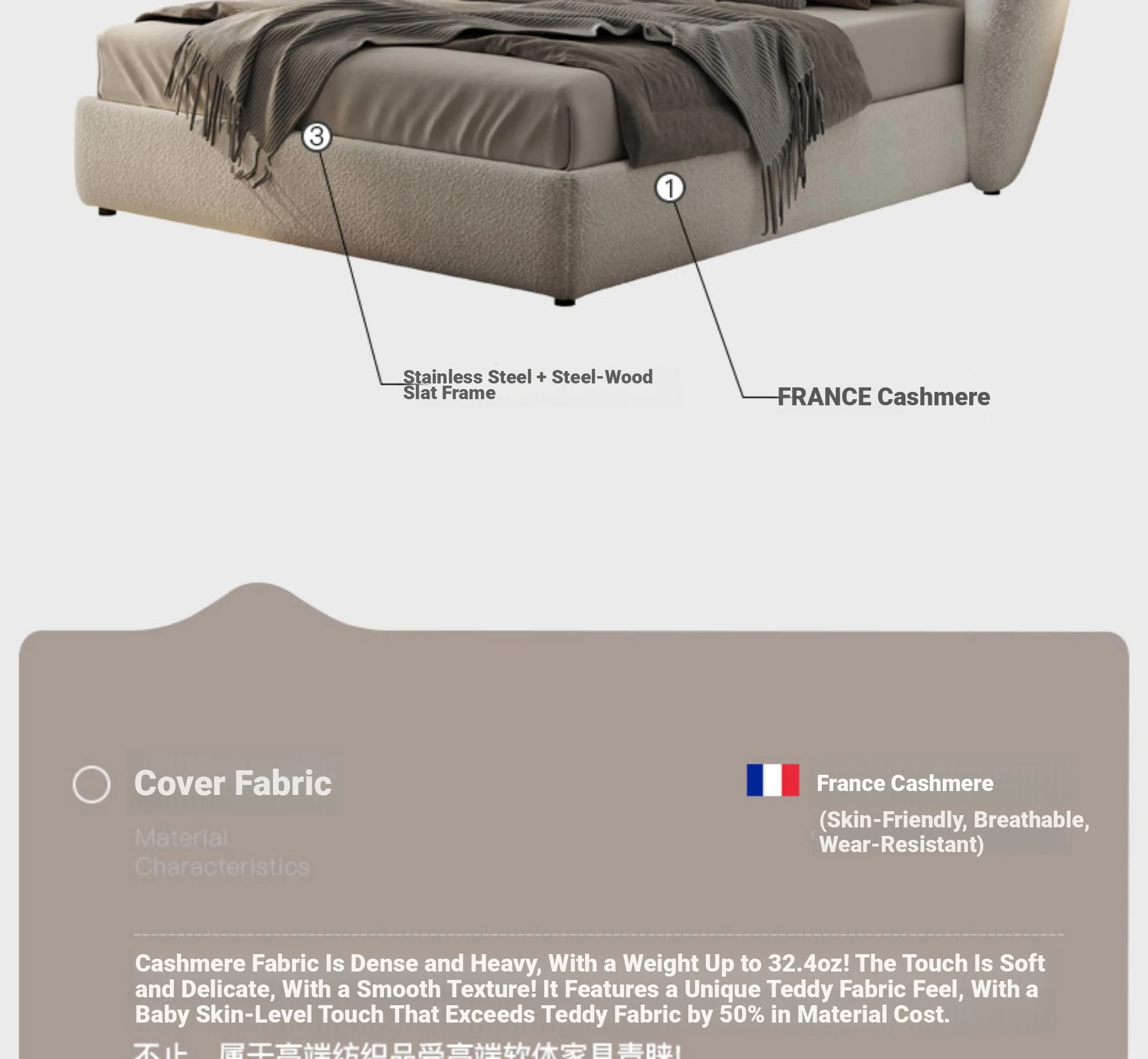 59.06in Single Bed [Recoinended for Secondary Bedroom-France Imported Cashmere]