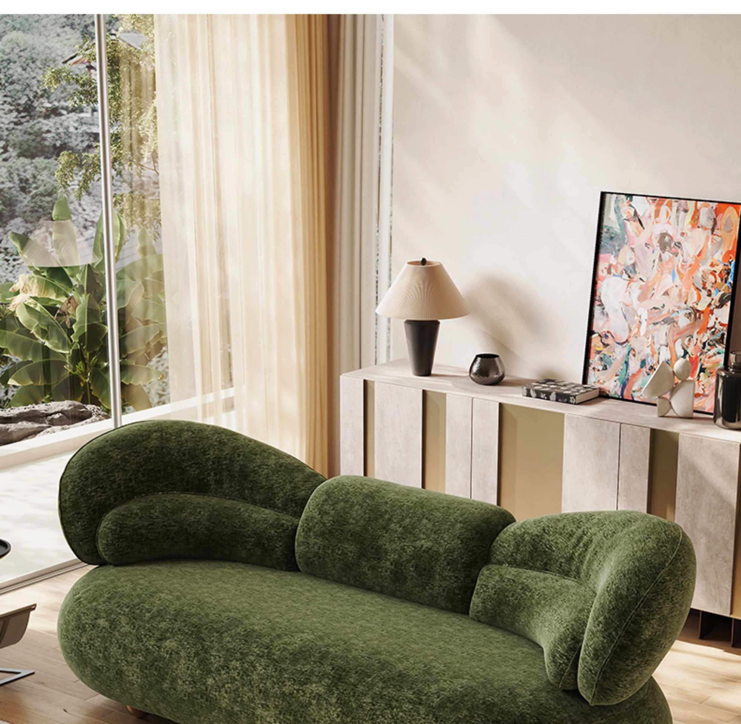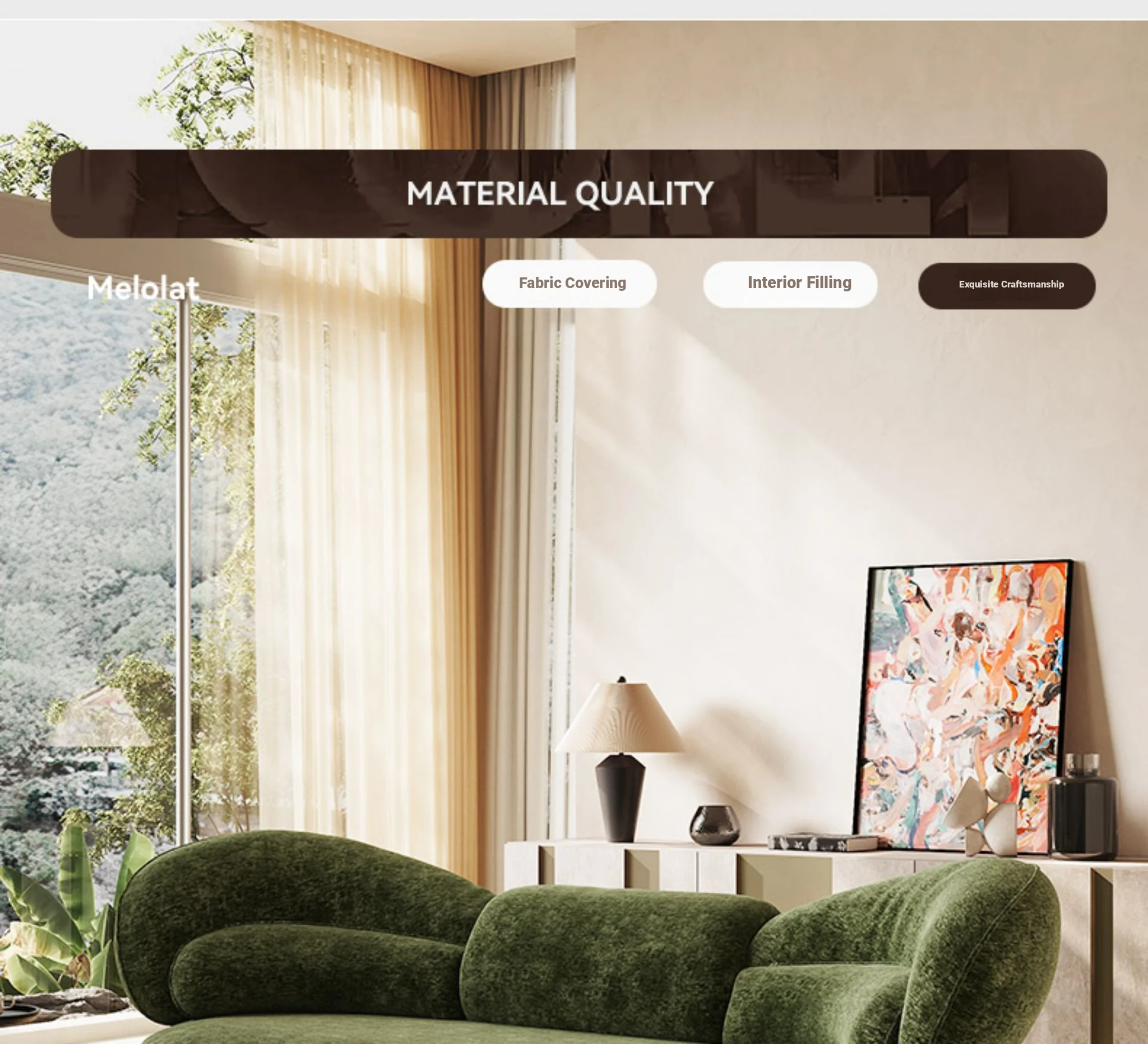 Melolat Italian Minimalist Fabric Sofa - Patented Design for High-End Living Rooms, Curved Luxury Style with Creamy Aesthetic