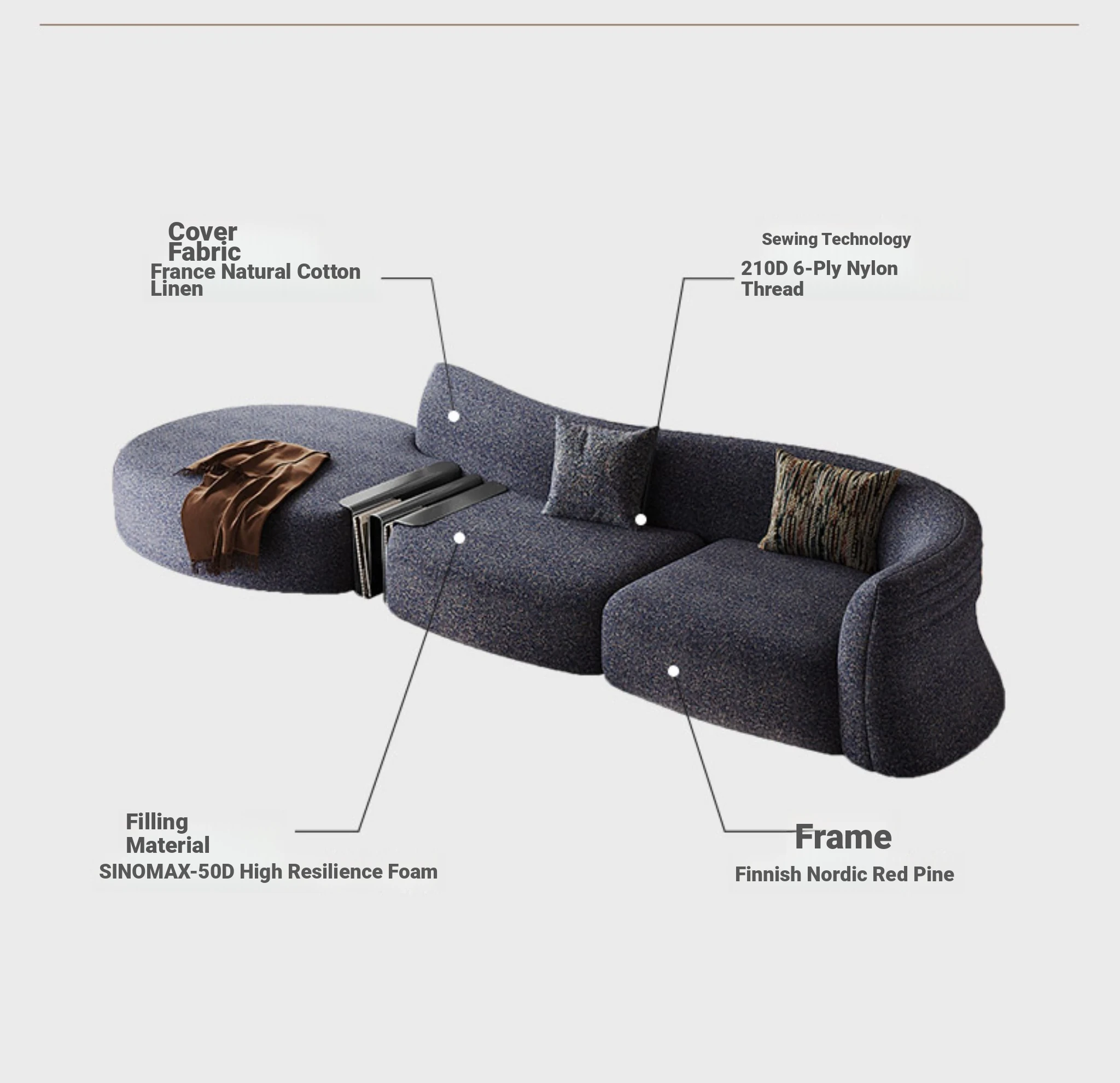 [France Imported Natural Cotton and Linen + 50D High Resilience Sponge + Finnish Nordic Red Pine Frame]