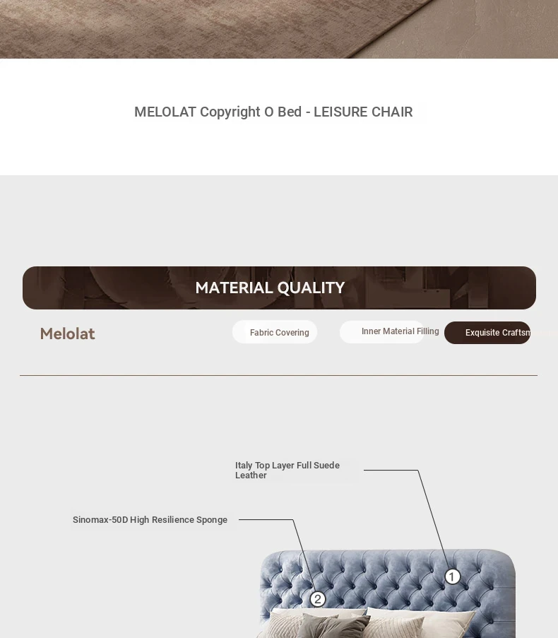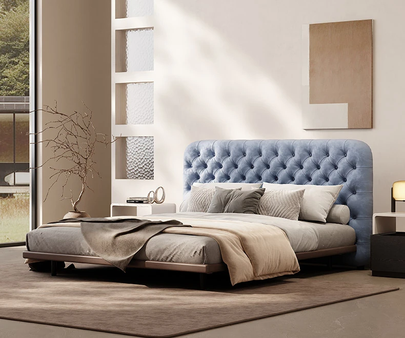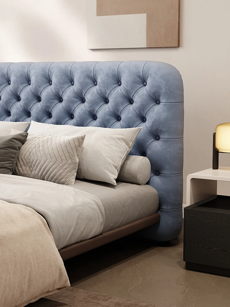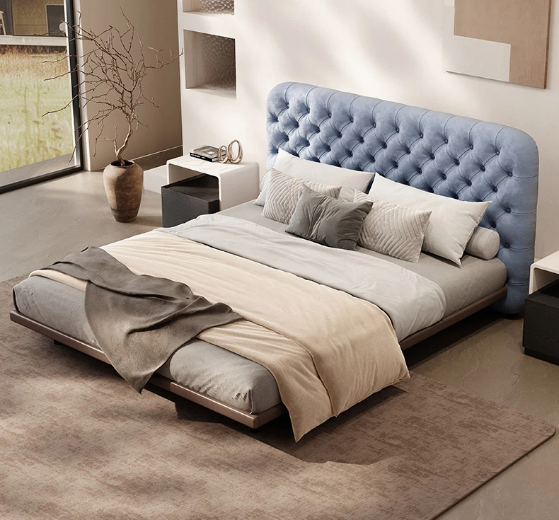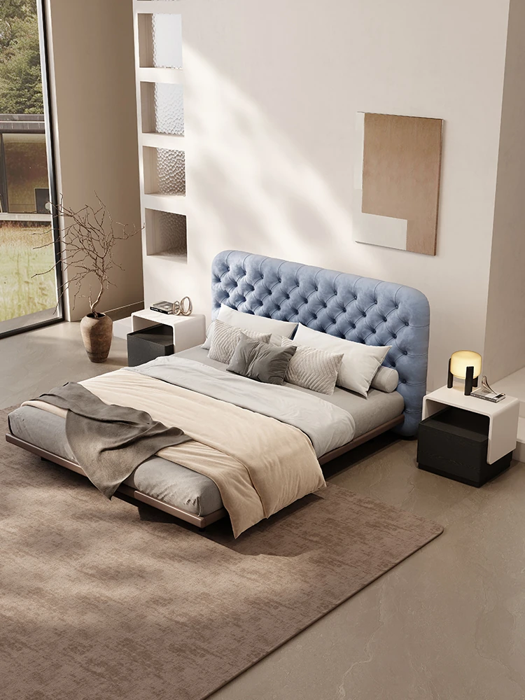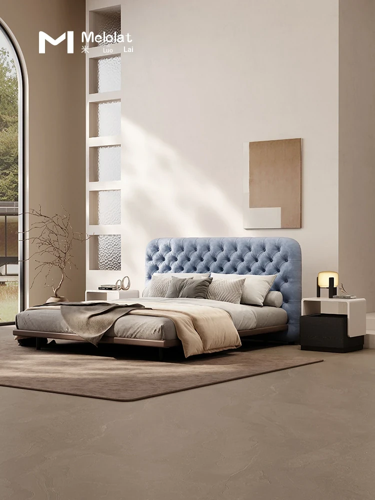 Melolat Italian Minimalist Genuine Leather Bed - Designer Master Bedroom Bed for Villa - Modern Simple Double Bed for Couples