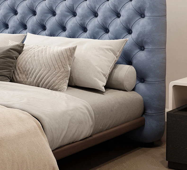 Glacier Blue 70.87in Single Bed [Italy Import First Layer Full Nubuck Leather] Full Genuine Leather