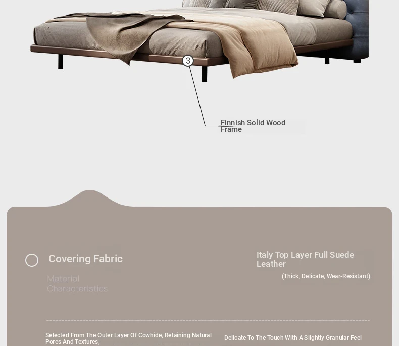 Moonlight Gray 70.87in Single Bed [Italy Import First Layer Full Nubuck Leather] Full Genuine Leather