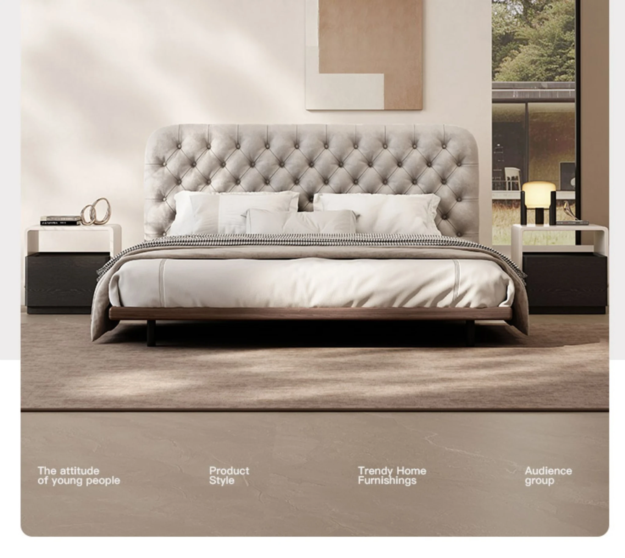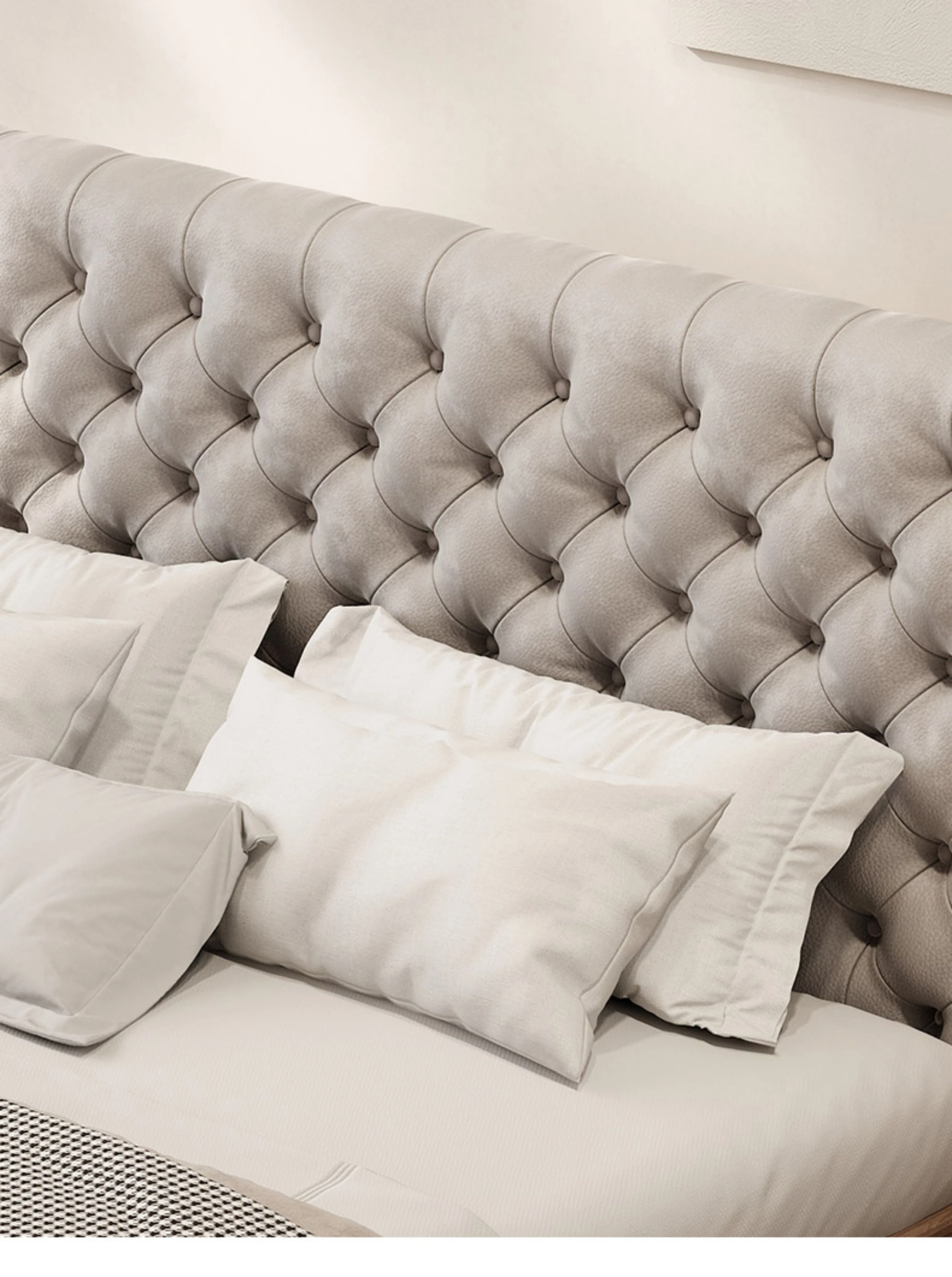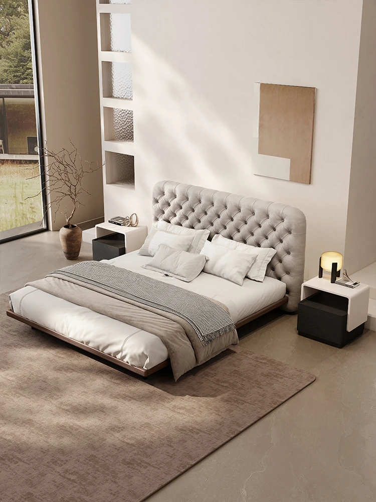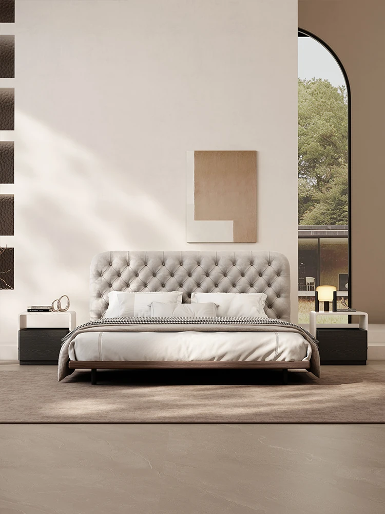 Melolat Italian Minimalist Genuine Leather Bed - Designer Modern Simple Master Bedroom Double Bed for Couples in Luxury Villa Style