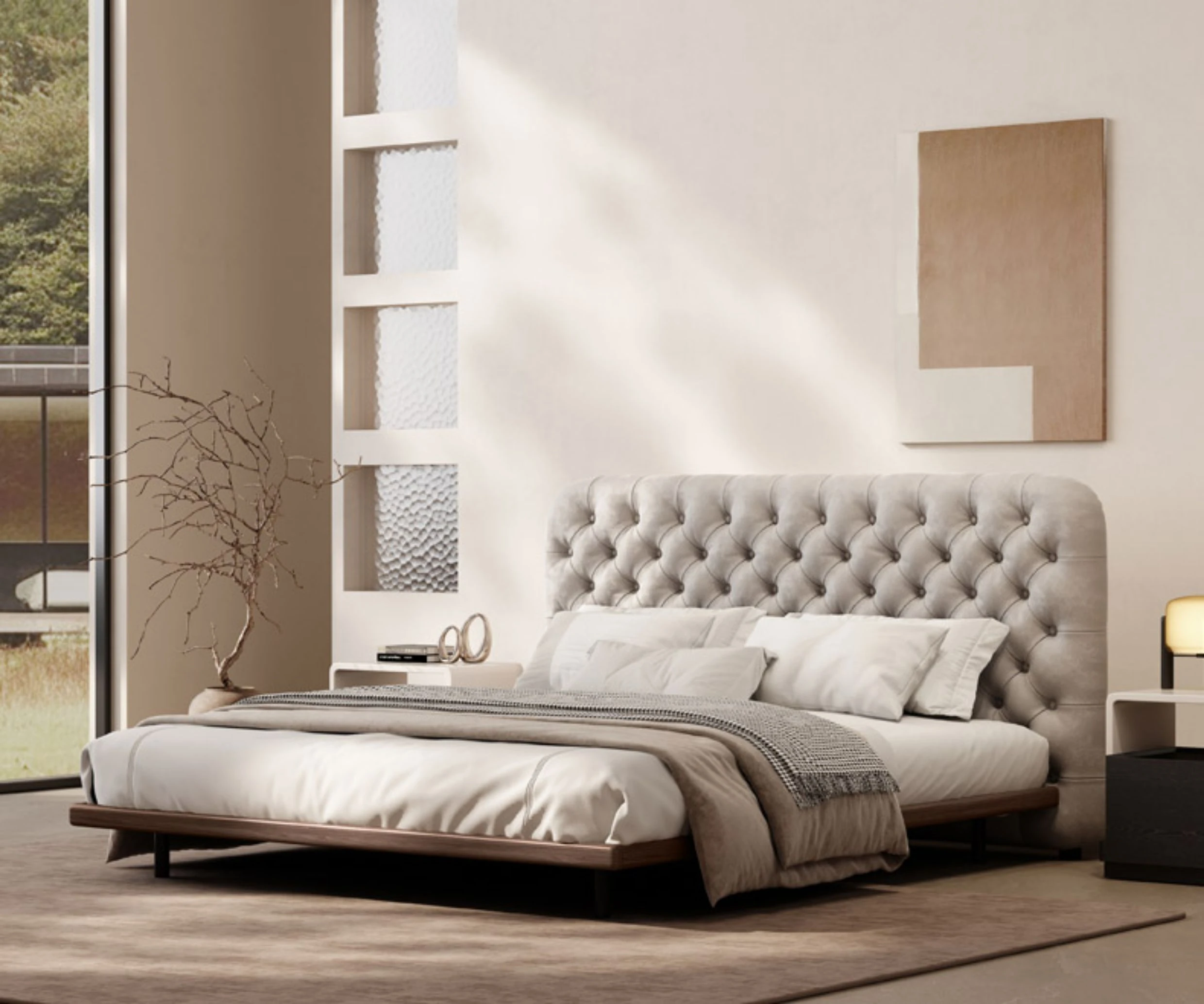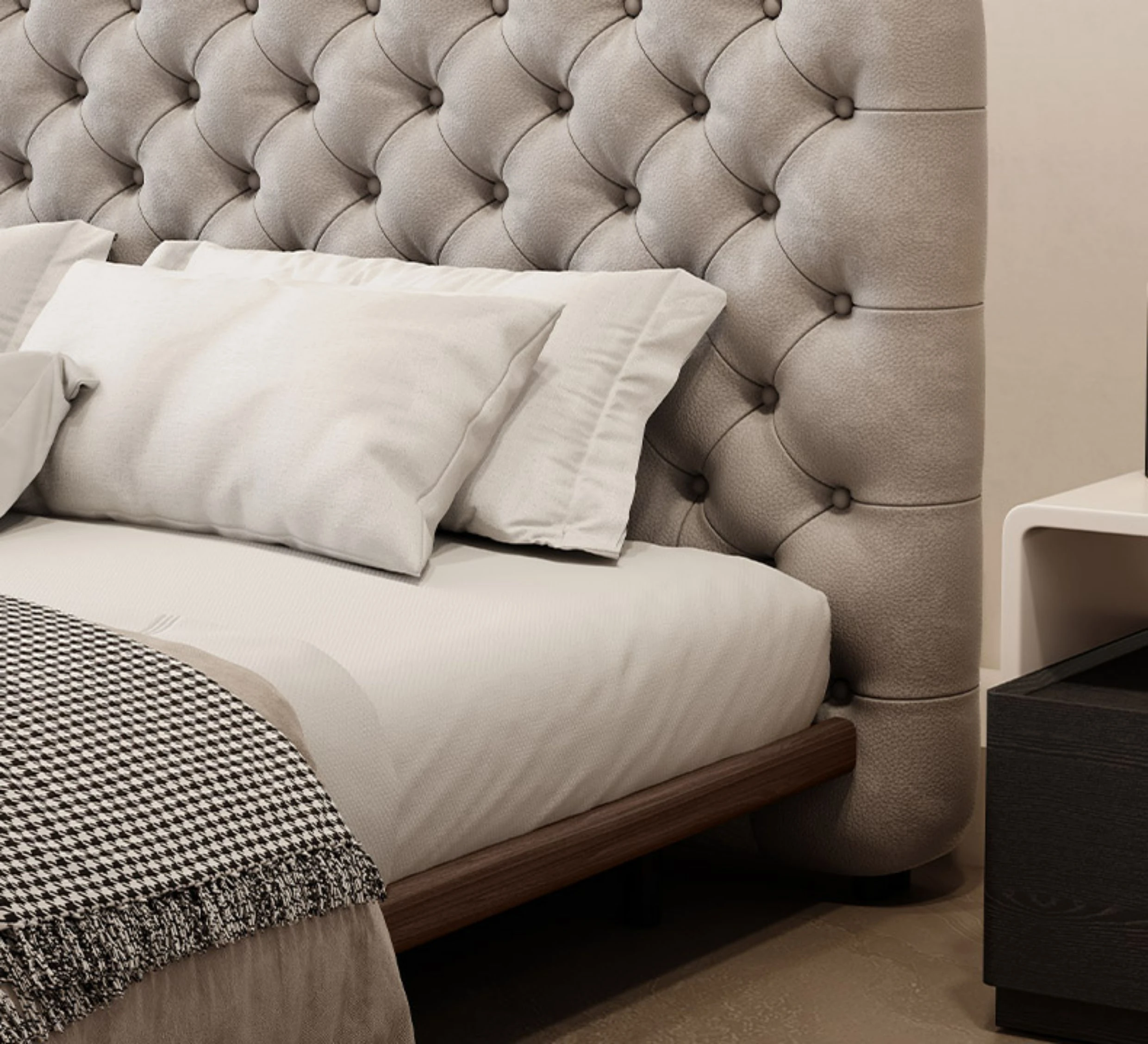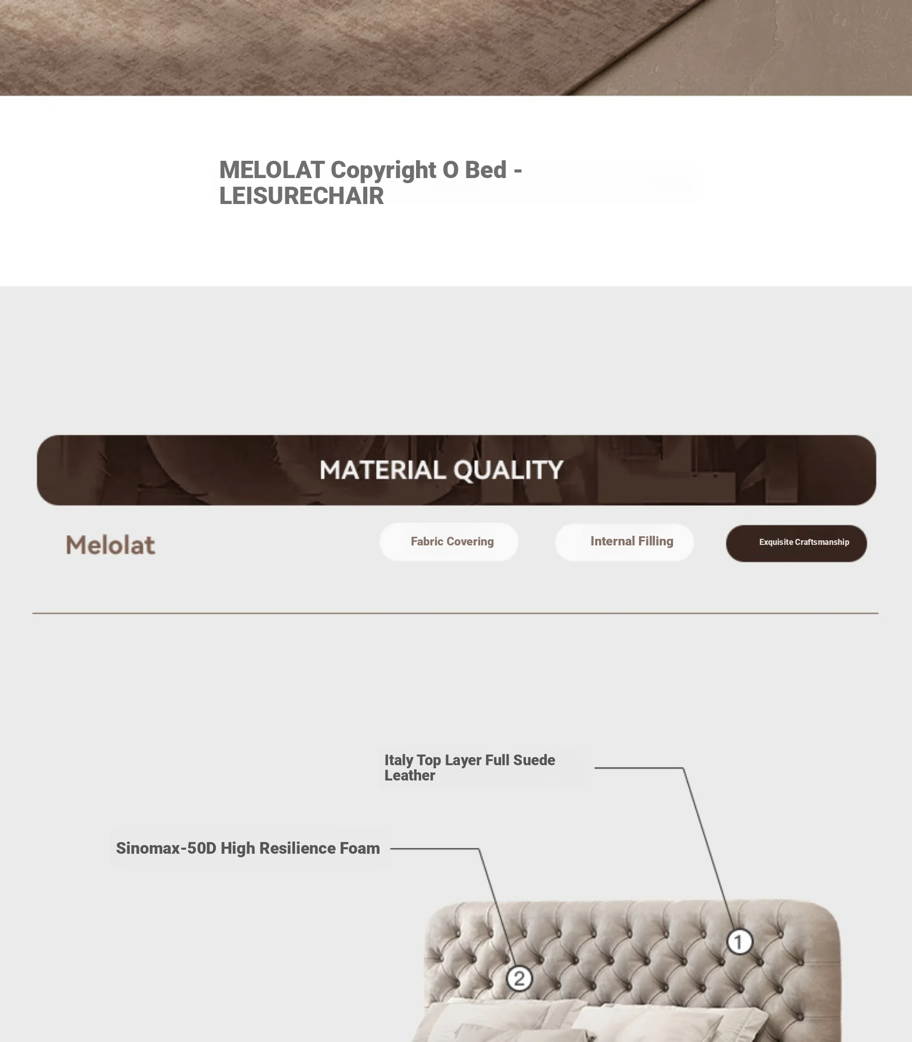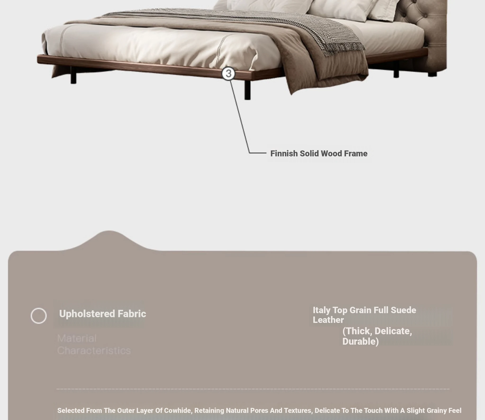 Melolat Italian Minimalist Genuine Leather Bed - Designer Modern Simple Master Bedroom Double Bed for Couples in Luxury Villa Style