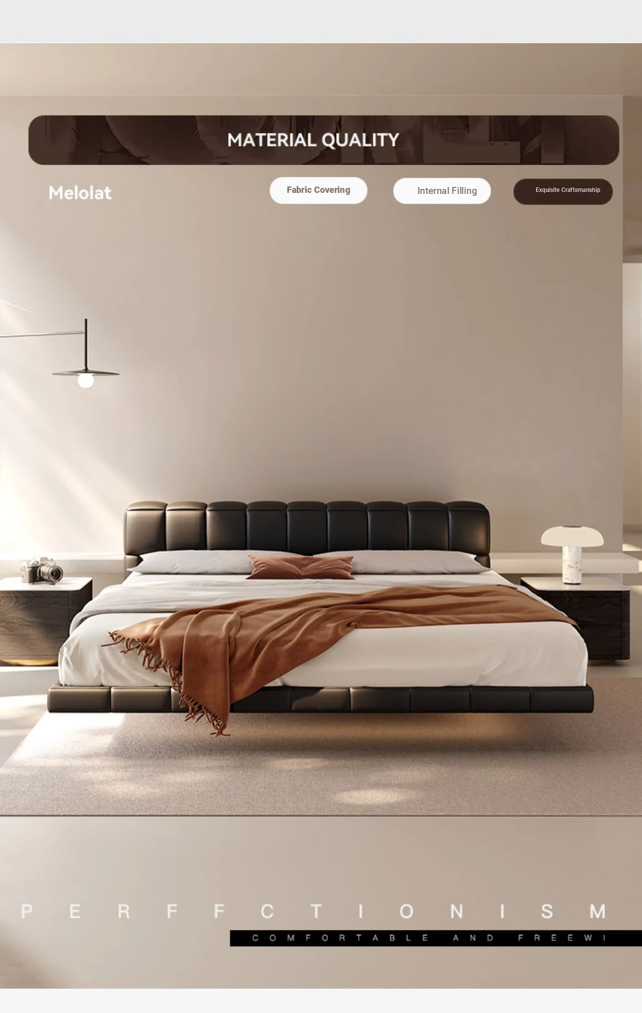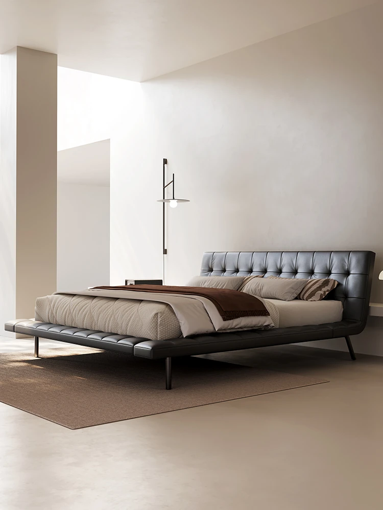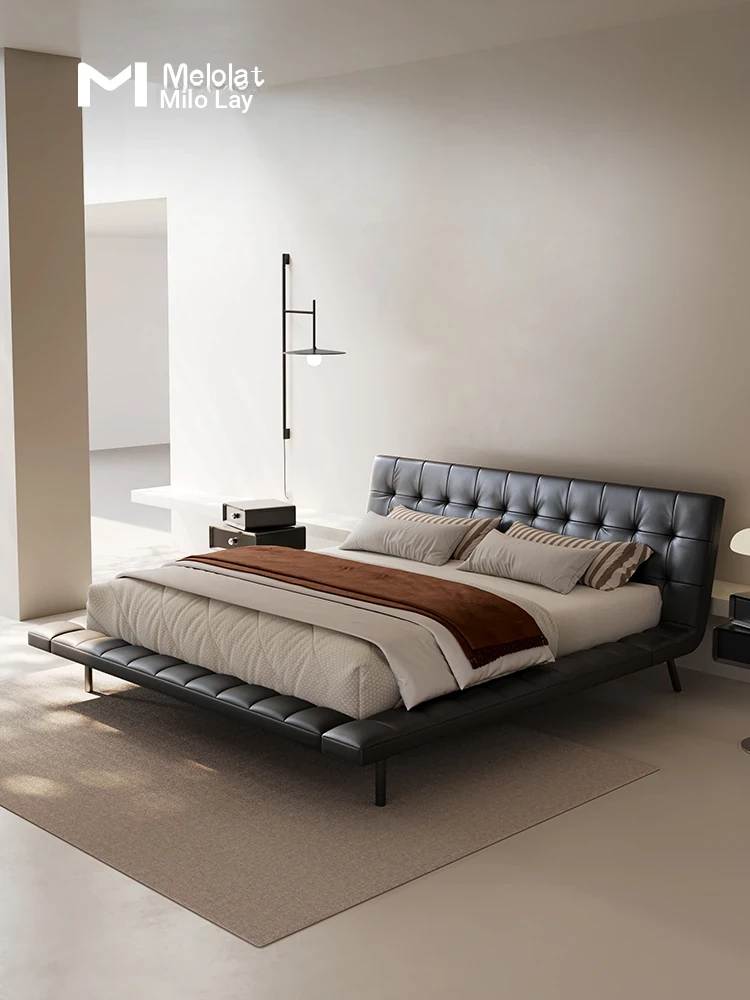 Melolat Italian Minimalist Genuine Leather Luxury Bed for Master Bedroom - Modern Simple Designer Double Bed for Weddings and Upscale Living