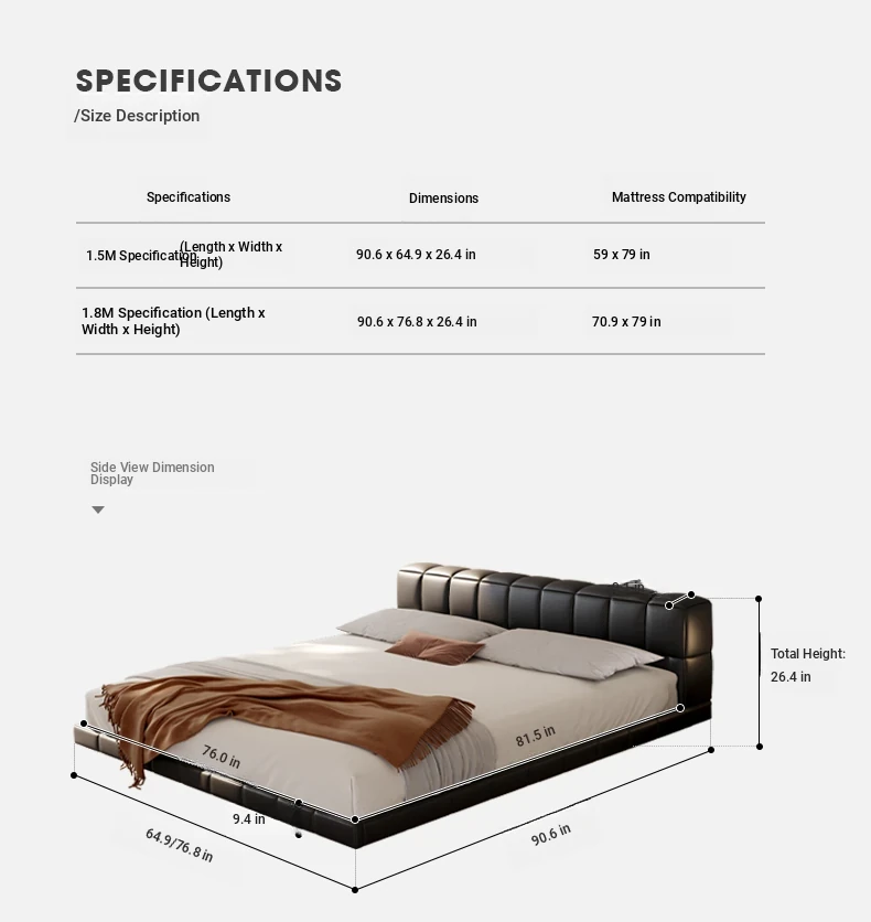 70.87in Single Bed [Italy Native Grain Leather] Genuine Leather Contact Surface
