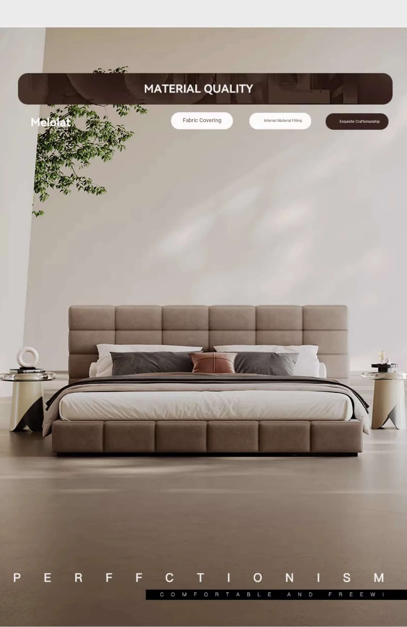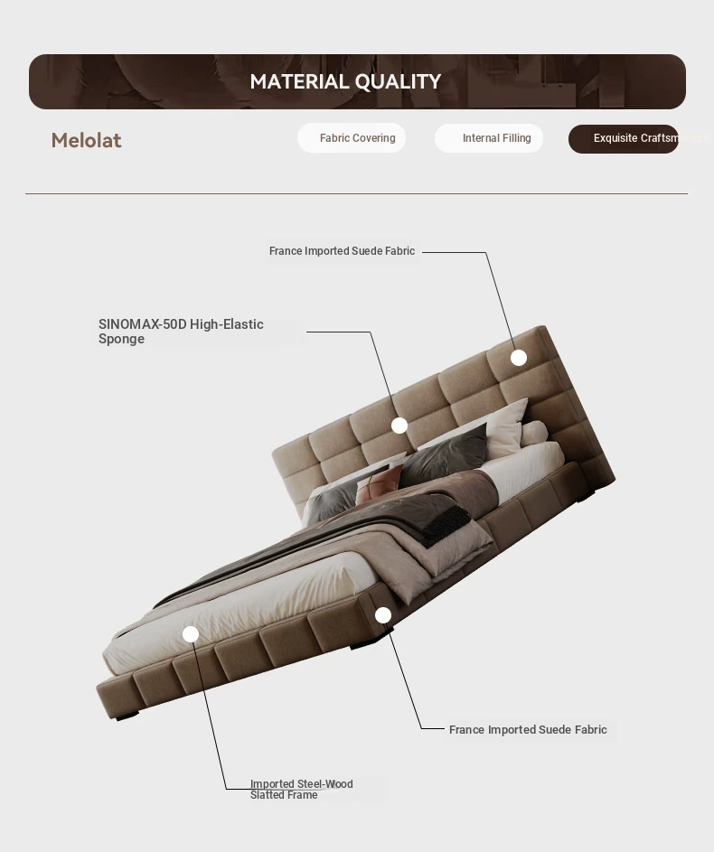 Melolat Italian Minimalist Lawrence Fabric Bed - High-End Modern Simple Double Marriage Bed with Soft Upholstered Design for Your Master Bedroom