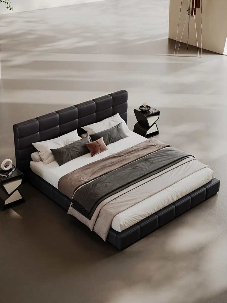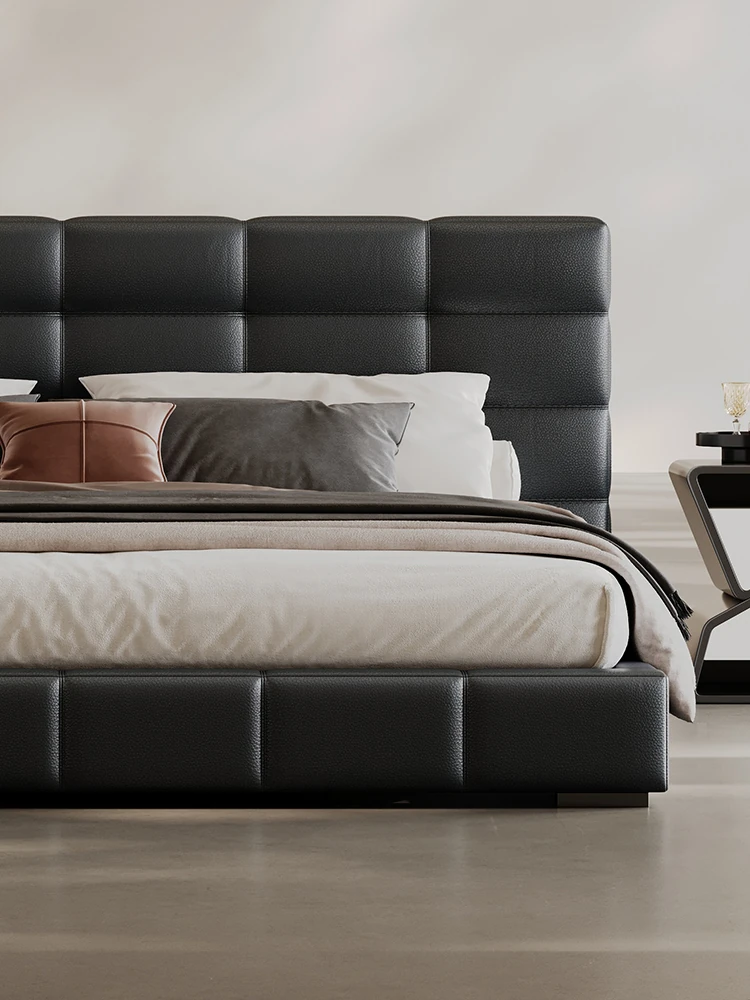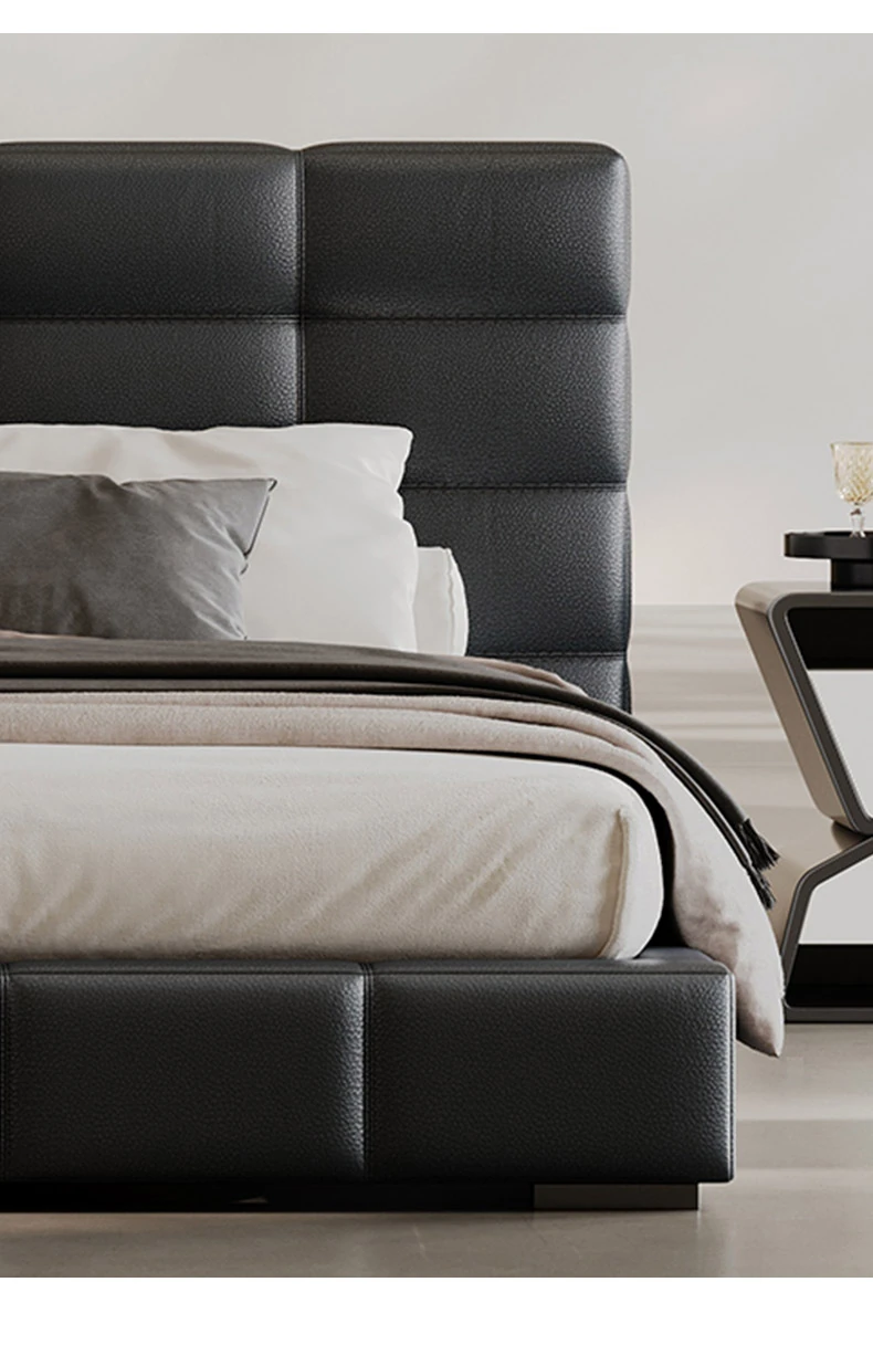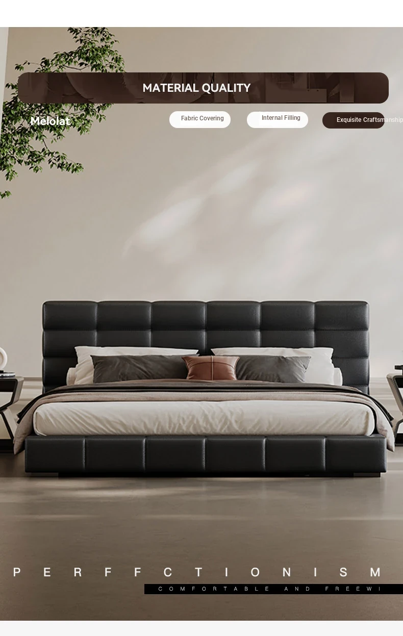 Melolat Italian Minimalist Lawrence Top-Grain Leather Bed - Modern Simple Double Marriage Bed with Soft Upholstered Design for Your Master Bedroom