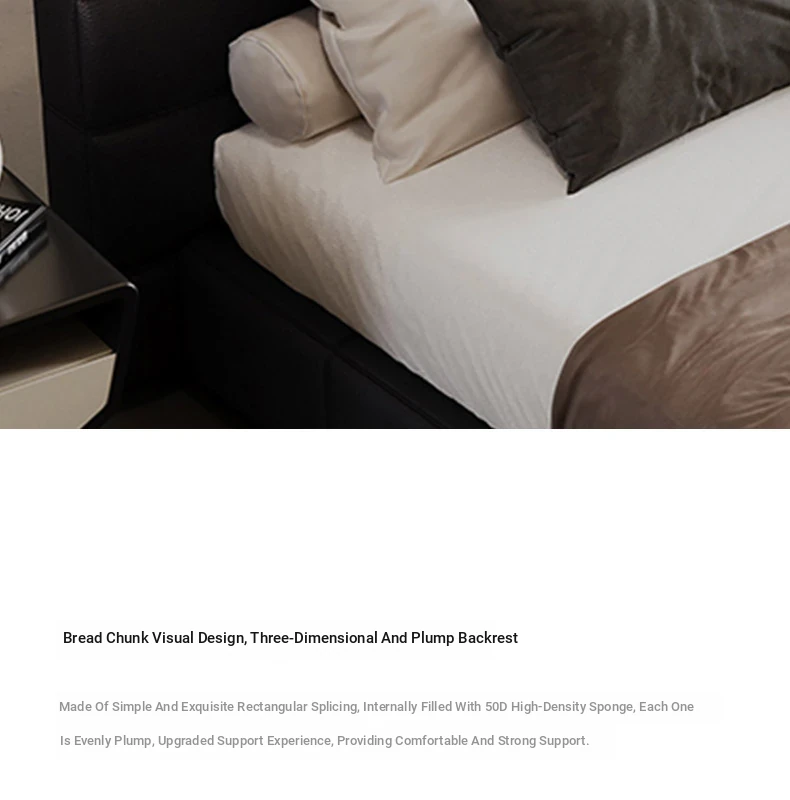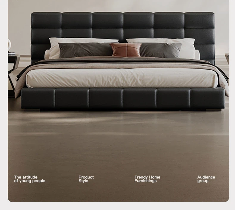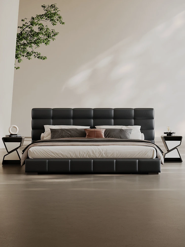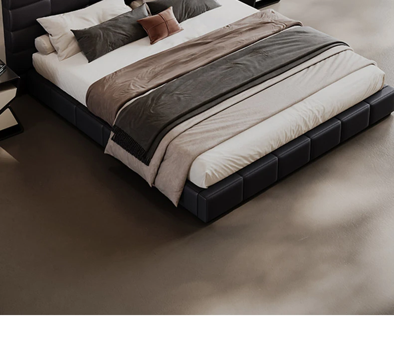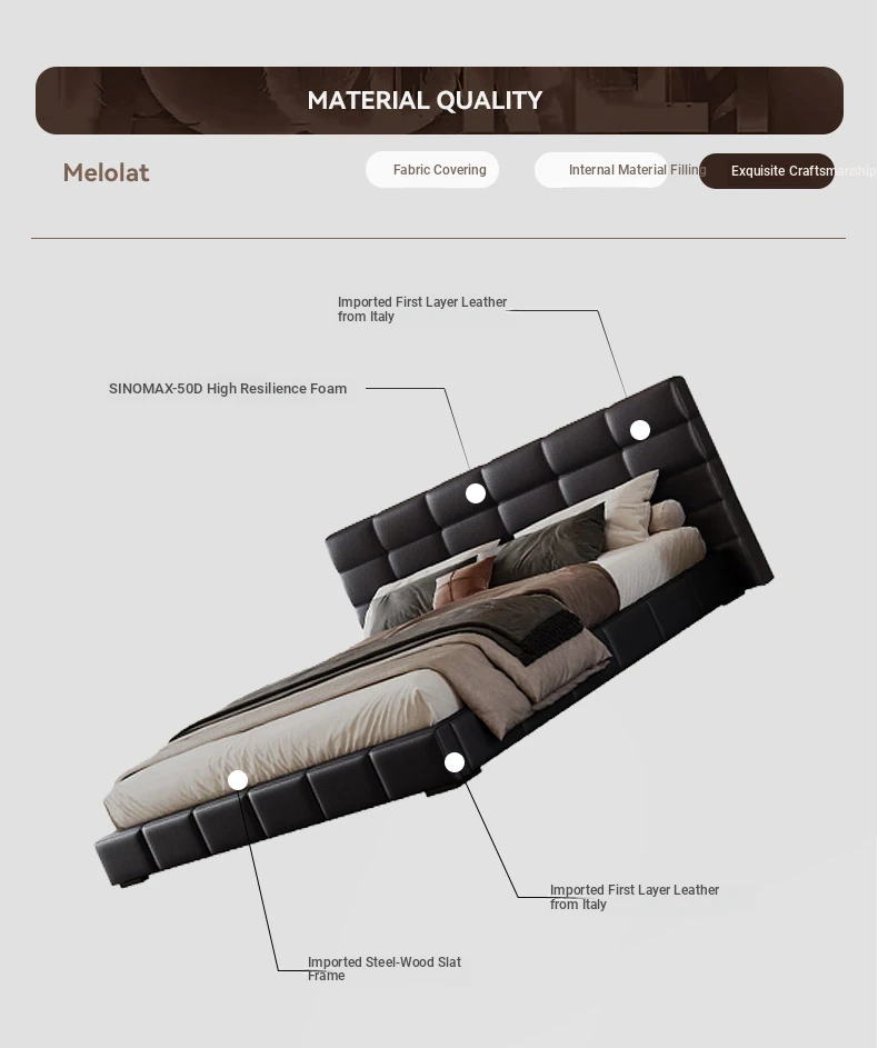 Melolat Italian Minimalist Lawrence Top-Grain Leather Bed - Modern Simple Double Marriage Bed with Soft Upholstered Design for Your Master Bedroom