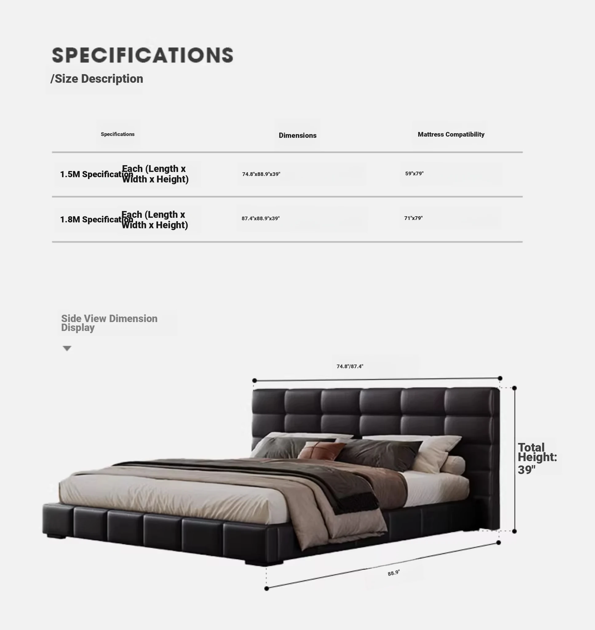 59.06in Single Bed [Ltaly Imported First Layer Cowhide]