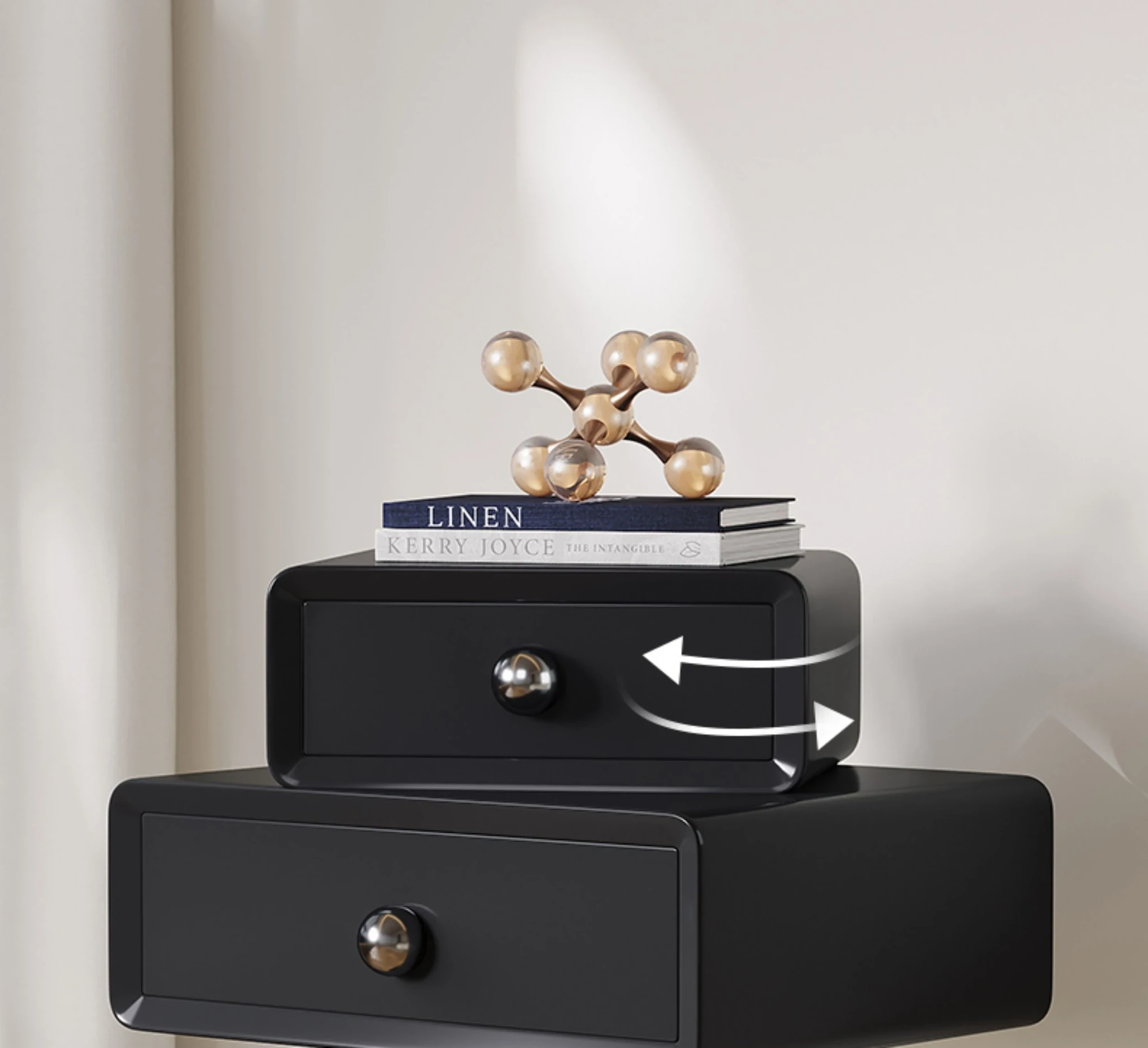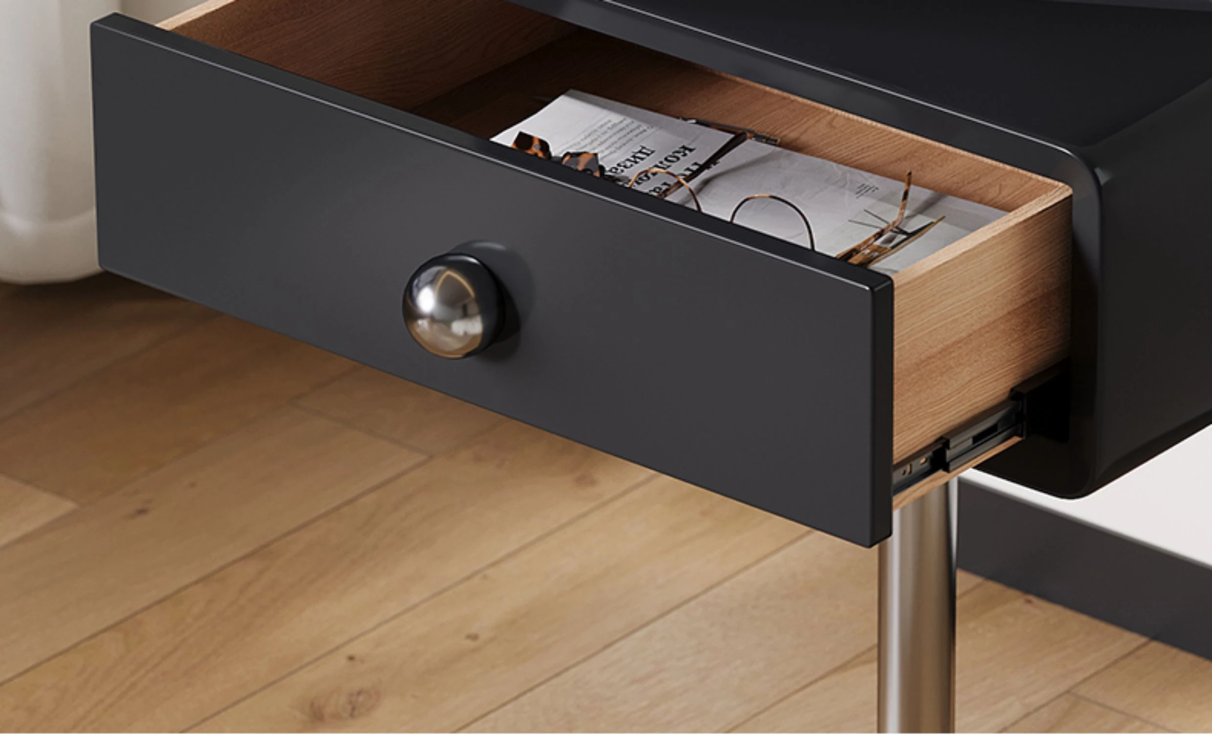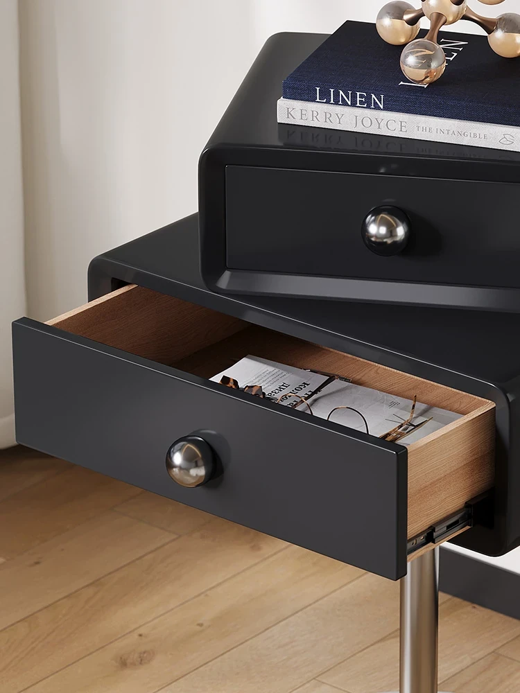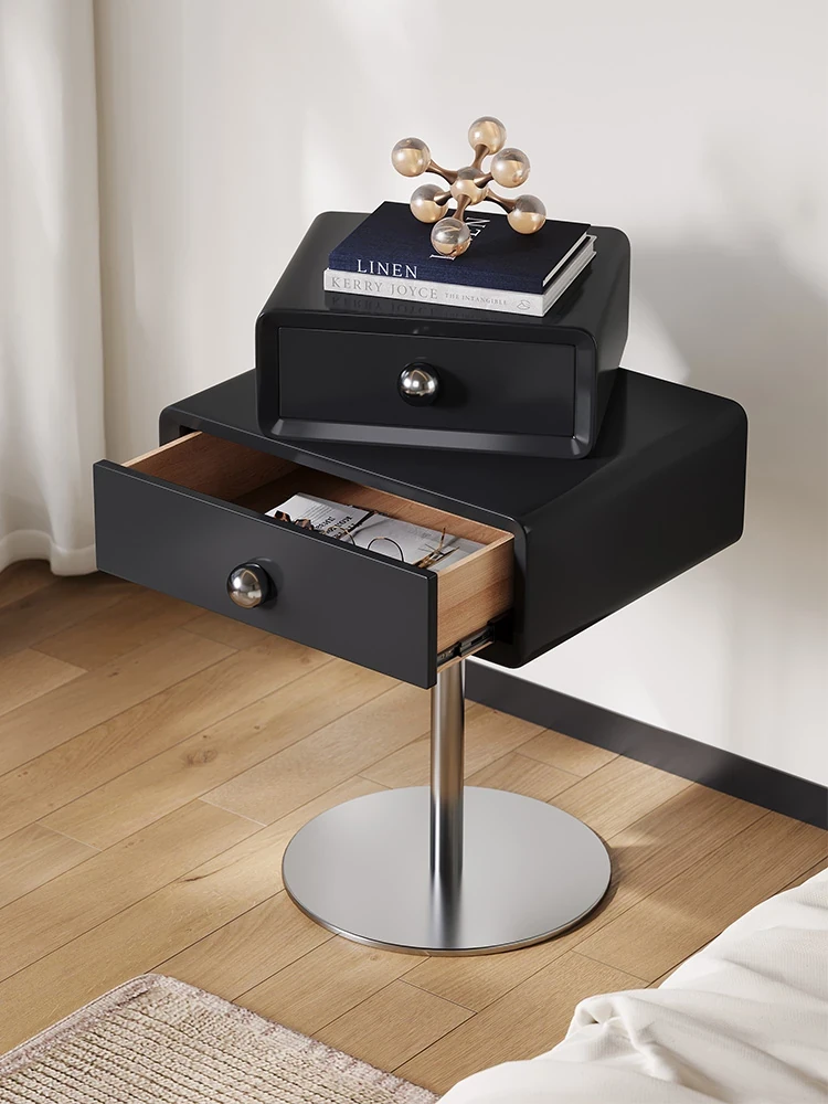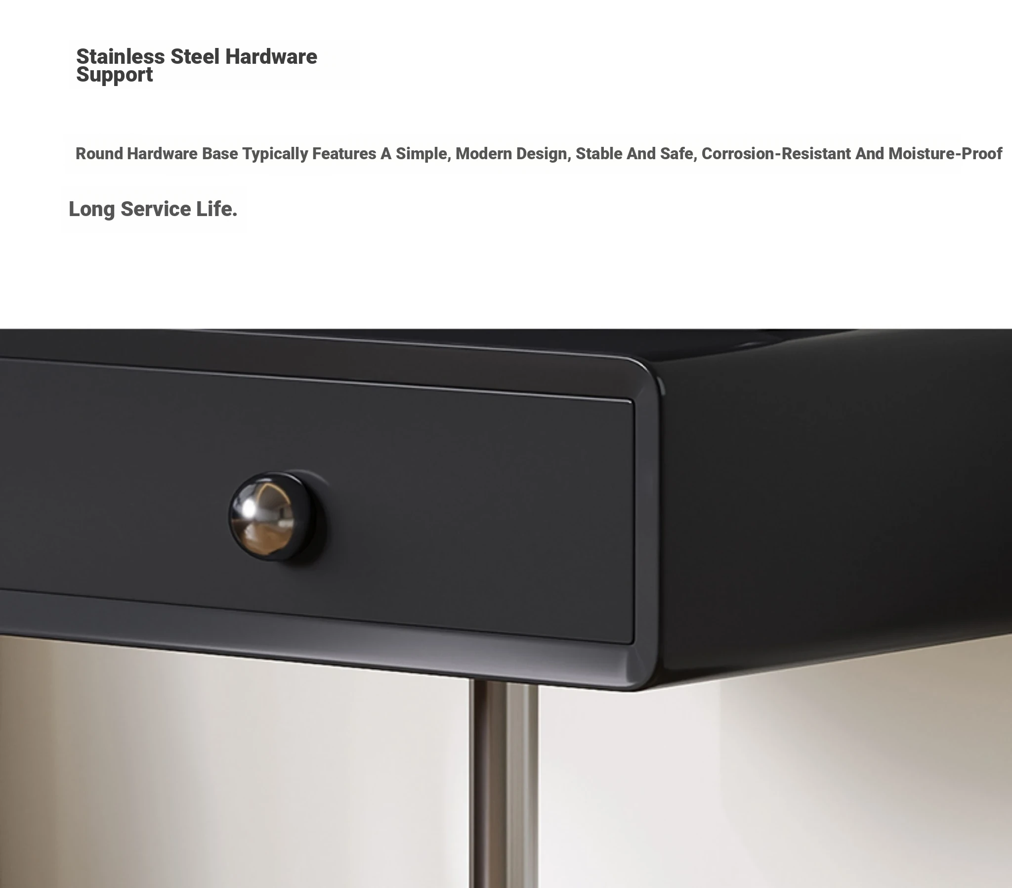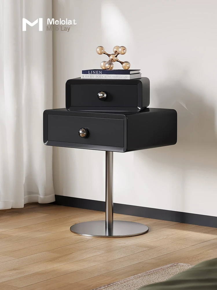 Melolat Italian Minimalist Nightstand - Compact Stainless Steel Drawer with Solid Wood Floating Design, Modern Simple Storage Cabinet for Small Spaces