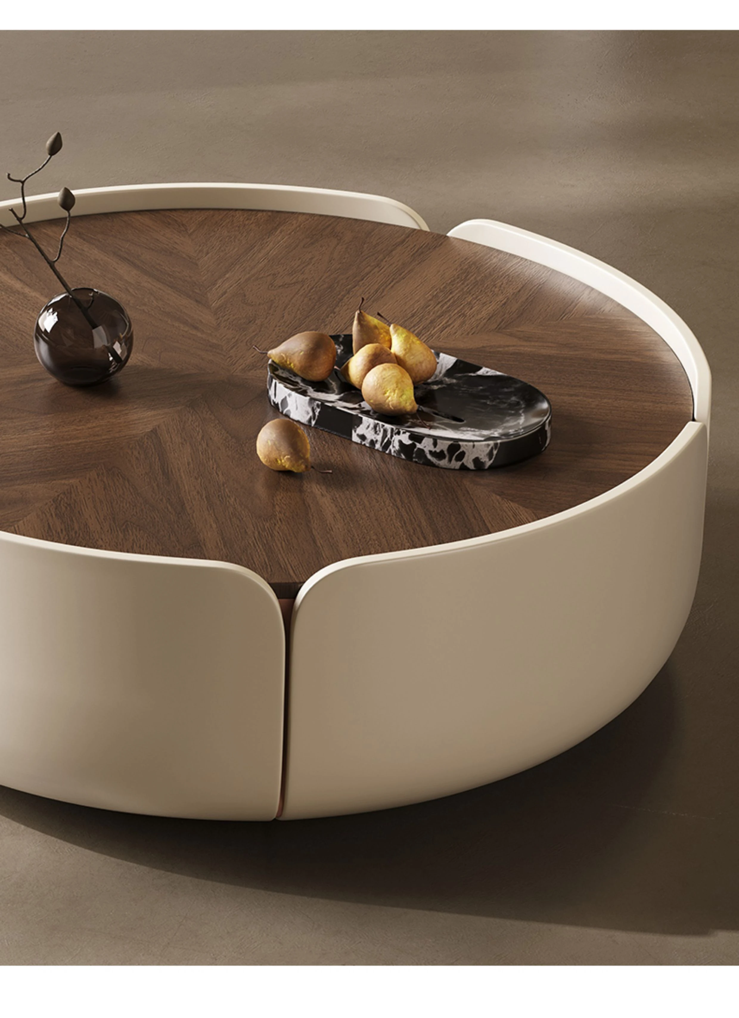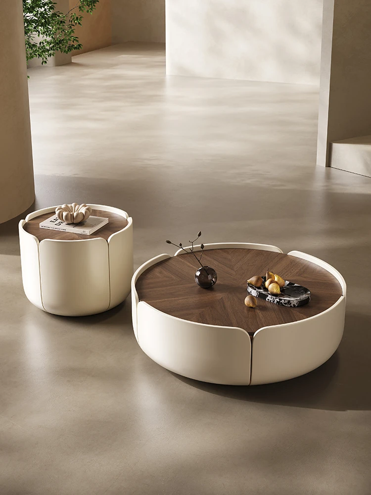 Melolat Italian Minimalist Petal Coffee Table - Modern Round Walnut Table for Small Living Rooms - Stylish and Functional Design for Compact Spaces
