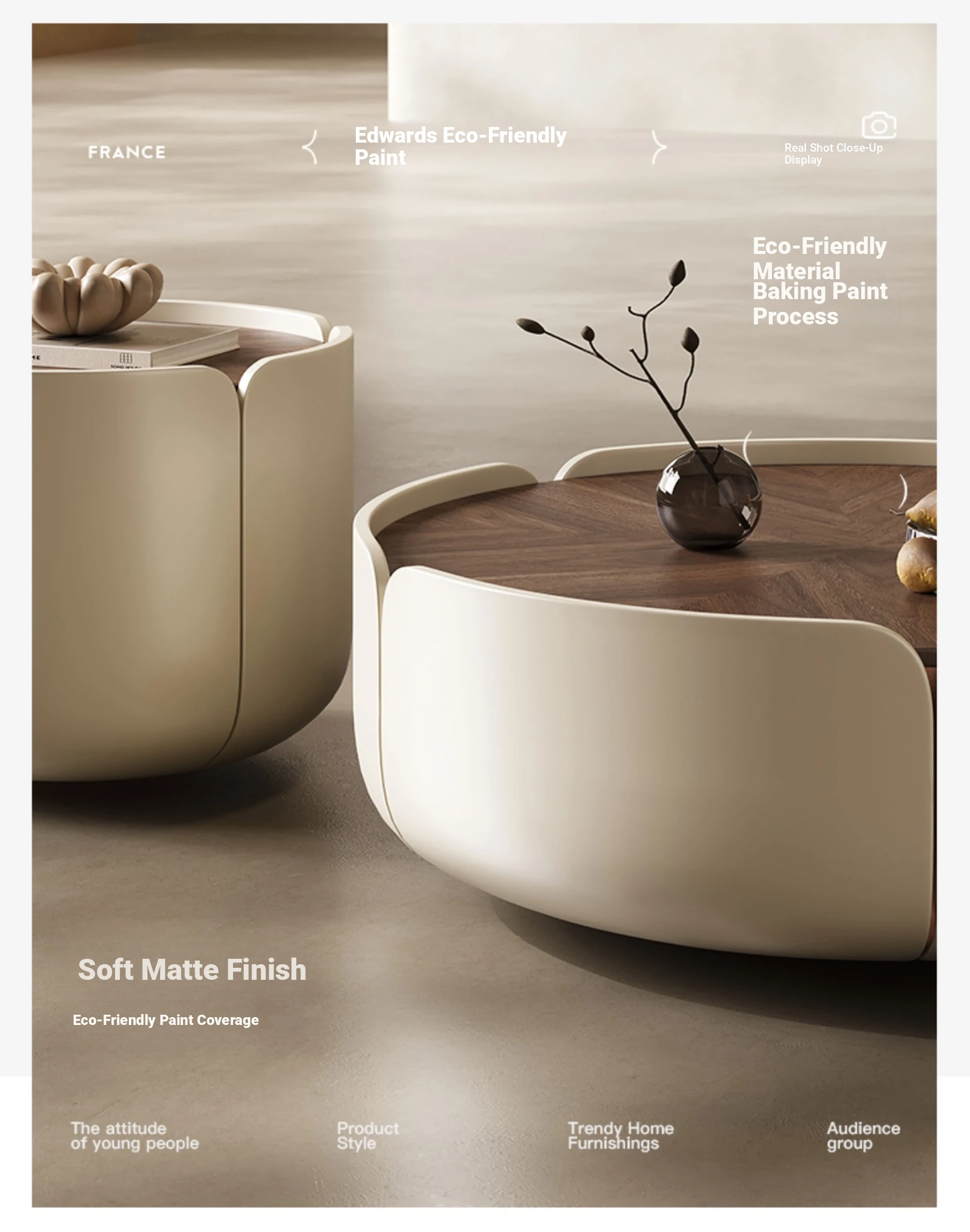【Limited Stock Available】Coffee Table Set 【Russian Imported Fas Multi-Layer Solid Wood Board + American Dunn-Edwards Eco-Friendly Paint】