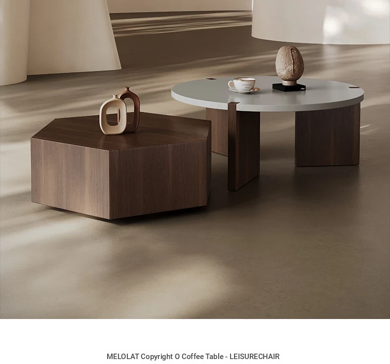 Melolat Italian Minimalist Round Coffee Table Set - Imported Smoked Wood for Small to Medium Living Rooms - Designer Home Furniture