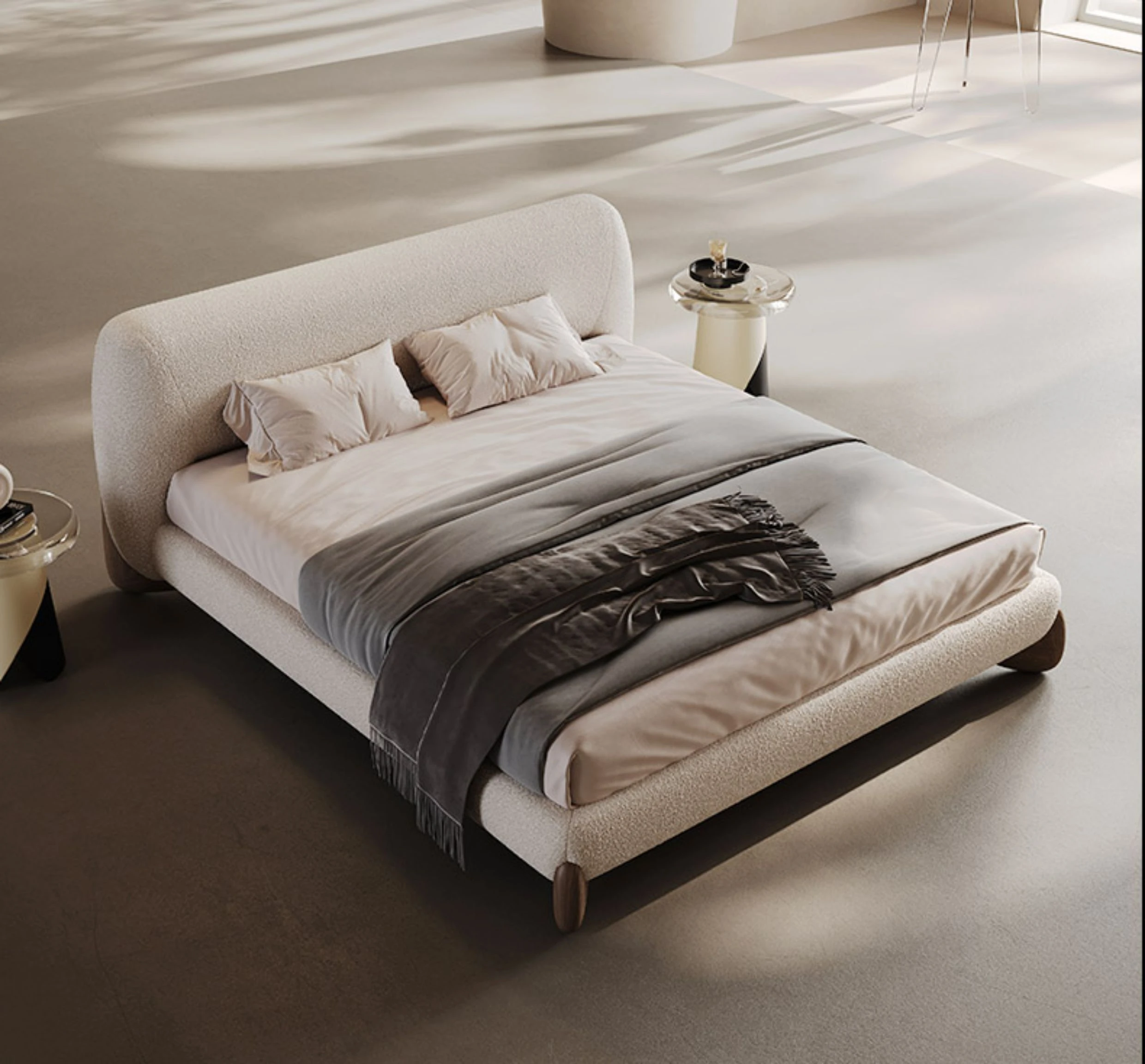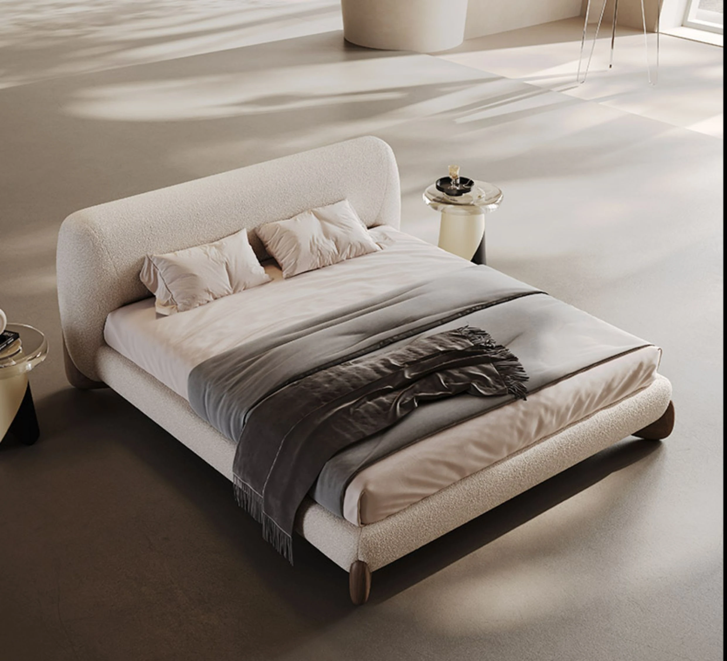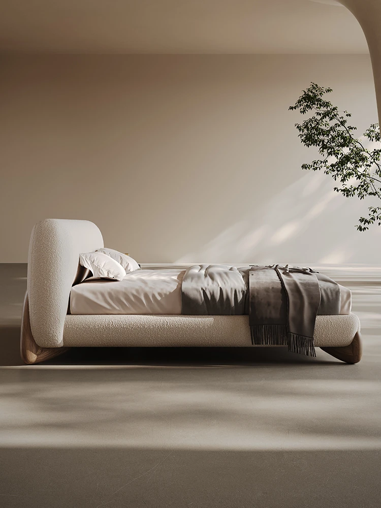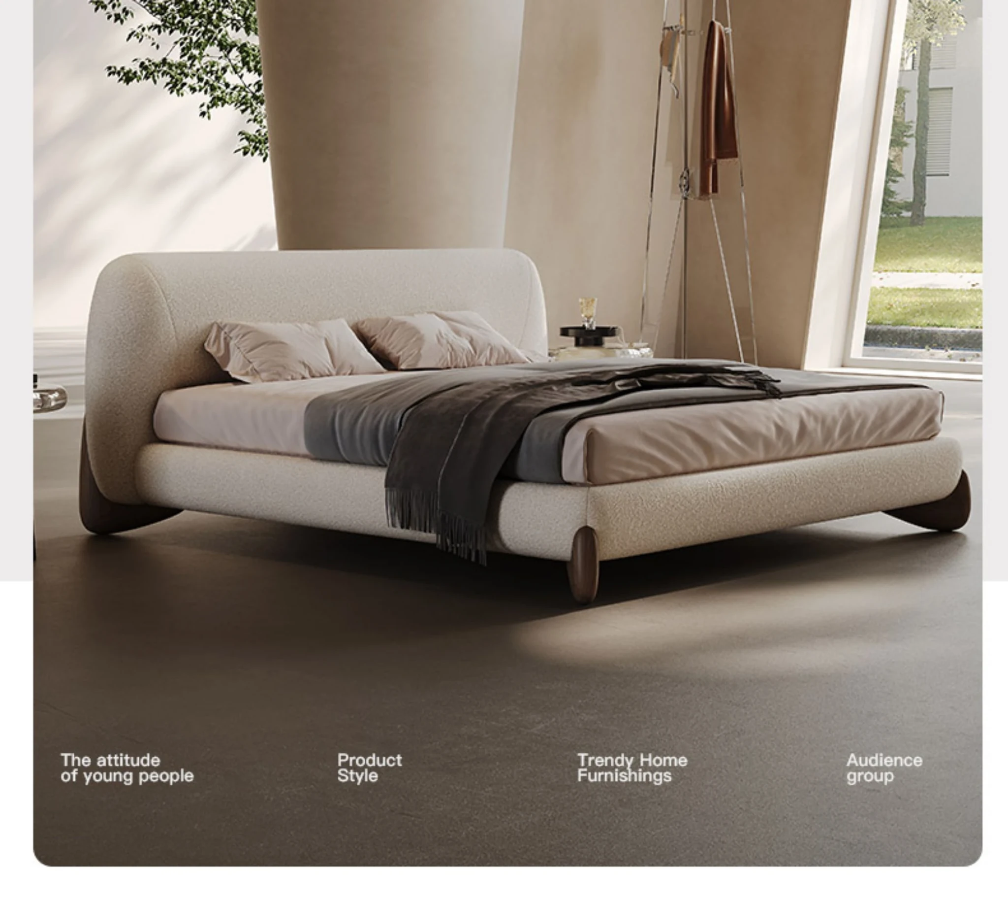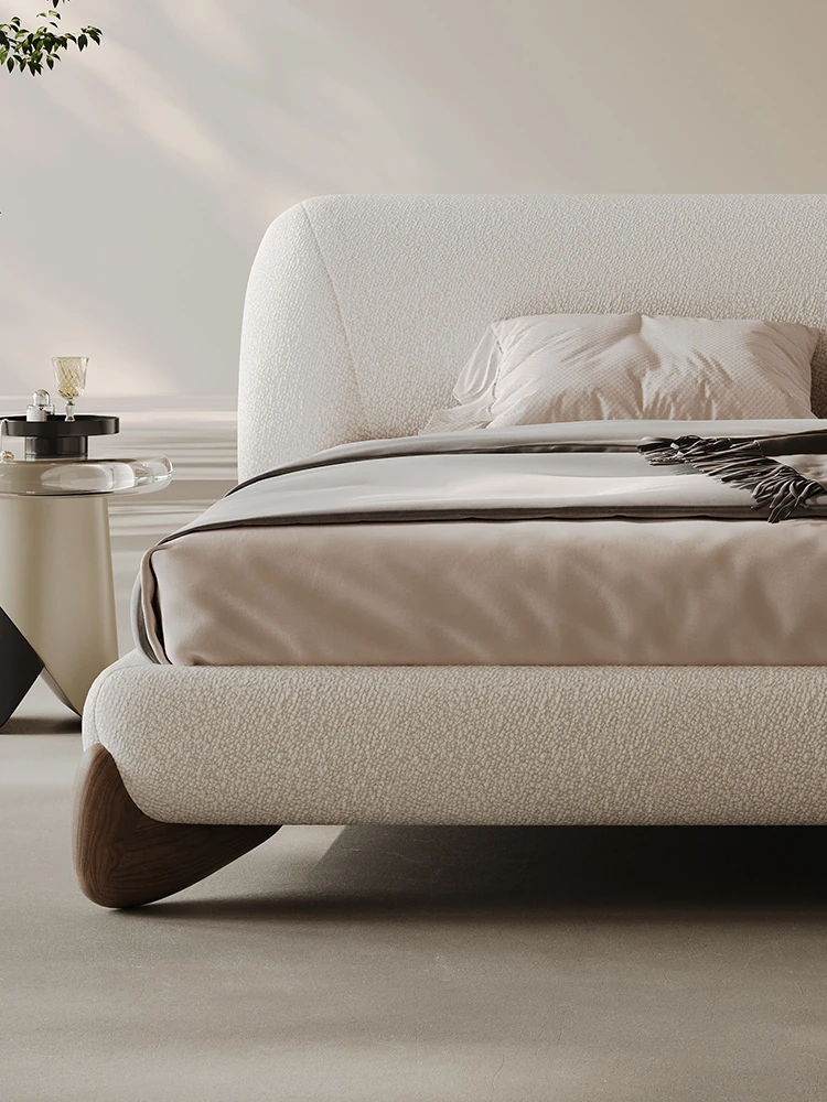 Melolat Italian Minimalist Teddy Velvet Double Bed - Creamy Soft Upholstered Luxury Wedding Bed 1.8m, Wabi-Sabi Style for a Cozy Bedroom Experience