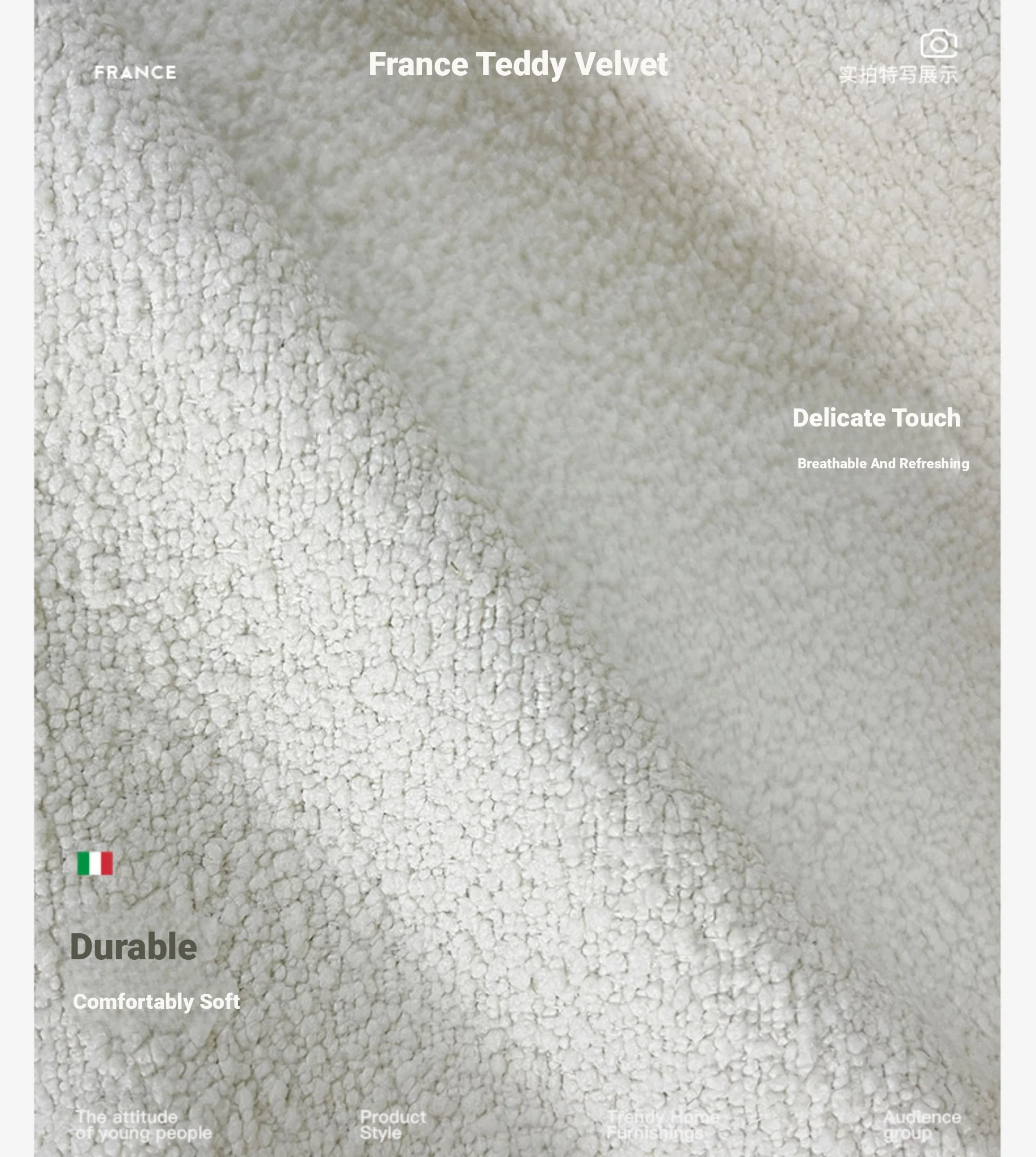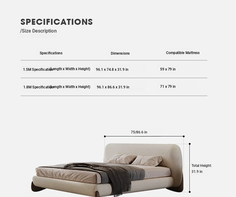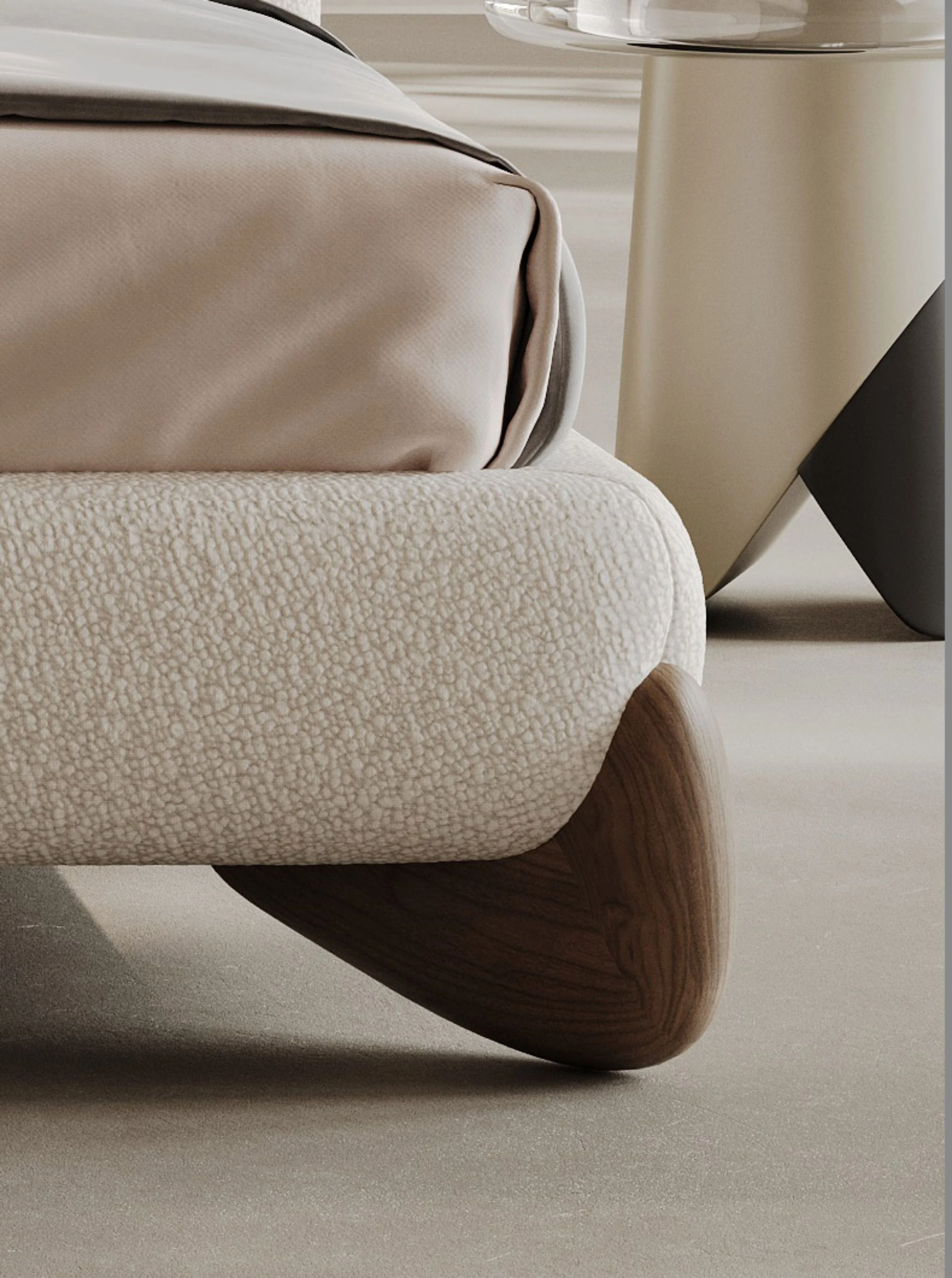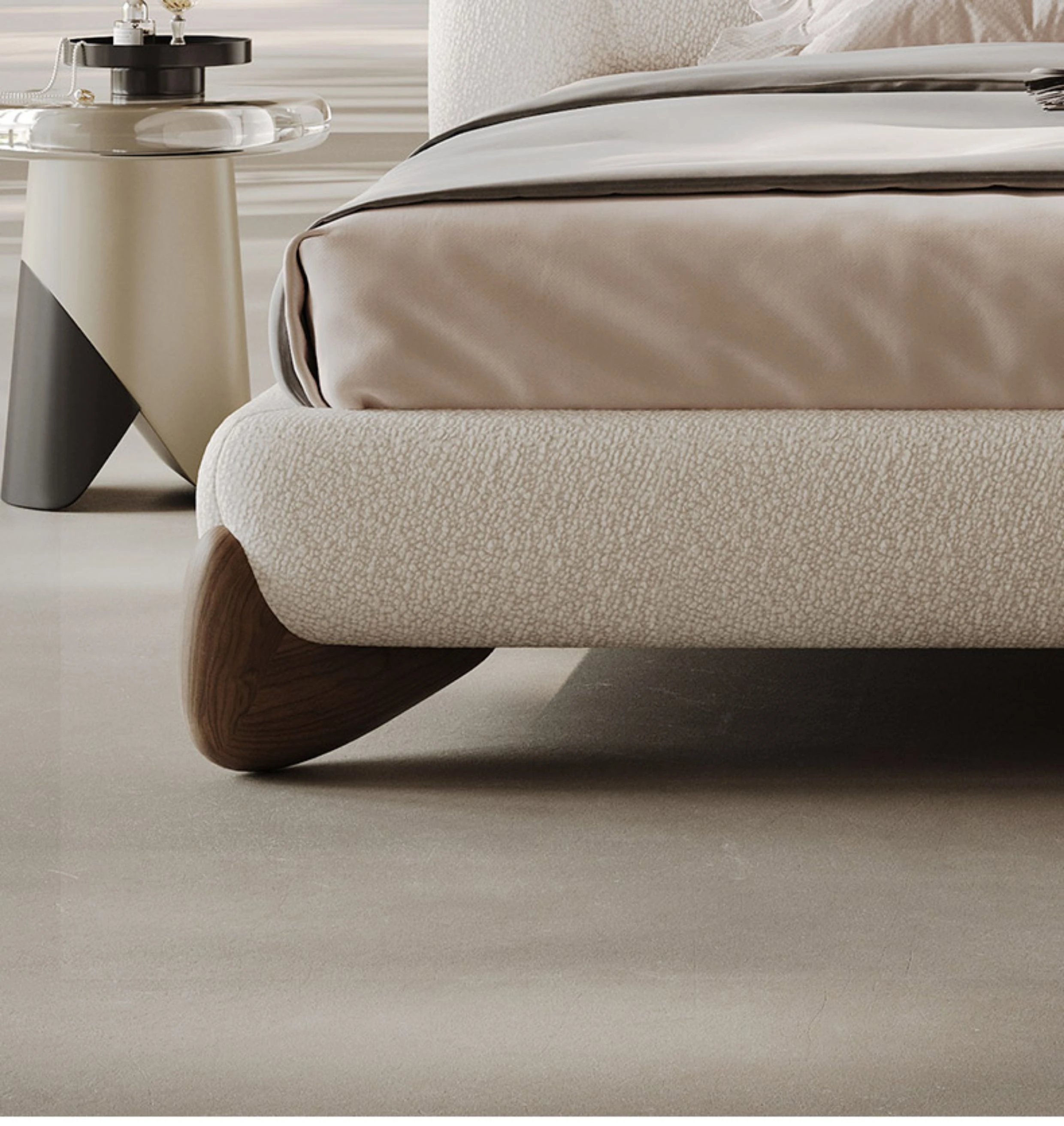 Melolat Italian Minimalist Teddy Velvet Double Bed - Creamy Soft Upholstered Luxury Wedding Bed 1.8m, Wabi-Sabi Style for a Cozy Bedroom Experience