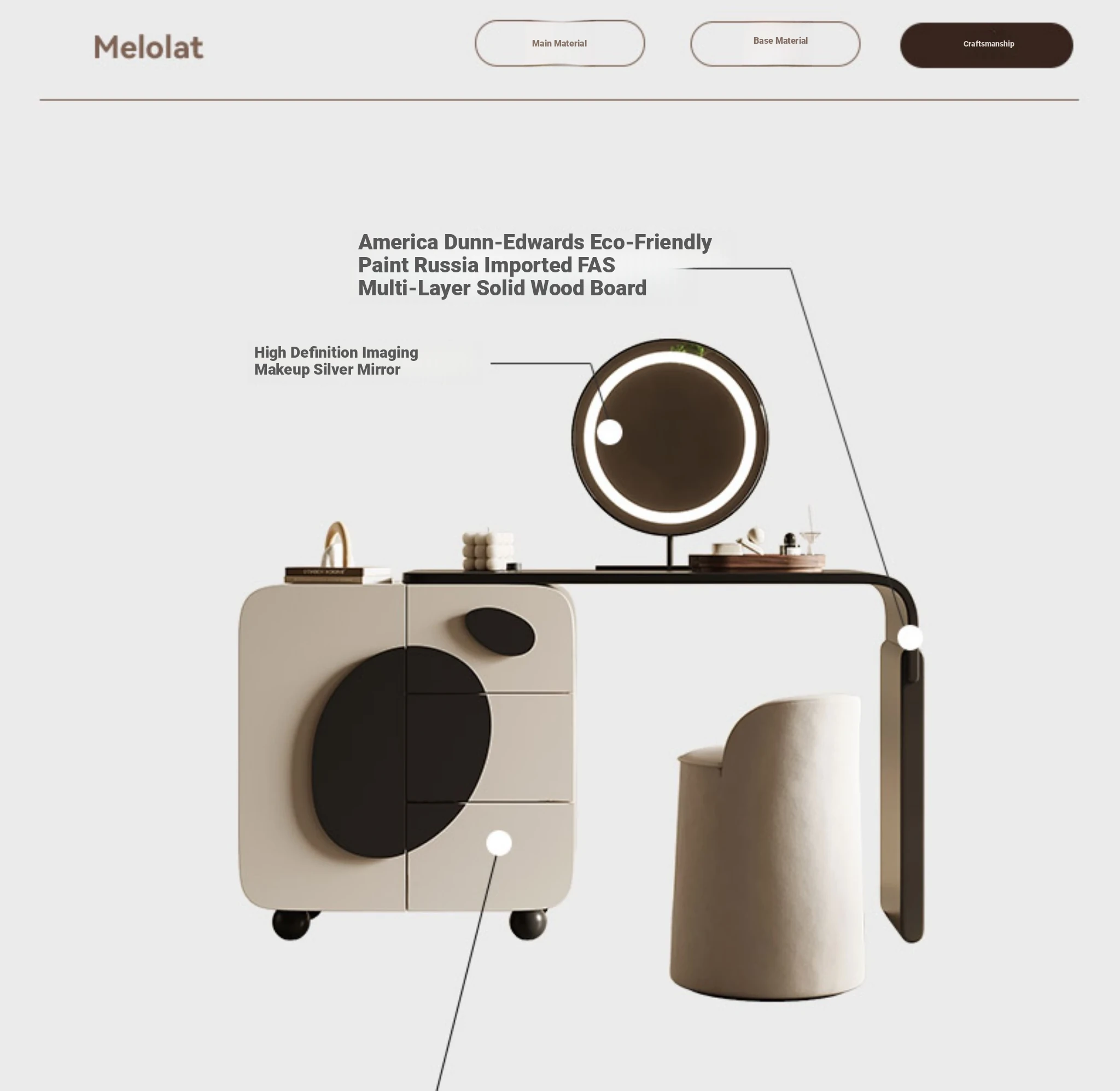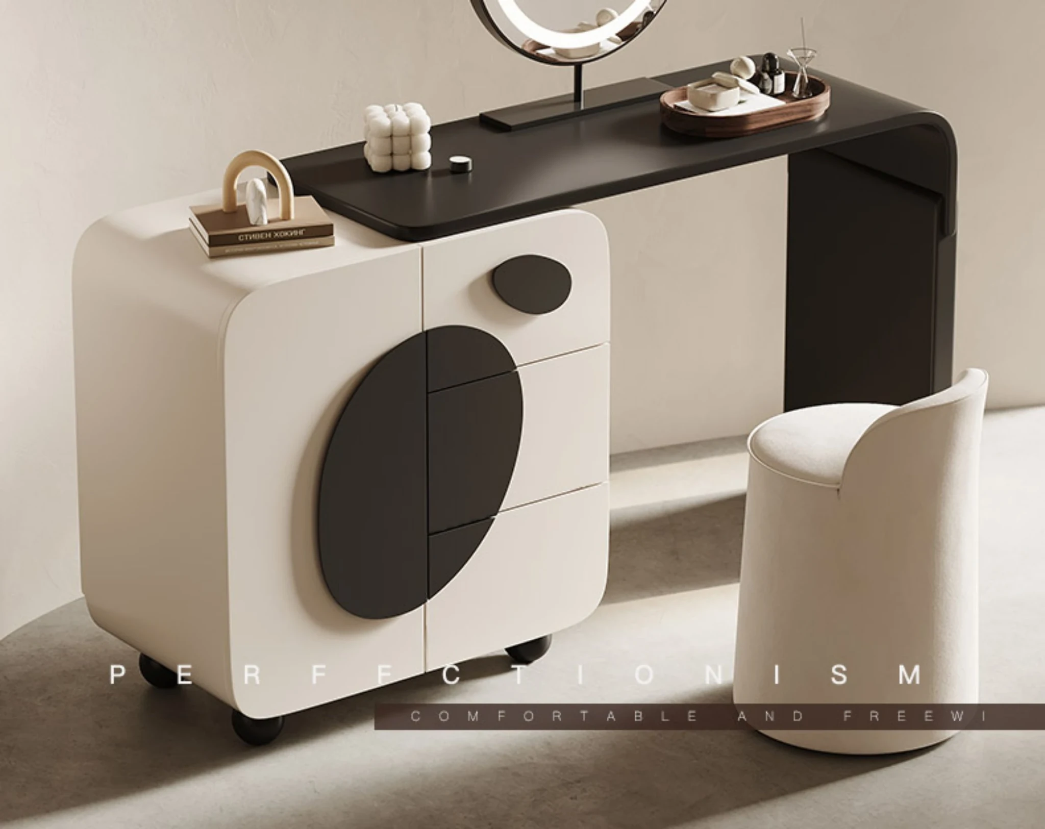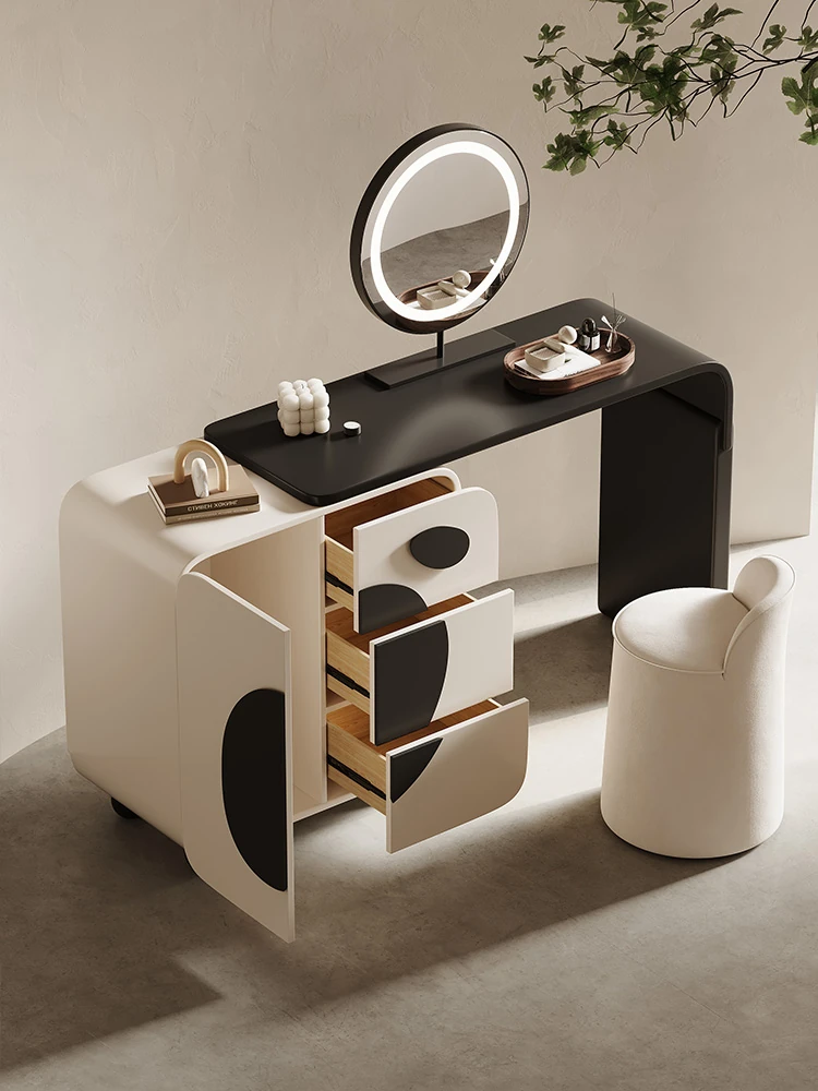 Melolat Italian Minimalist Vanity Storage Cabinet - Cream Style Modern Makeup Table for a Chic Bedroom Experience