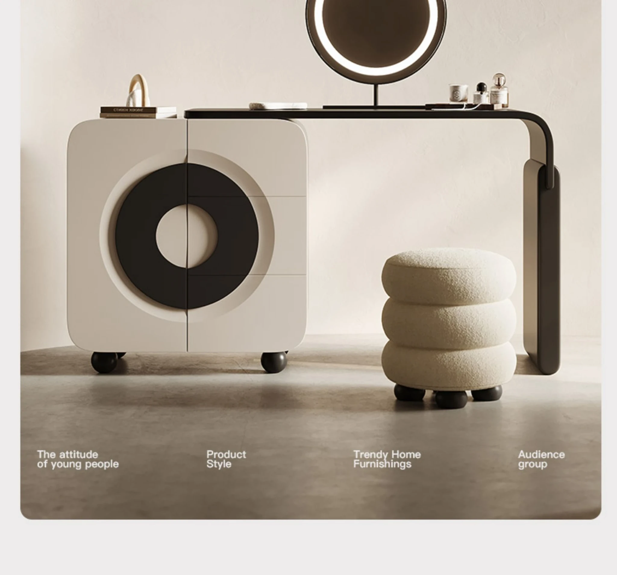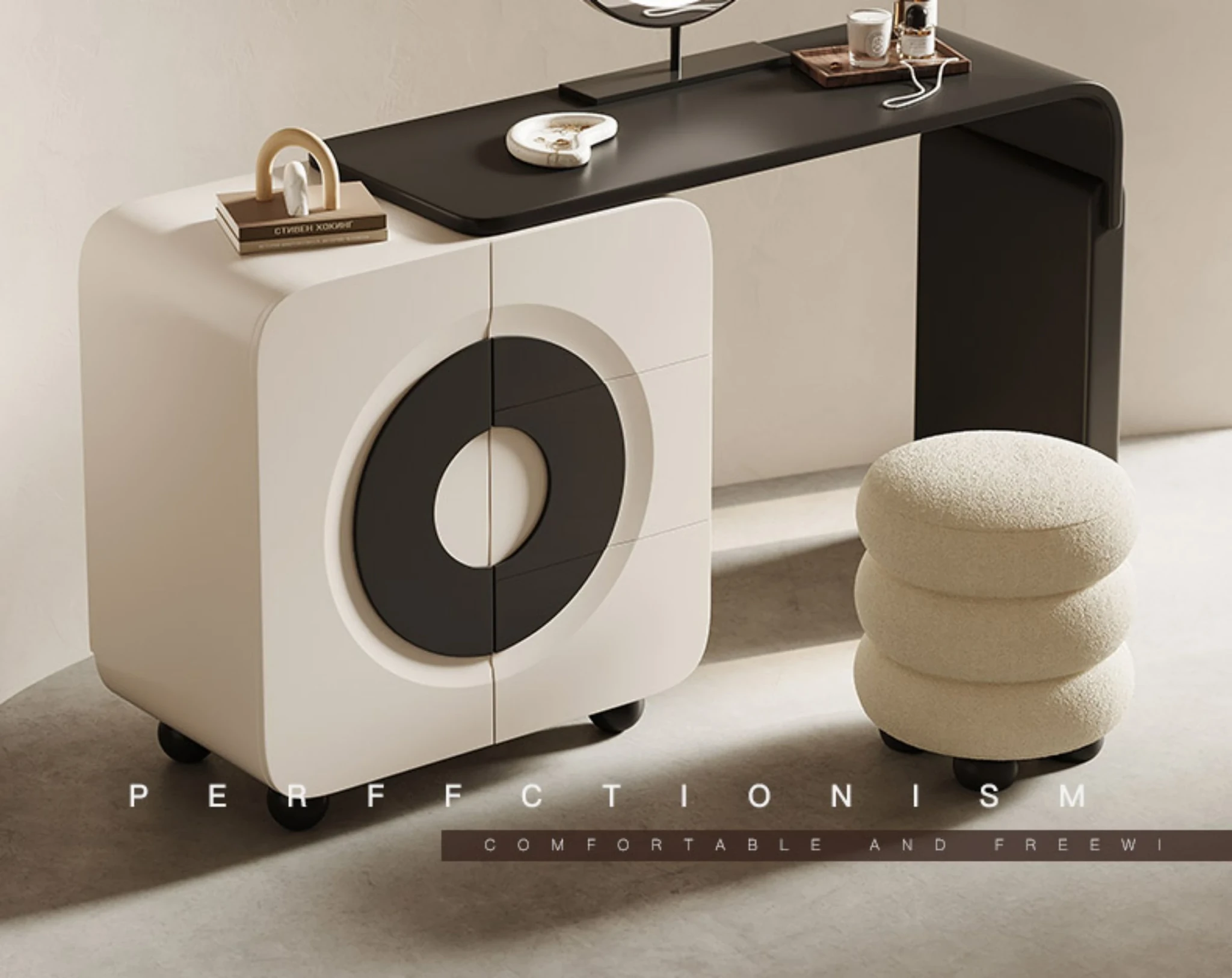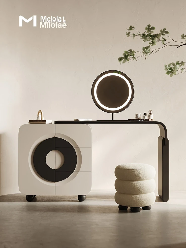 Melolat Italian Minimalist Vanity Storage Cabinet - Creamy Aesthetic Modern Makeup Table for a Chic Bedroom