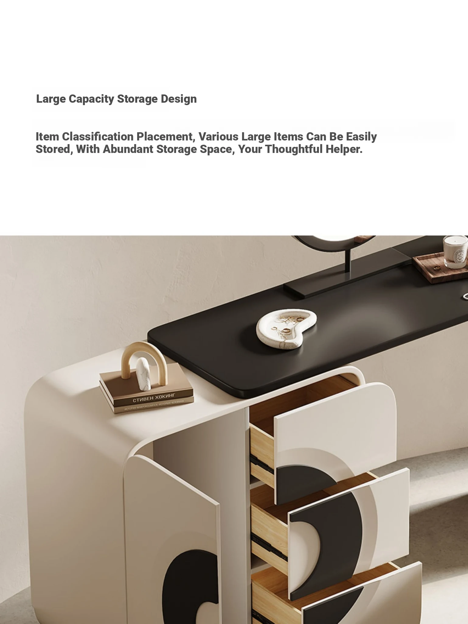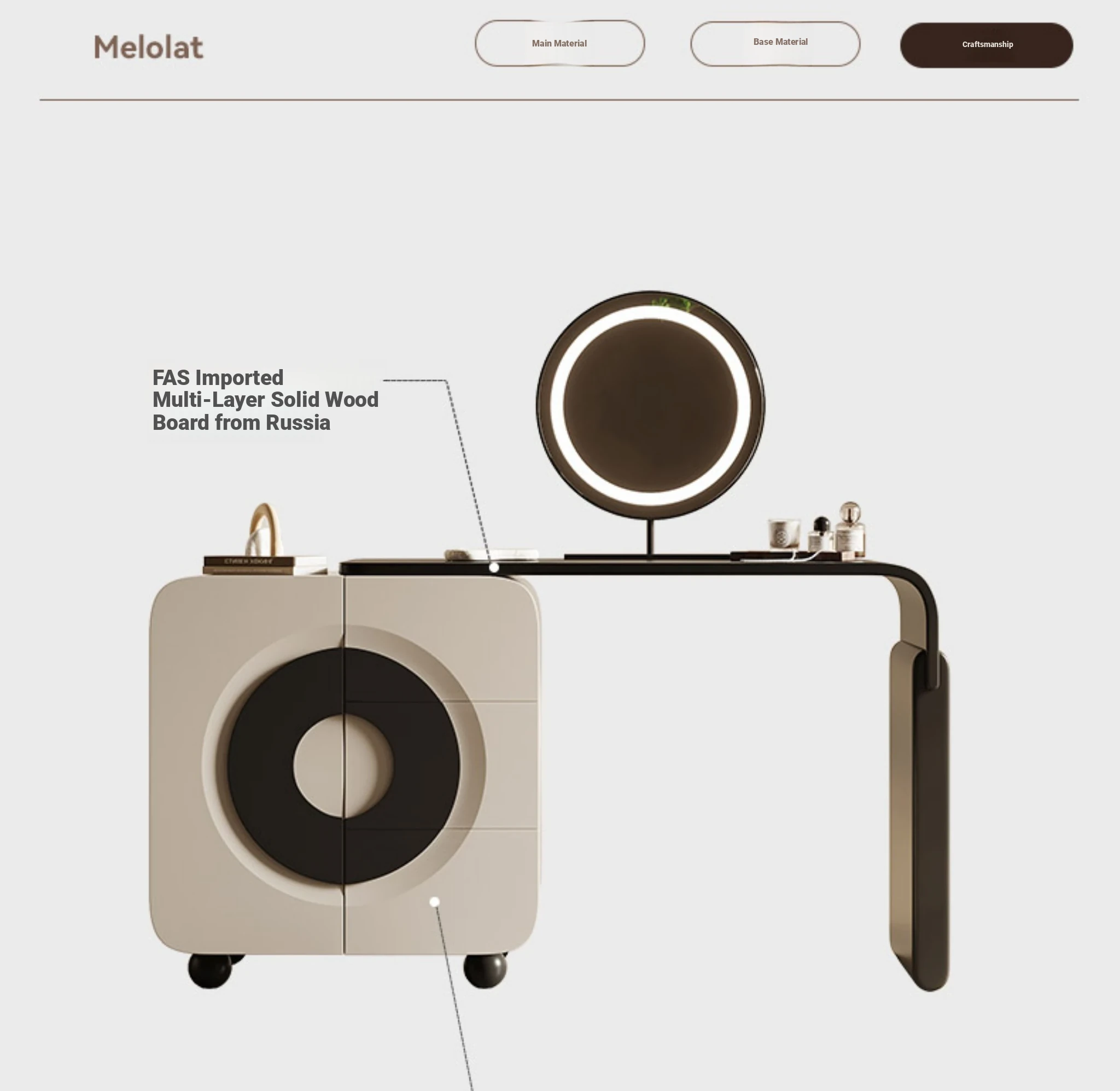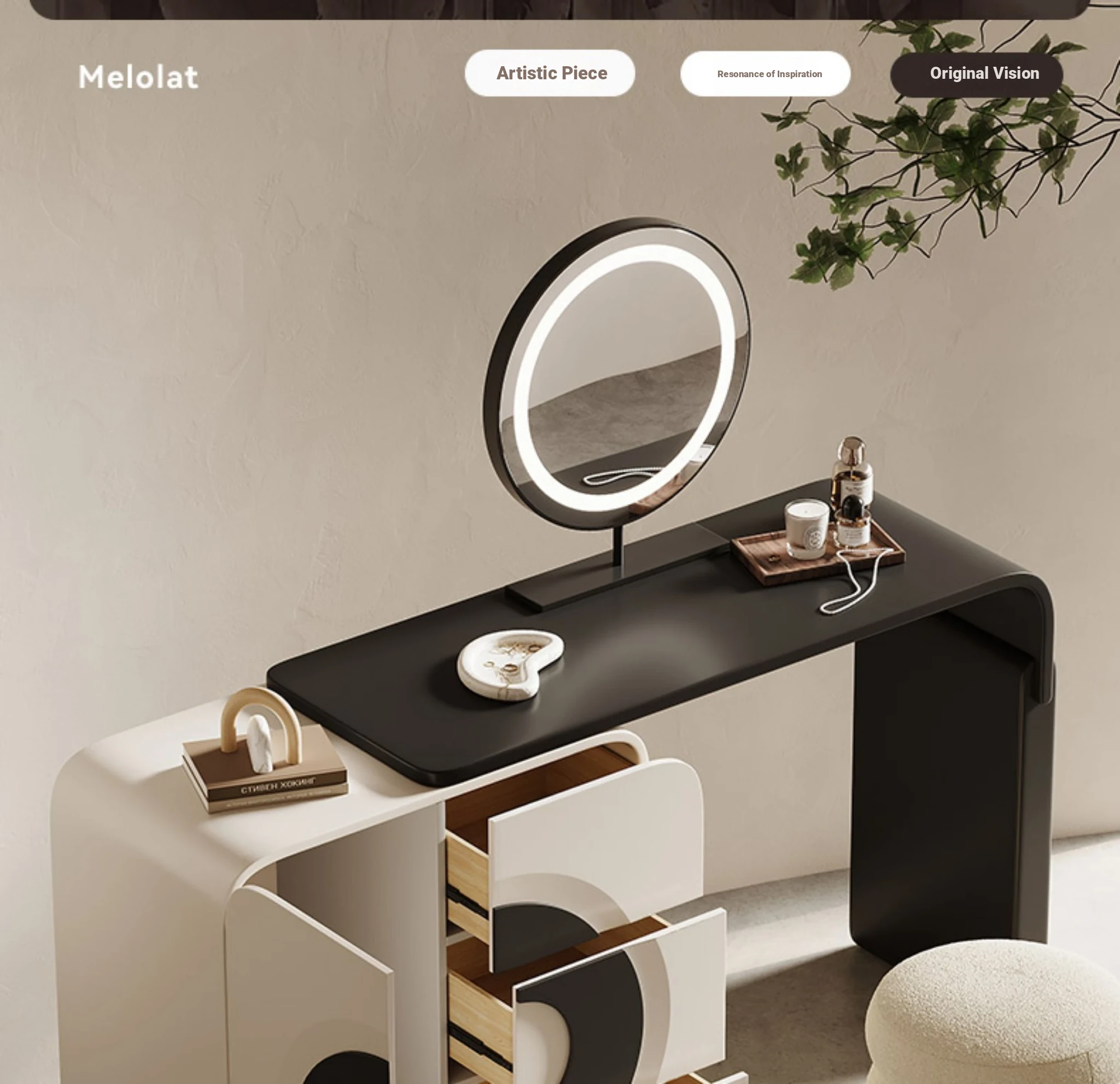 Melolat Italian Minimalist Vanity Storage Cabinet - Creamy Aesthetic Modern Makeup Table for a Chic Bedroom