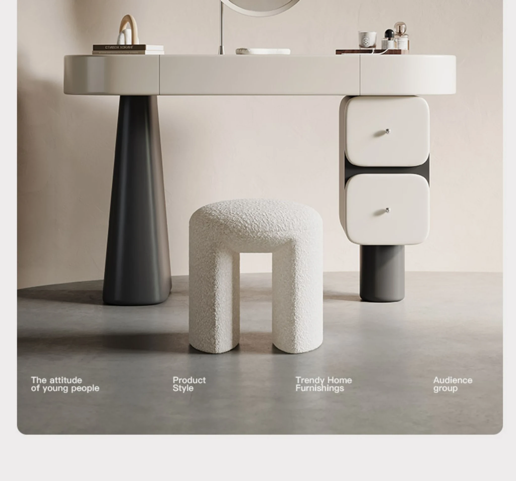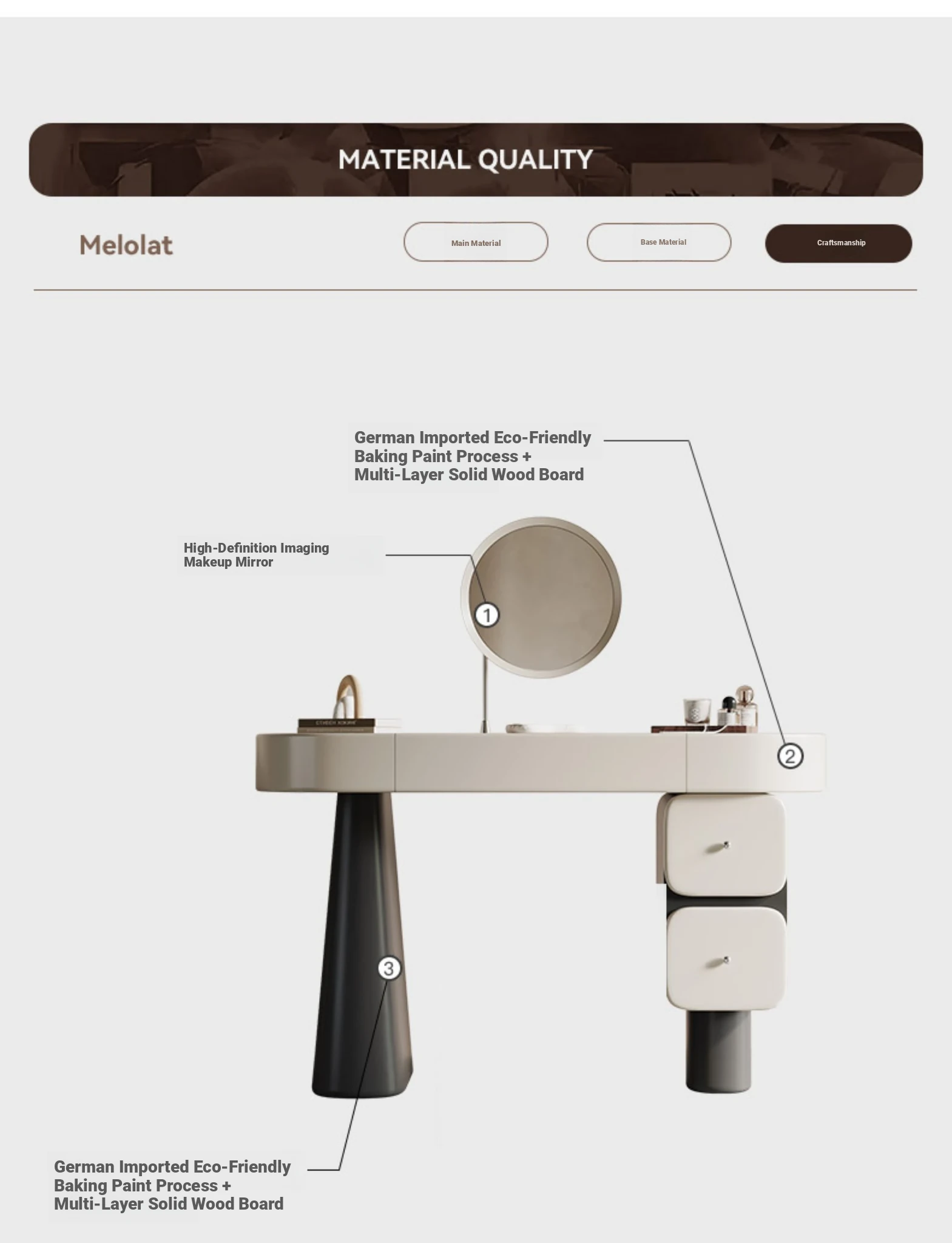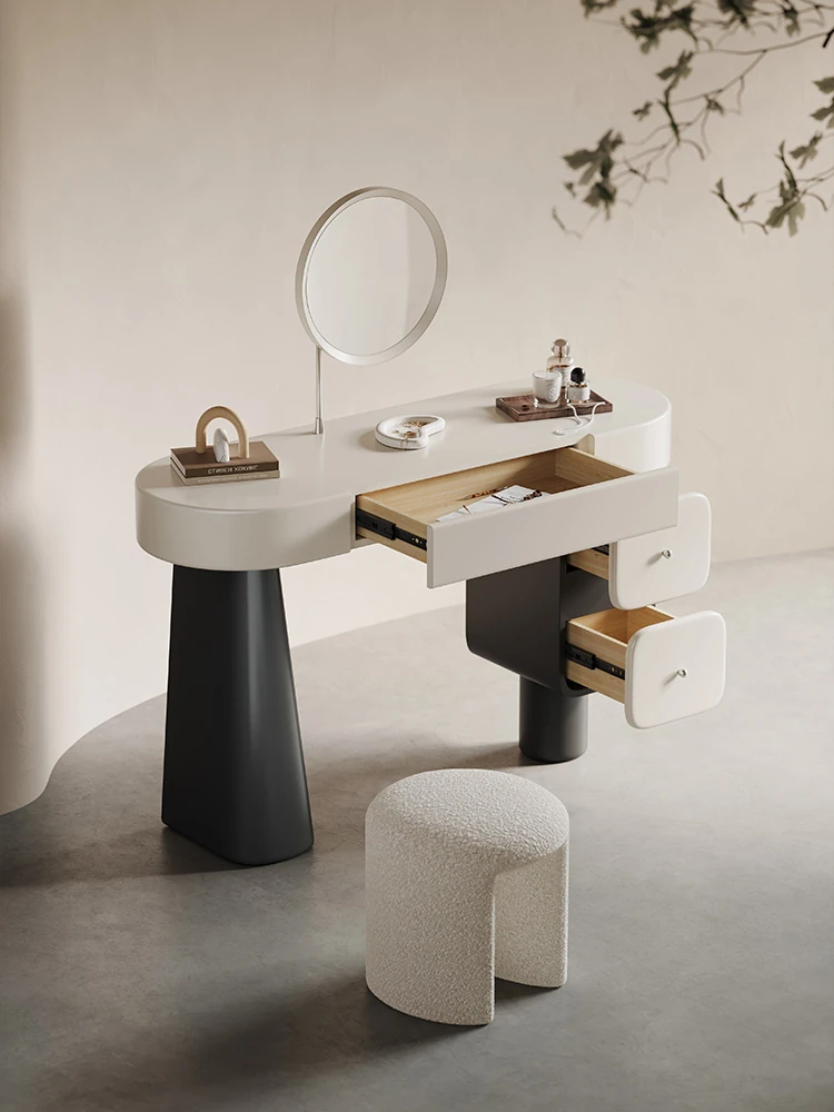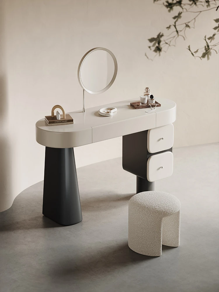 Melolat Italian Patent Cream-Style Vanity Dresser with Integrated Wardrobe - Elegant Bedroom Storage Cabinet with Makeup Mirror