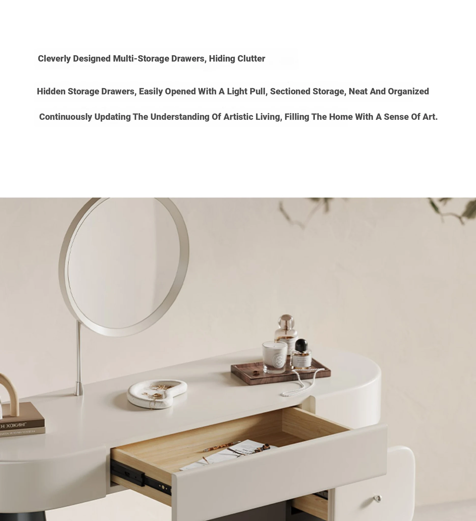 Upgraded Solid Wood-Creative Dressing Table + Makeup Mirror [Sabell Original Patented Design]