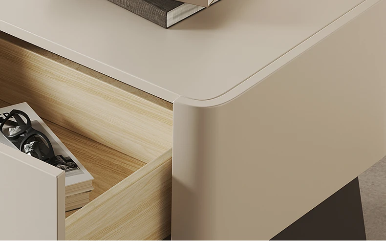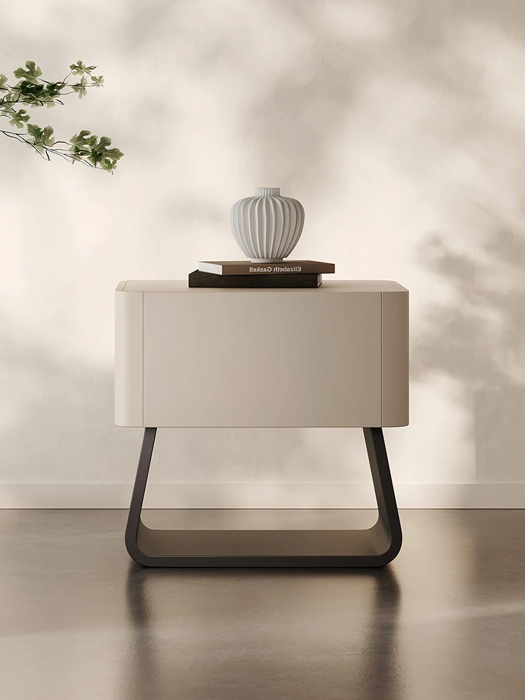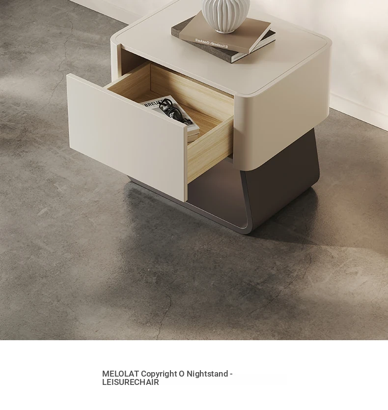Melolat Italian Solid Wood Creative Nightstand - Cream Minimalist Design, Modern Bedroom Multi-Functional Storage Cabinet