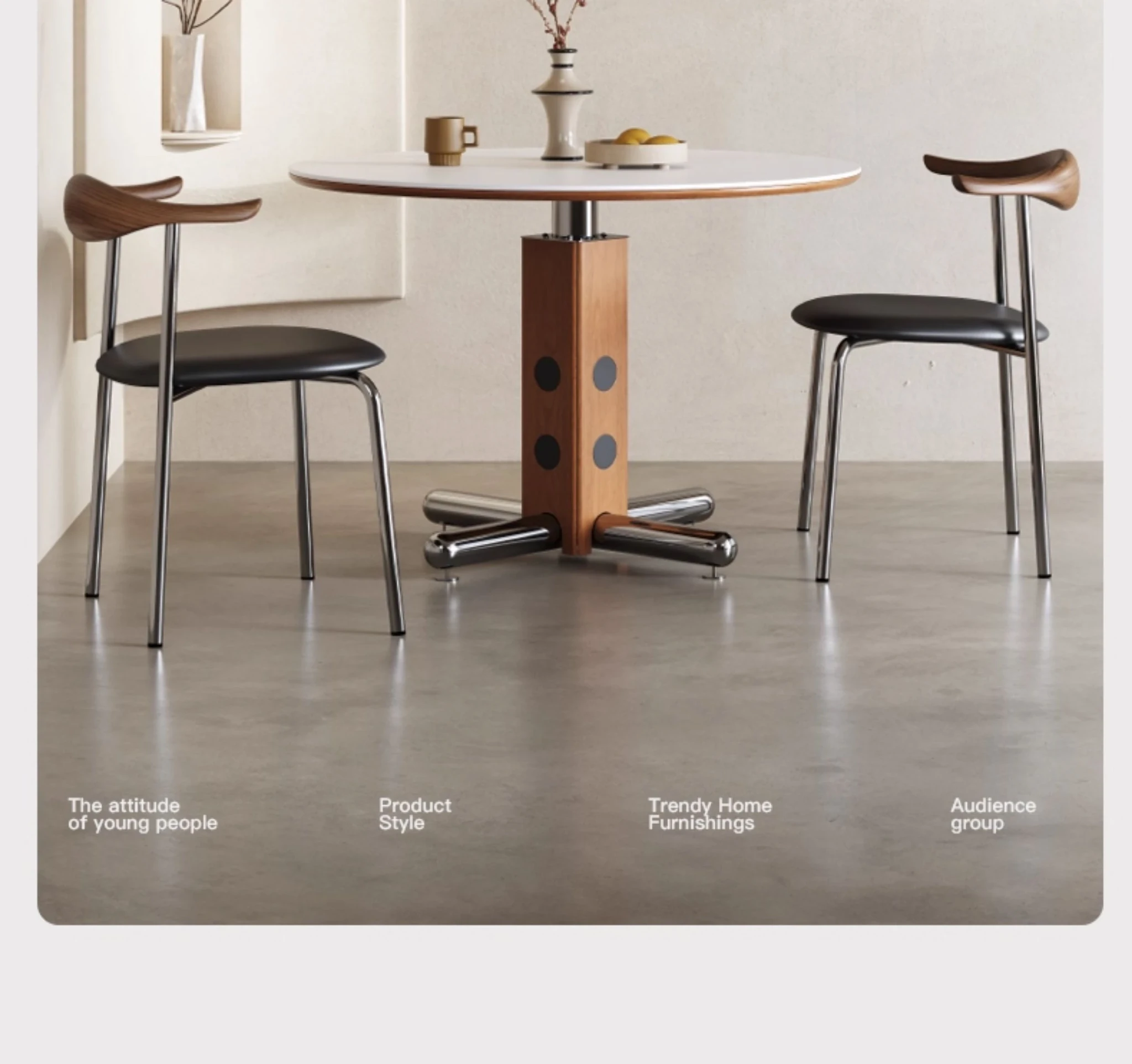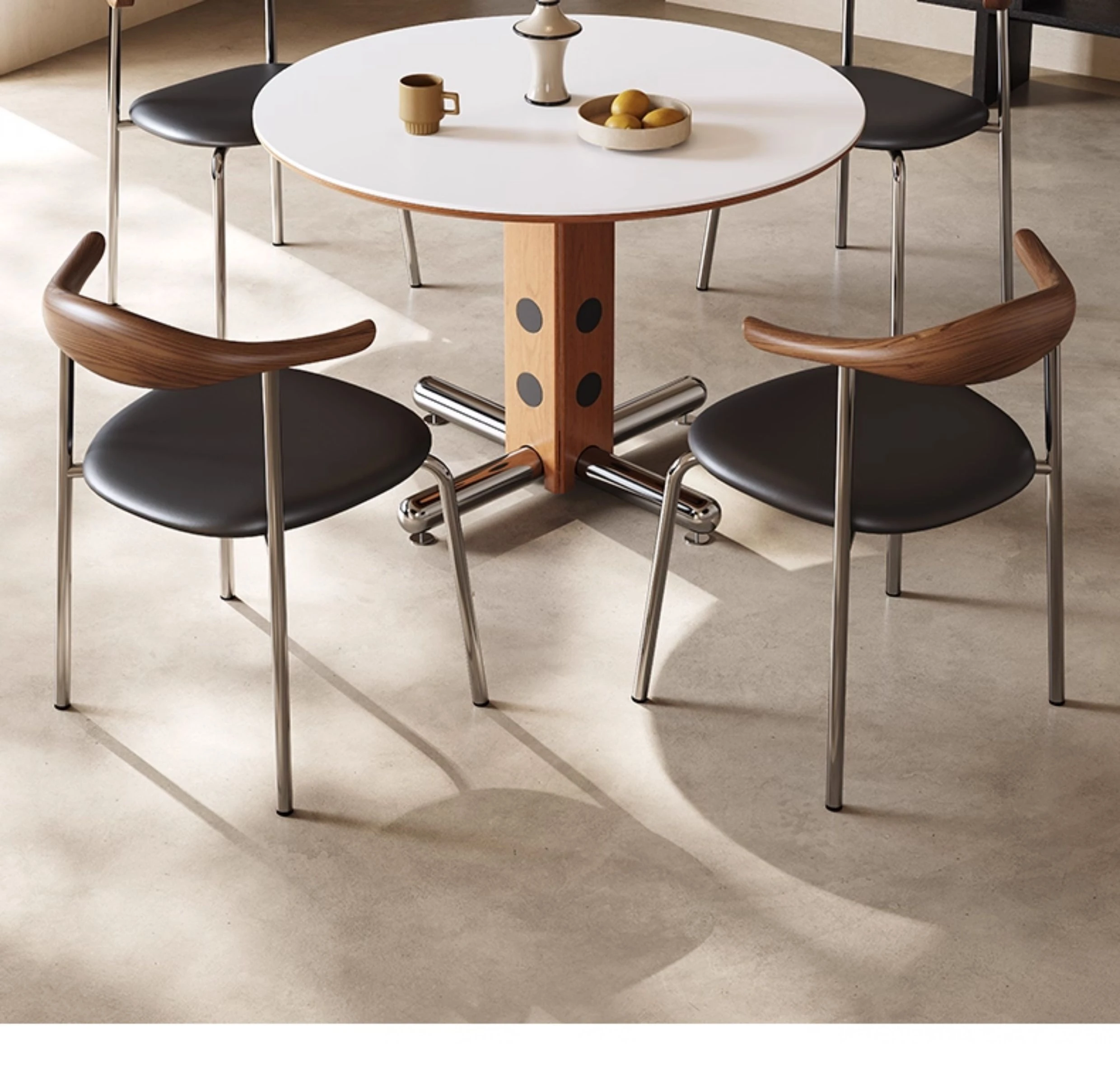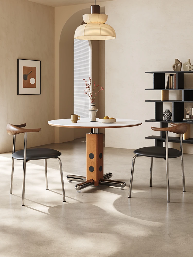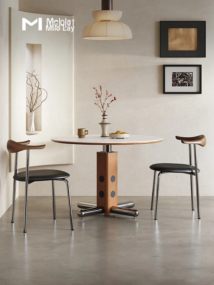 Melolat Italian Vintage Round Dining Table - Retro Stainless Steel Scandinavian Bauhaus Design with Solid Wood Top for Stylish Conversations