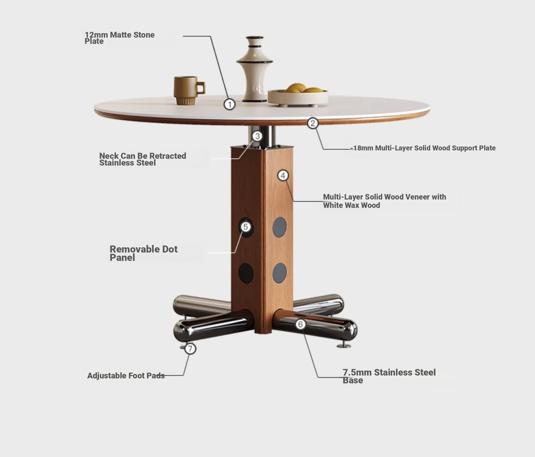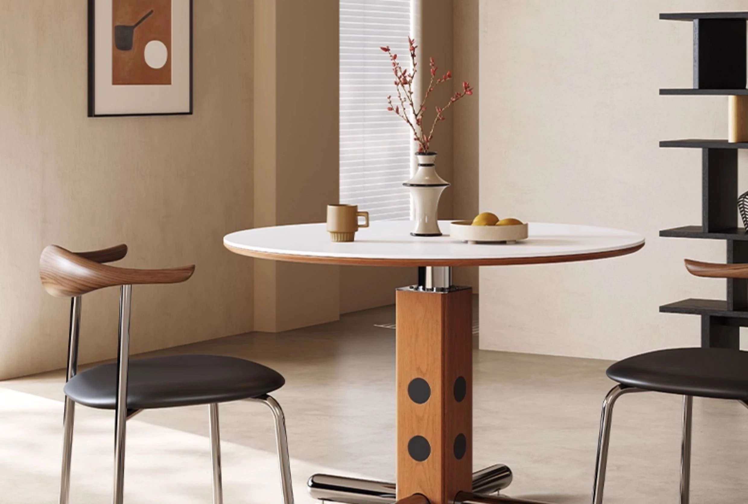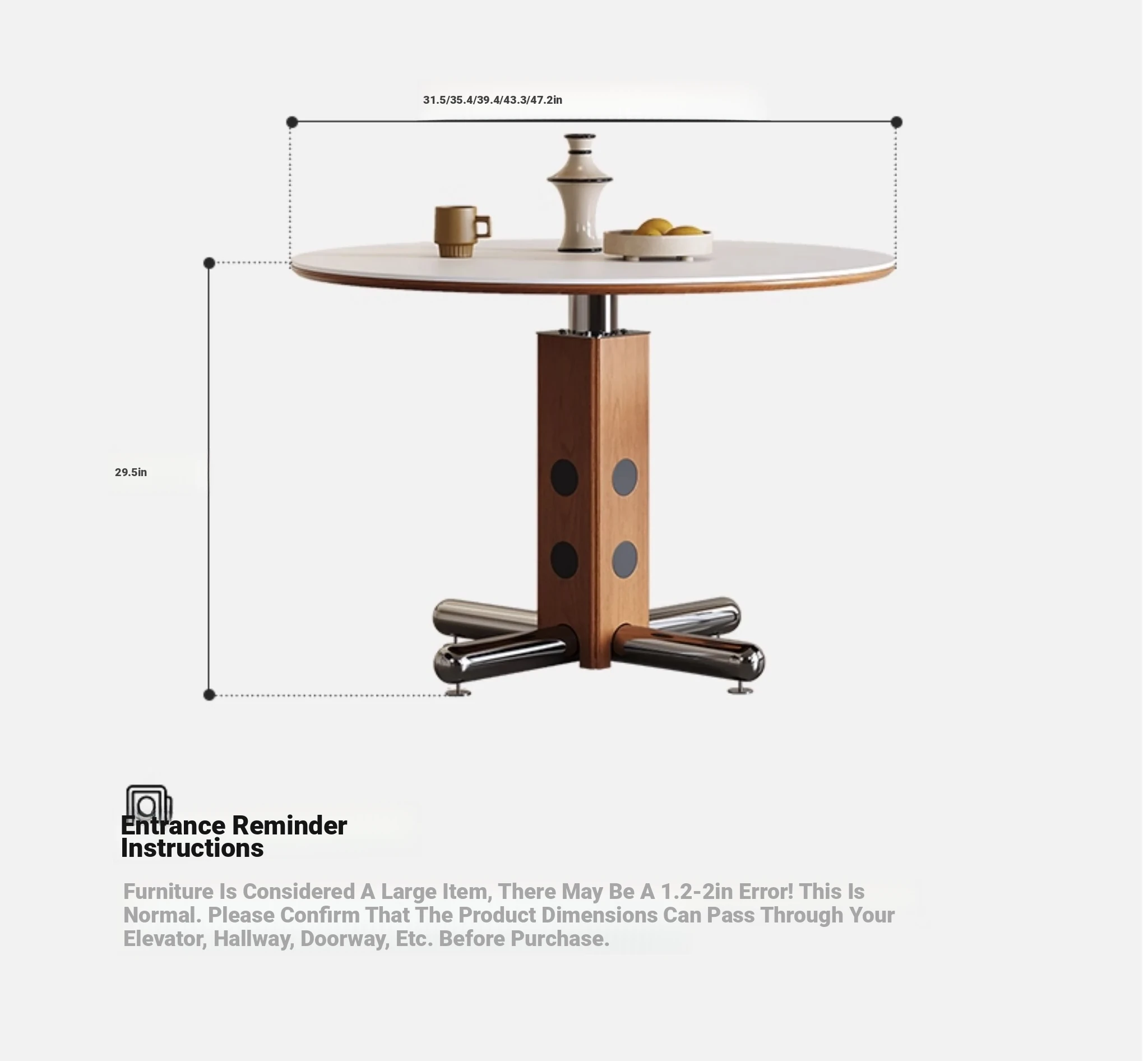 Melolat Italian Vintage Round Dining Table - Retro Stainless Steel Scandinavian Bauhaus Design with Solid Wood Top for Stylish Conversations