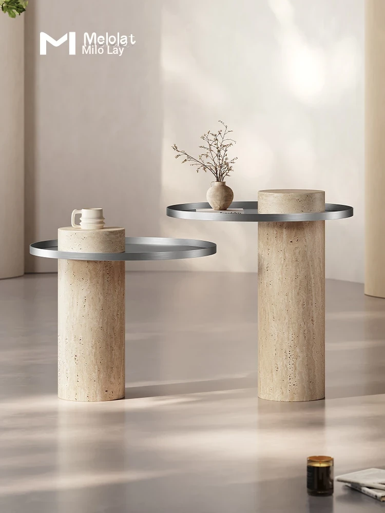 Daybr [Italian Natural Yellow Travertine Side Table] Heightened Version