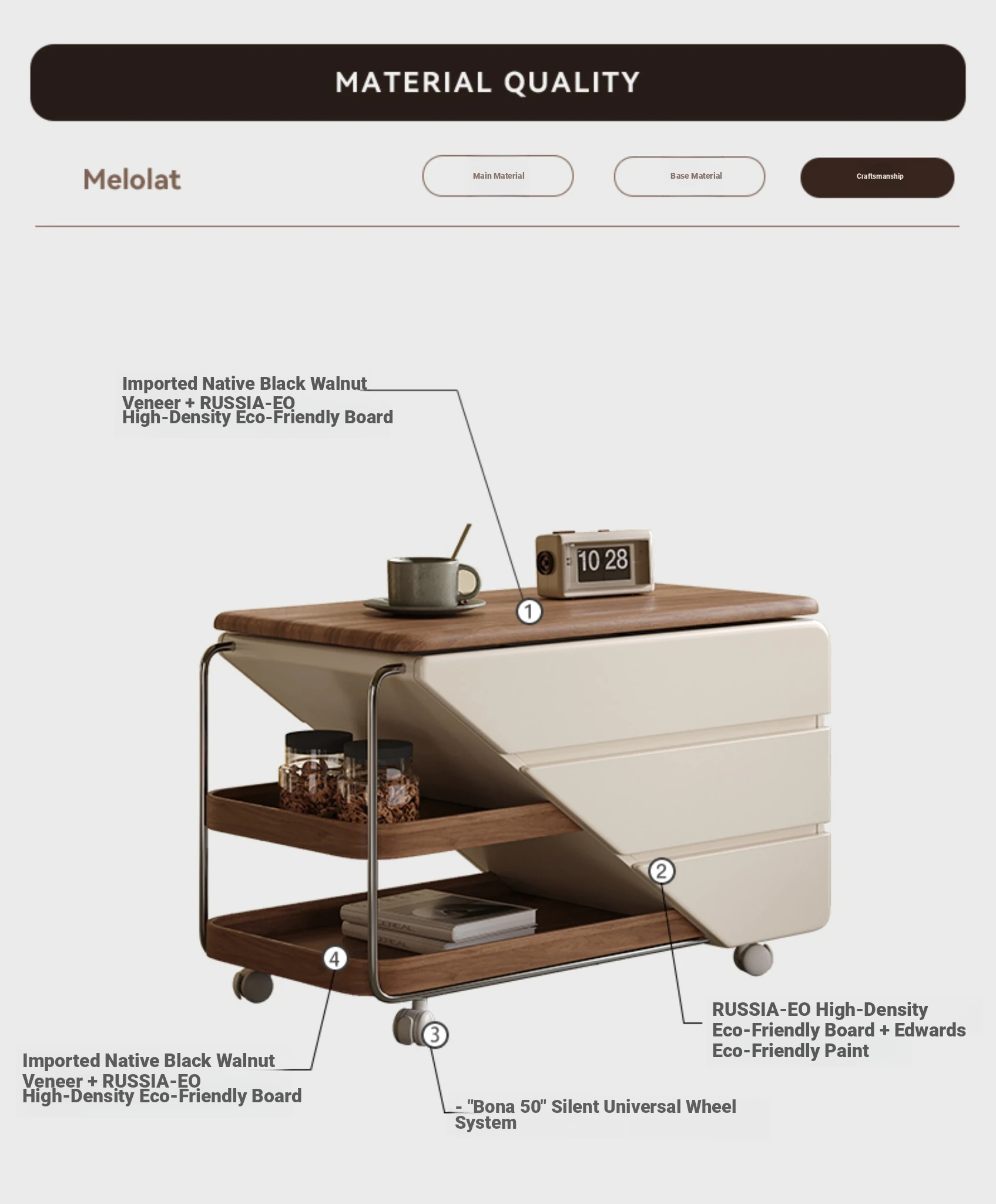 Melolat New Designer Scandinavian Small Trolley Side Table - Creative Patented Mobile Storage Rack for Dining Room