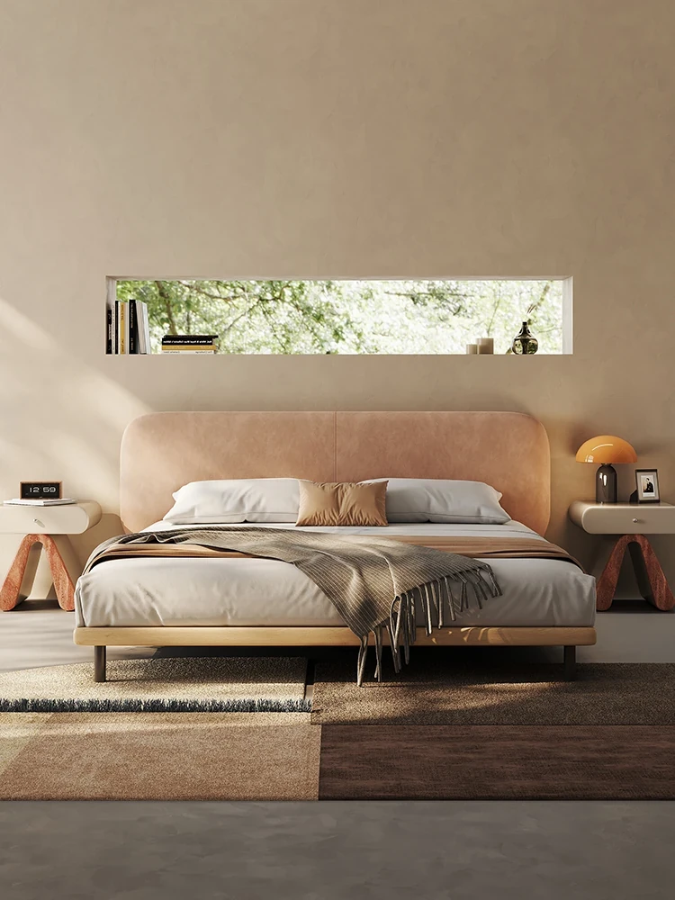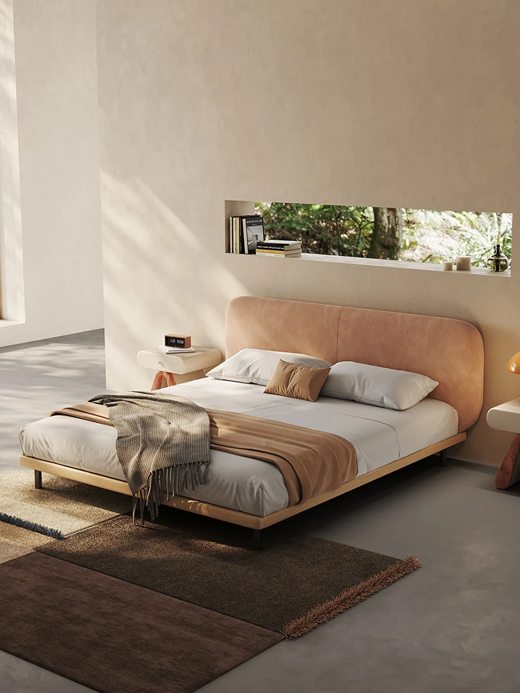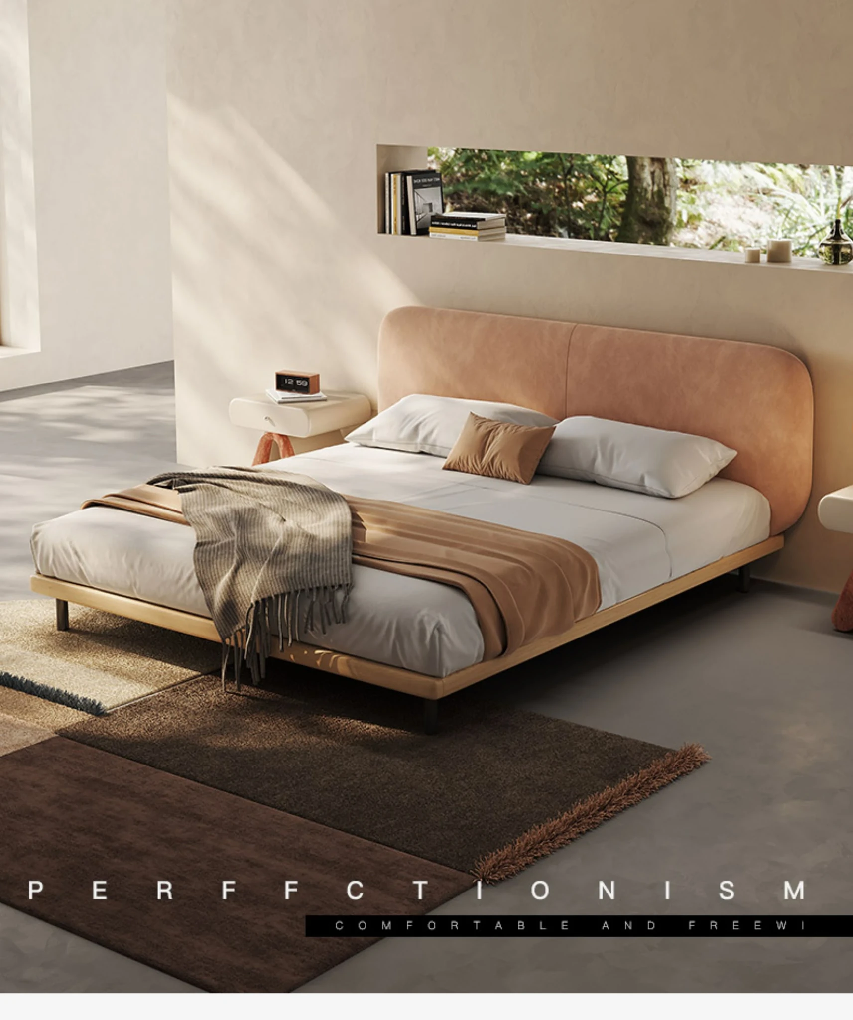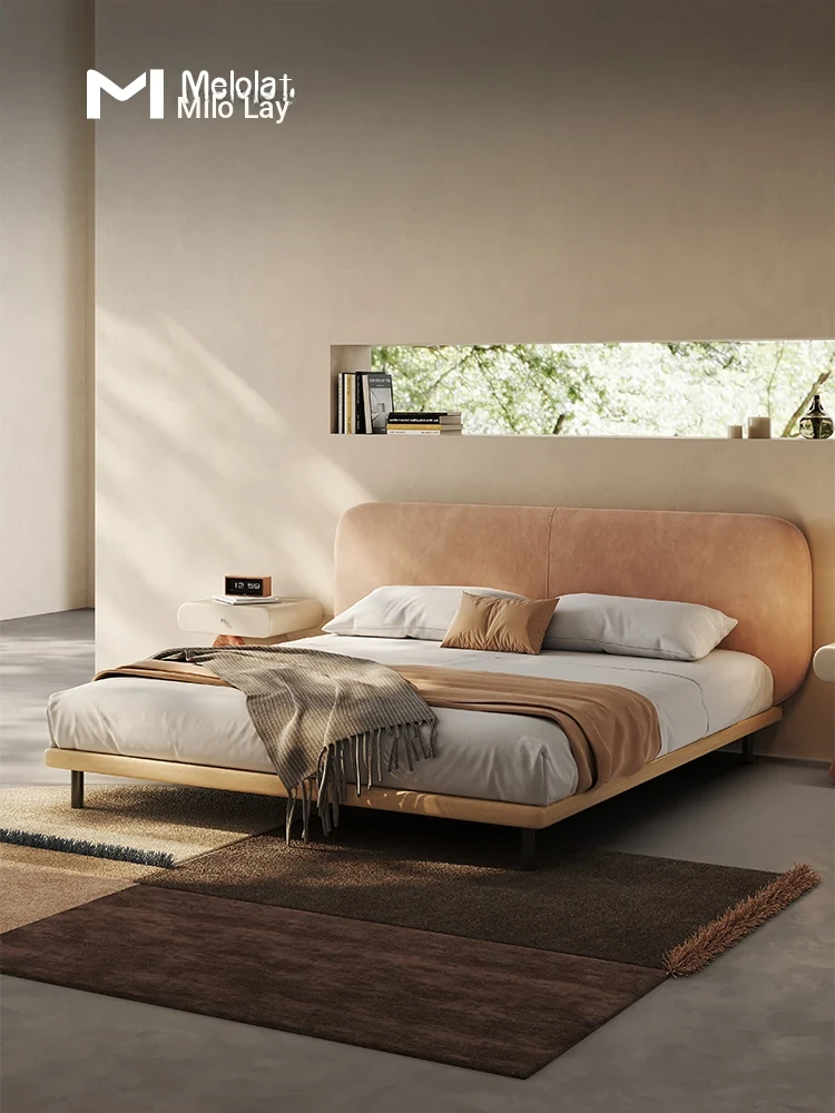 Melolat Nordic Minimalist Modern Light Luxury Soft Fabric Upholstered Bed - 1.8m Double Bed for Master Bedroom, Perfect for Couples and Trendsetters