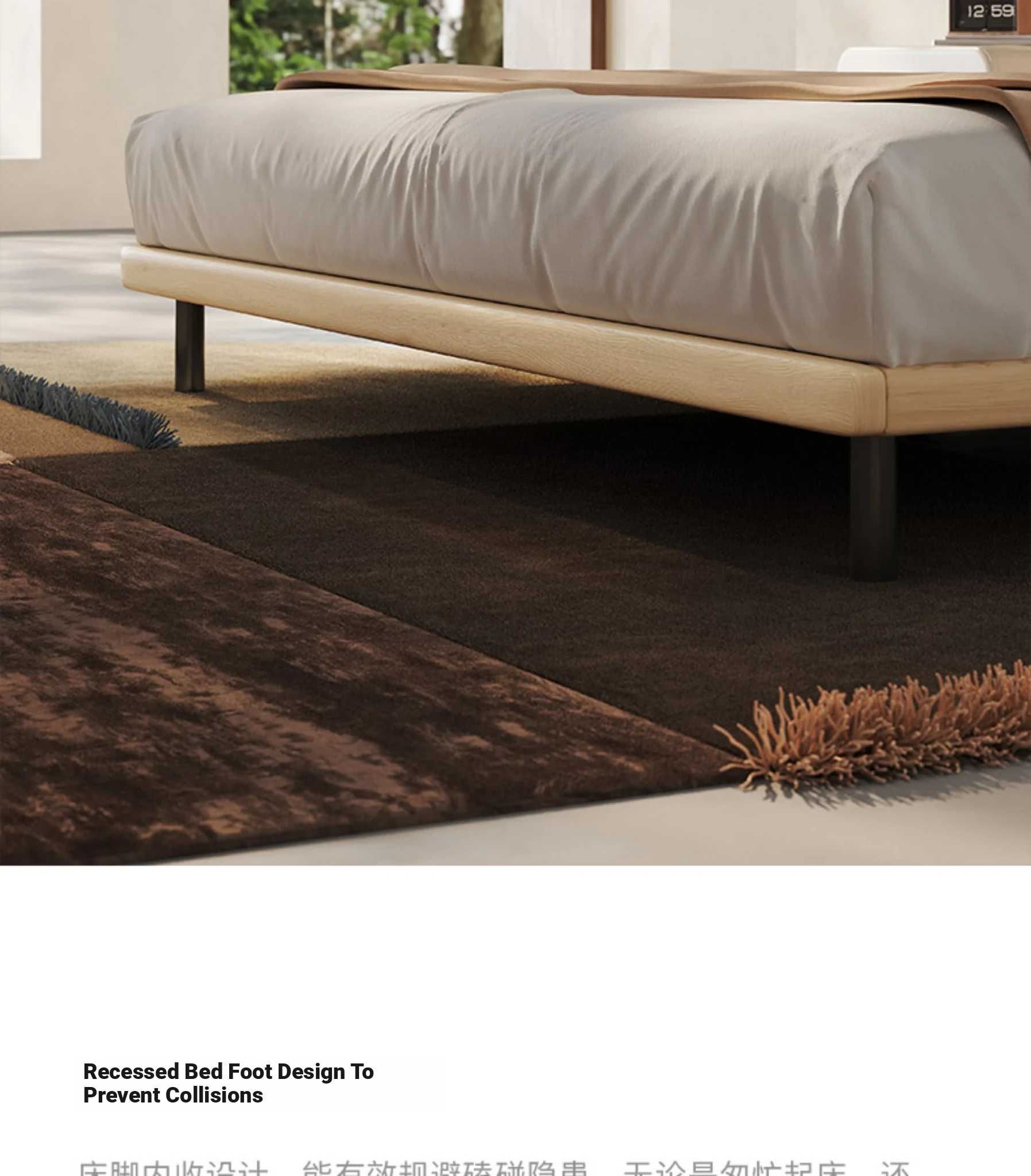 Mingyue Beige Single Bed 59.06in [France Import Frosted Fabric] Upgraded Solid Wood Bedside in Natural Wood Color