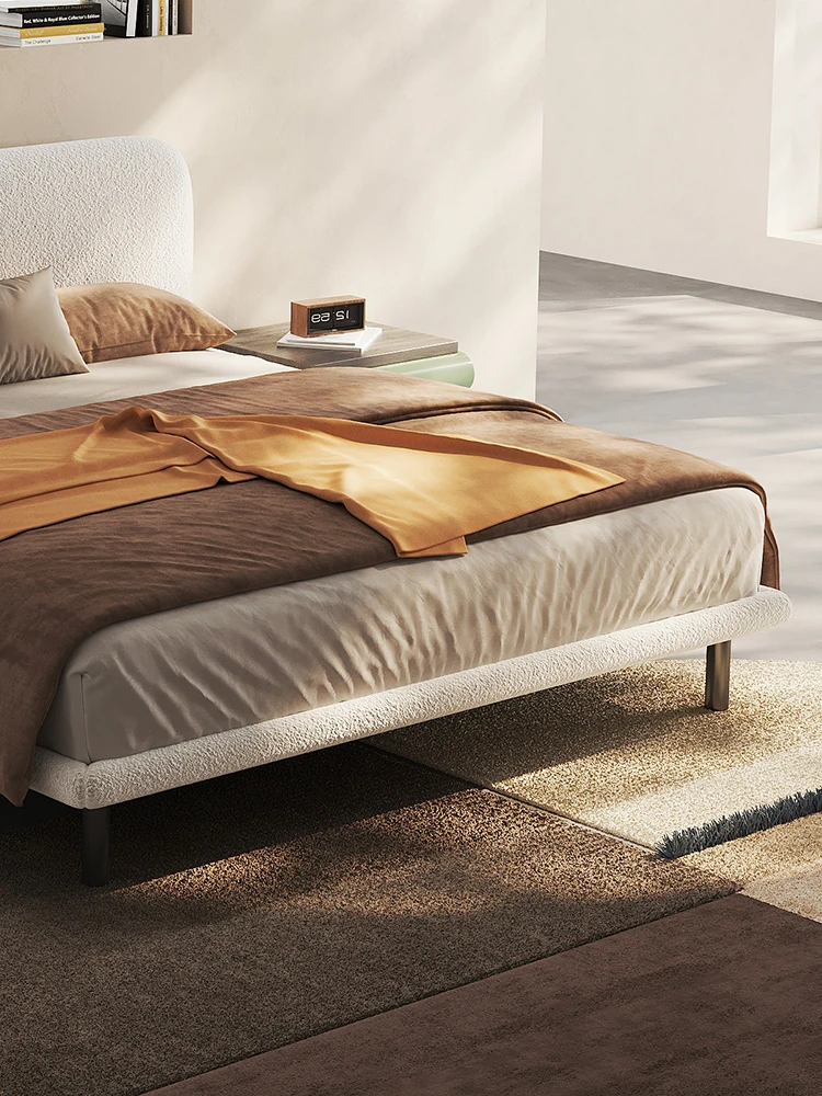 Melolat Nordic Minimalist Modern Luxury Influencer Double Bed for Master Bedroom - Soft-Padded 1.8m Milk Velvet Fabric Bed