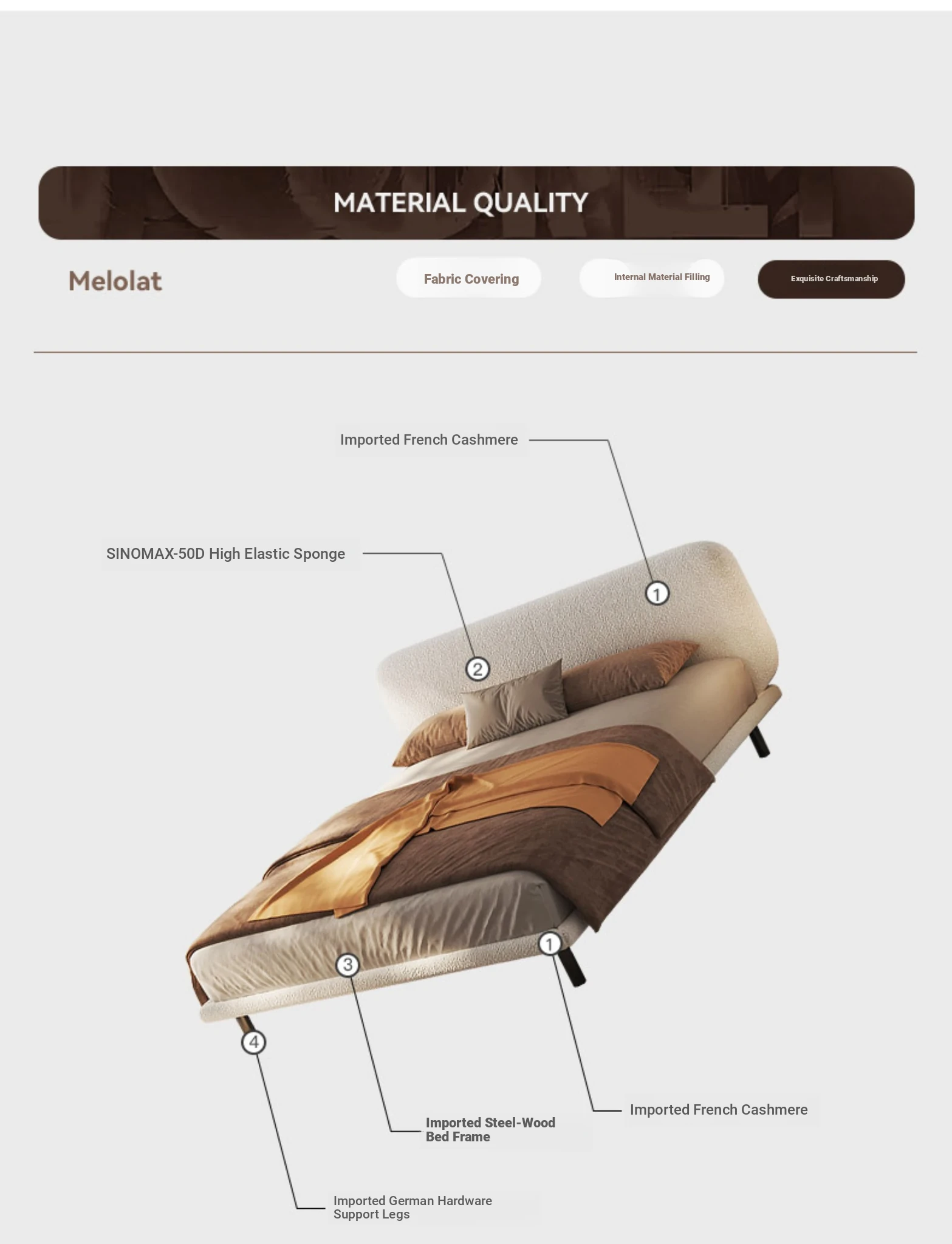 [Small Quantity in Stock] Upgraded Wood Color Bedside 59.06in [France Imported Cashmere]
