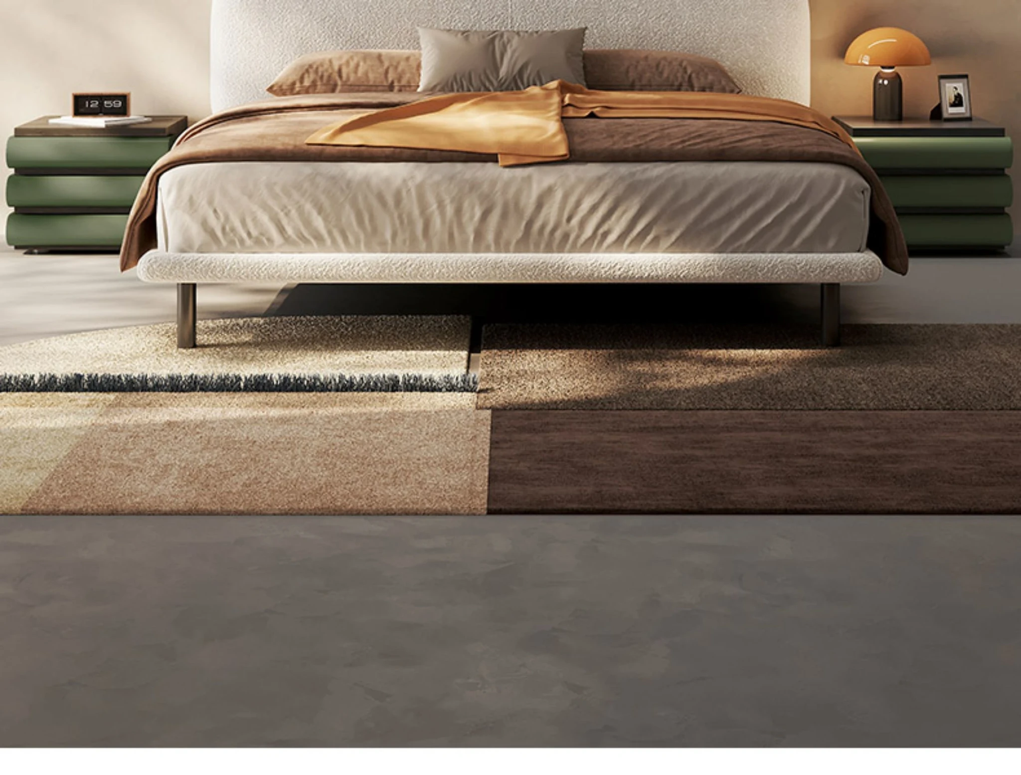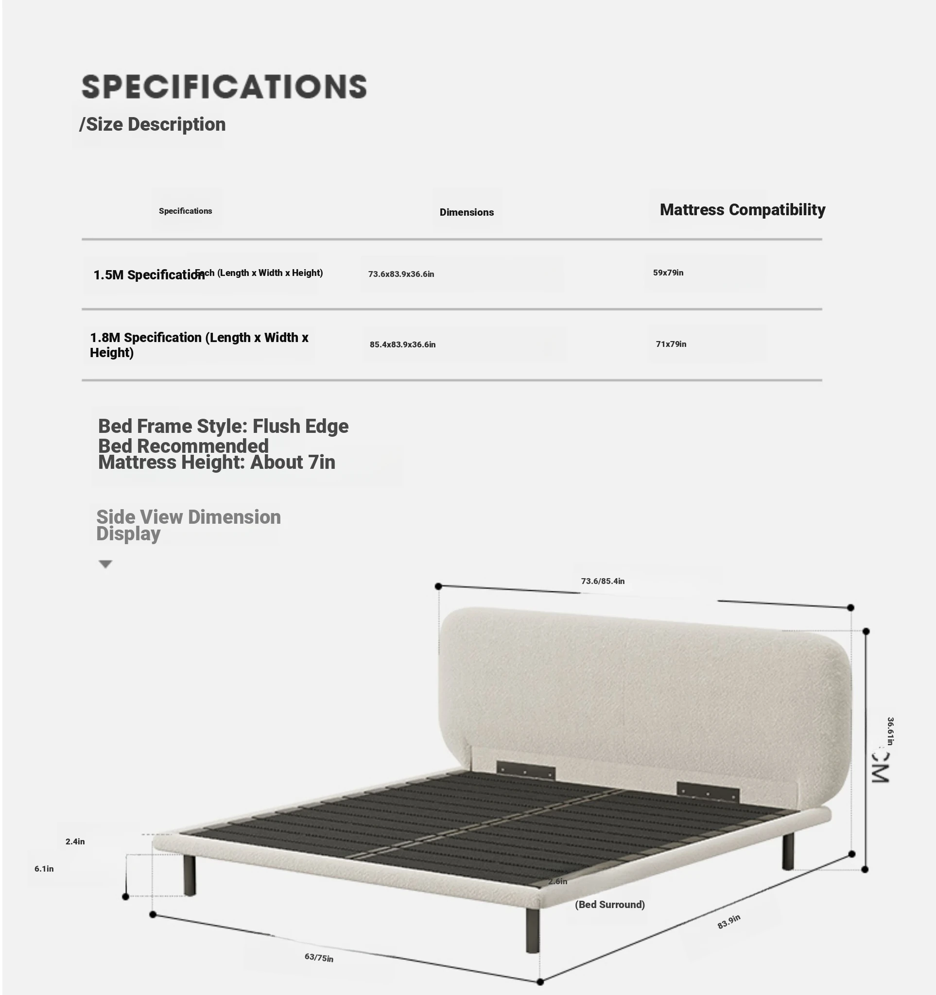 [Authentic] Fabric Edge Bed 70.87in *1+Daniel Bedside Table*2