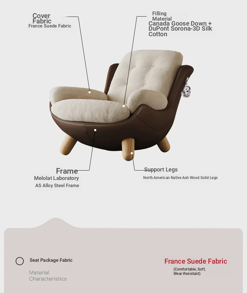 【Limited Stock】Cream Truffle 【France Imported Suede】Armchair